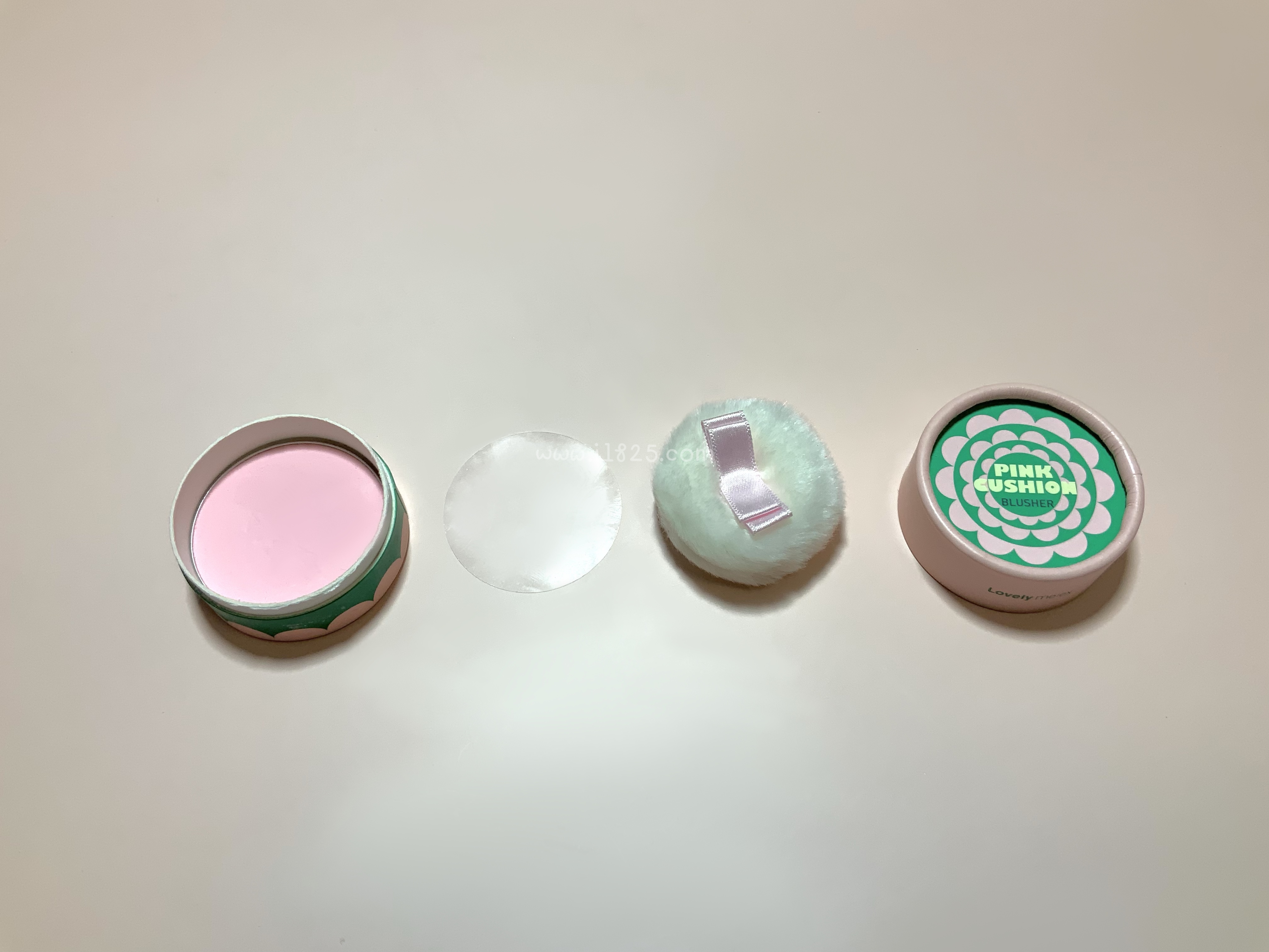 뽀얀 파우더 쁘띠 핑크 블러셔 또는 무펄의 페일 핑크 색상 블러셔로 유명한 핑크 쿠션입니다.