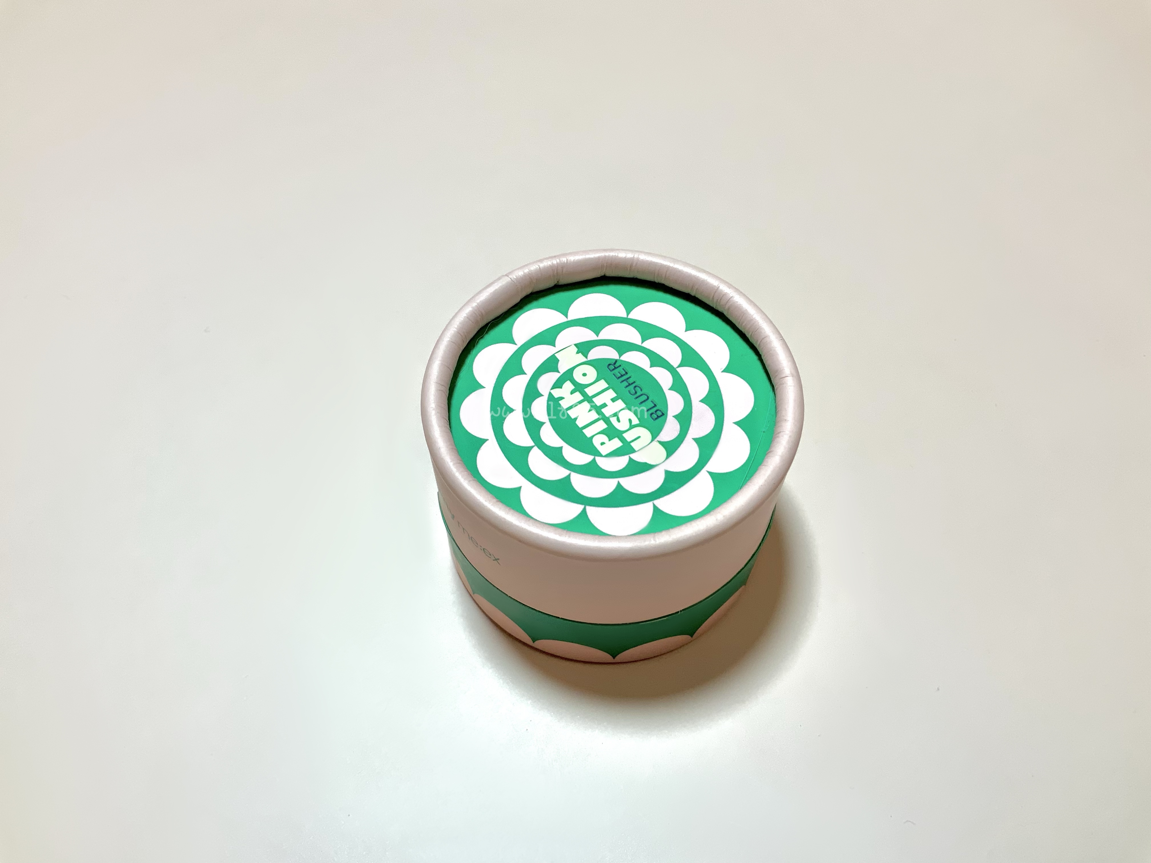 한국에서는 흔히 볼 수 없는 종이로 만든 케이스입니다. 동그랗고 납작한 한 손에 쏙 들어오는 두께는 조금 있는 지름이 작은 한 뼘도 안 되는 미니 사이즈 블러셔입니다.
