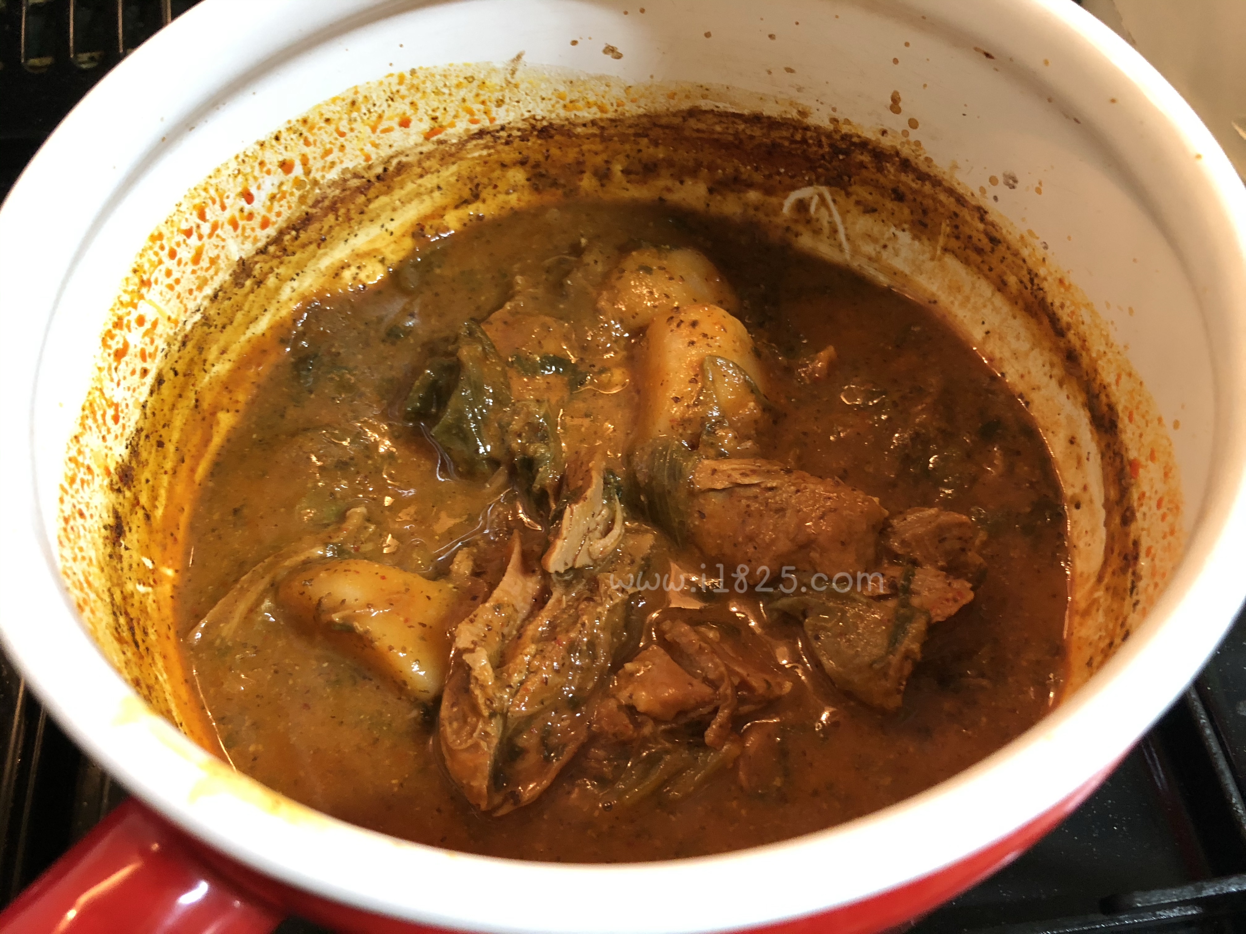 재료 : 돈 뒷사태 15.22 %, 감자 10. 87 %. 돈 잡뼈 4.41 %, 돈 등뼈 2.94 %, 돈골 진액 0.35 %(고형분 함량 13.2 %)