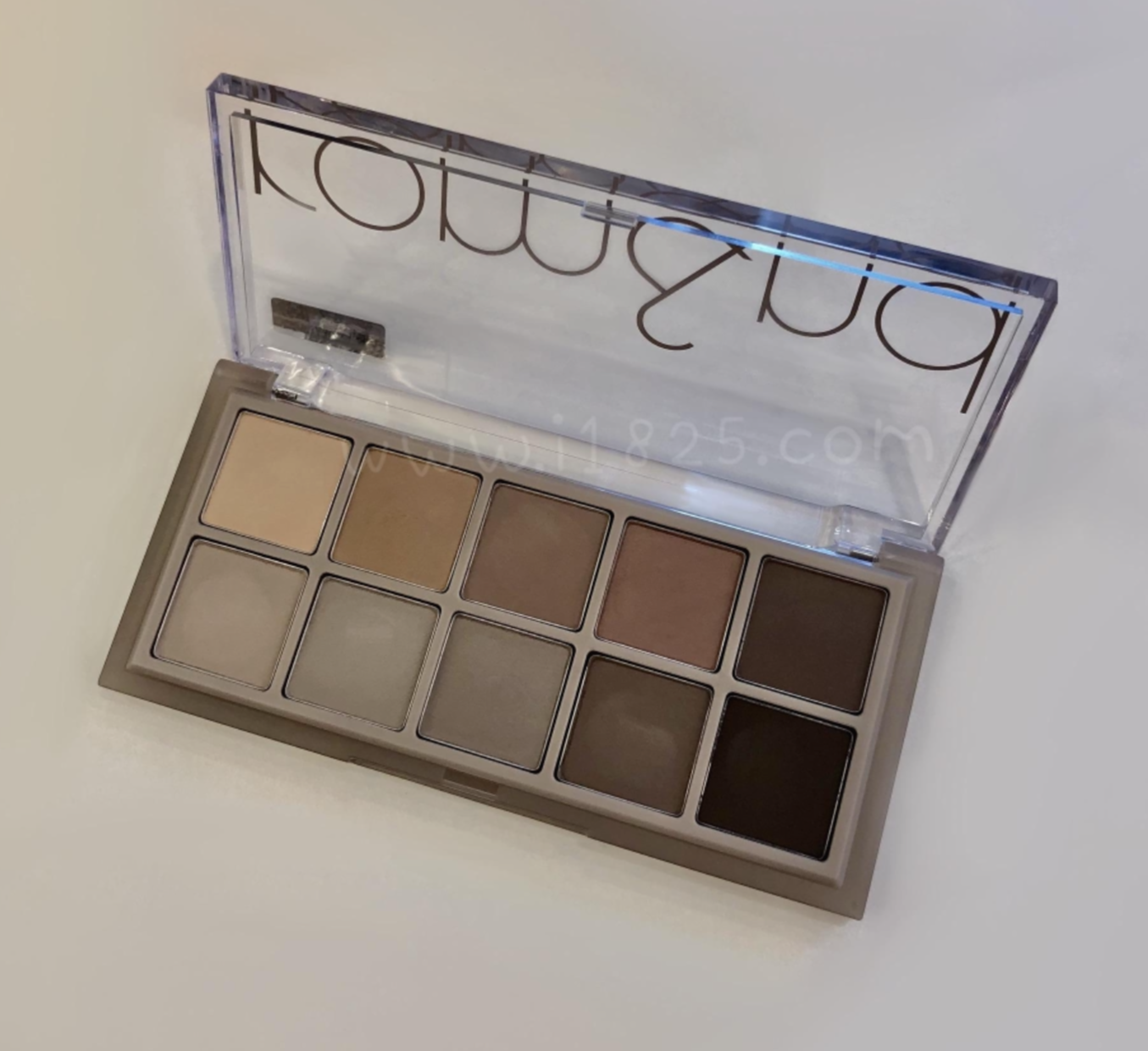 팔레트의 섀도우끼리 아주 촘촘한 명도의 차이만 있을 뿐 탁한 그레이에 다른 여러 색상을 다양하게 추가한 듯한 빼박 쿨톤 섀도 10가지 색상의 섀도우예요.