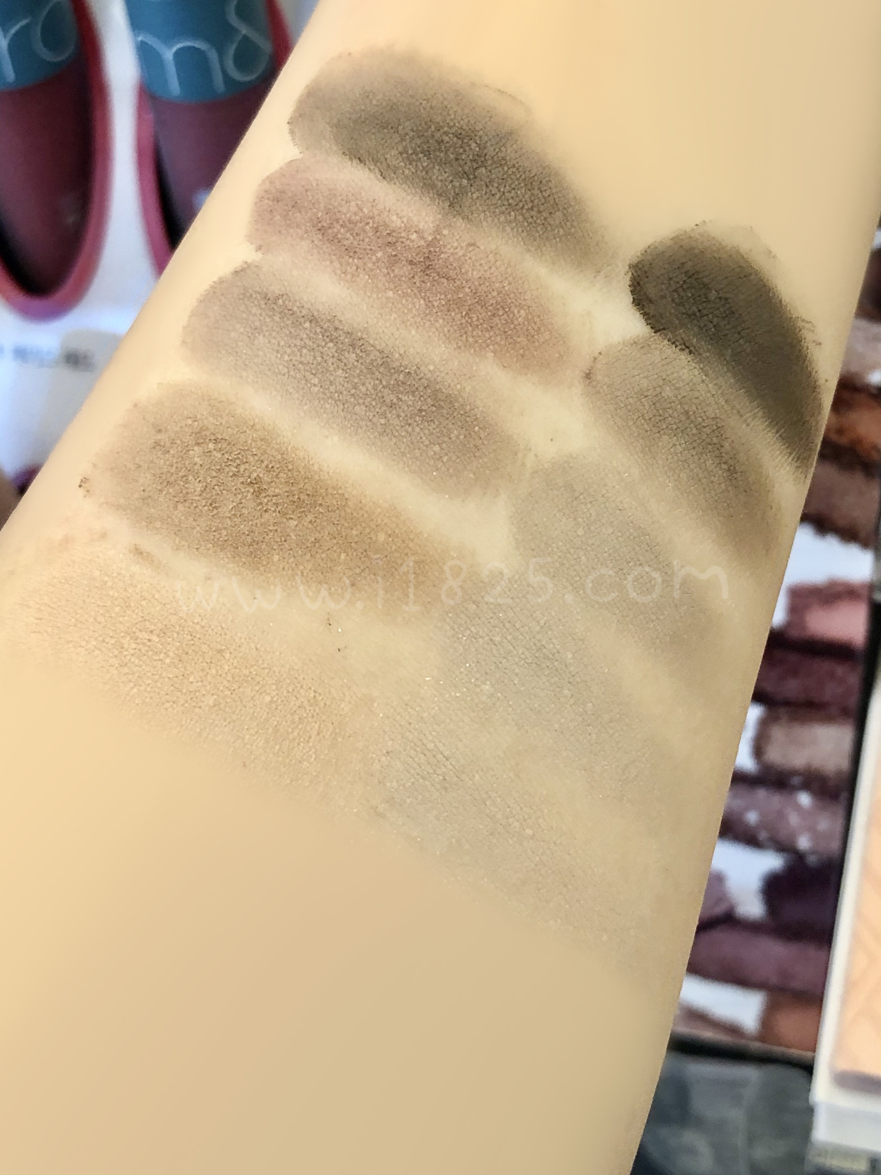 그냥 잿빛 그레이에서 윗줄은 한 가지 웜톤 컬러 빼고 네 가지 색상은 모두 쿨톤 섀도우로 첫째 줄 5번 섀도우 DUSTY LAND와 둘째 줄 5번 섀도우 SOFT BLACK은 거의 같은 느낌을 주는 컬러입니다.