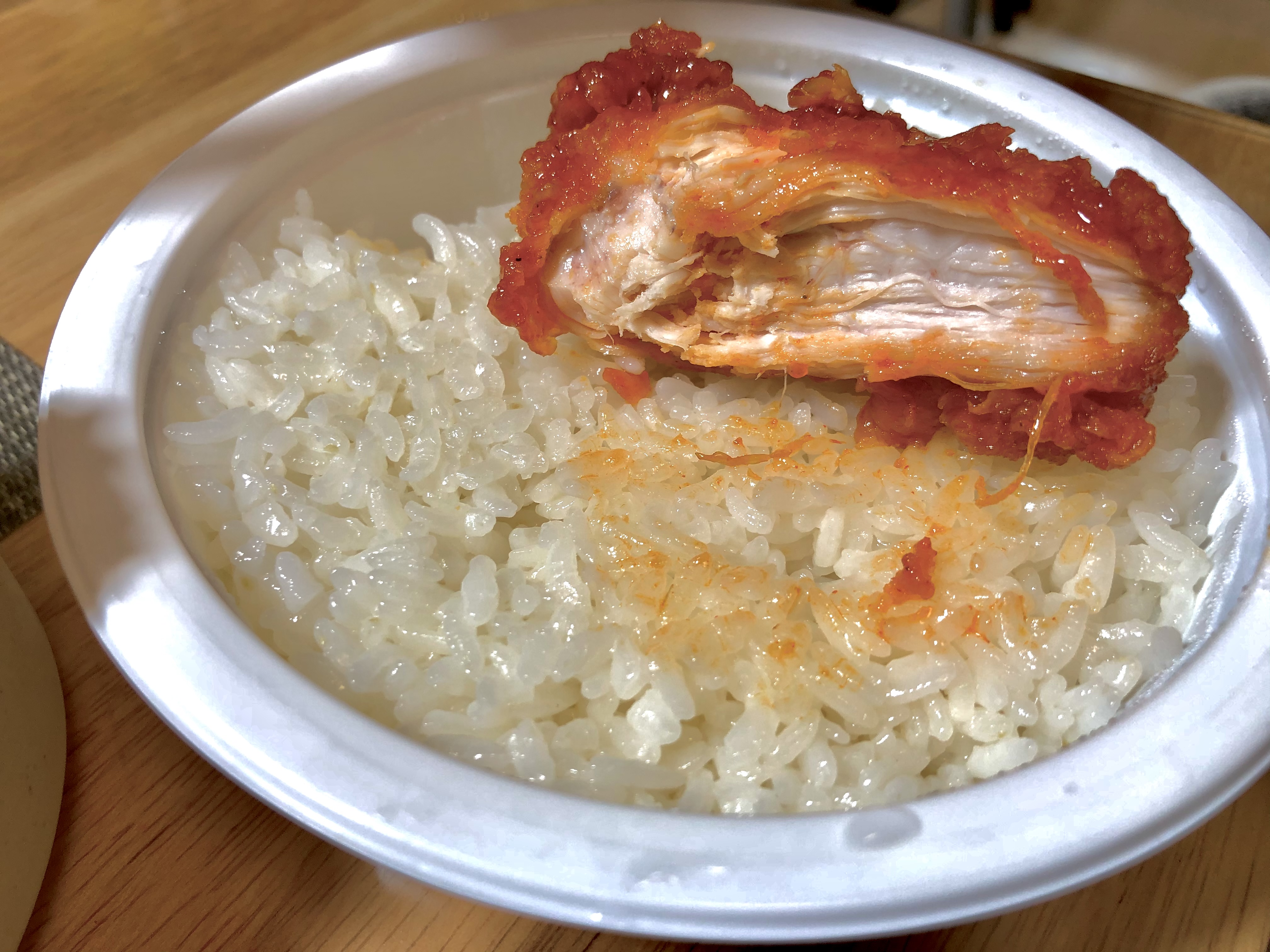 뜨거운 밥에 먹기에는 조금 매울 수 있으니 치밥을 함께하고 싶다면 꼭 미리 밥을 데우고 준비한 후 충분히 밥이 식은 다음에 치킨과 함께 치밥을 즐겨주세요♥