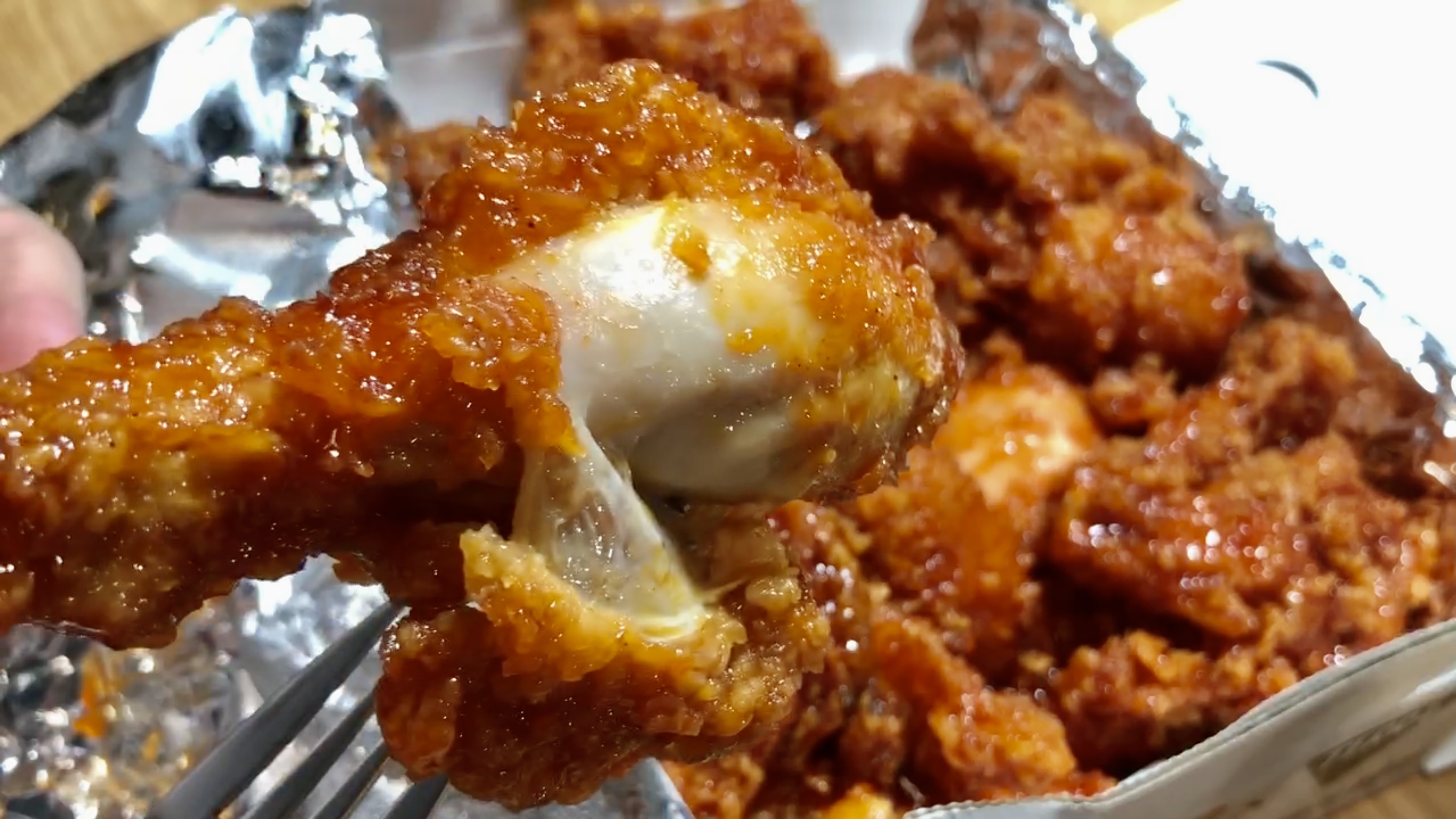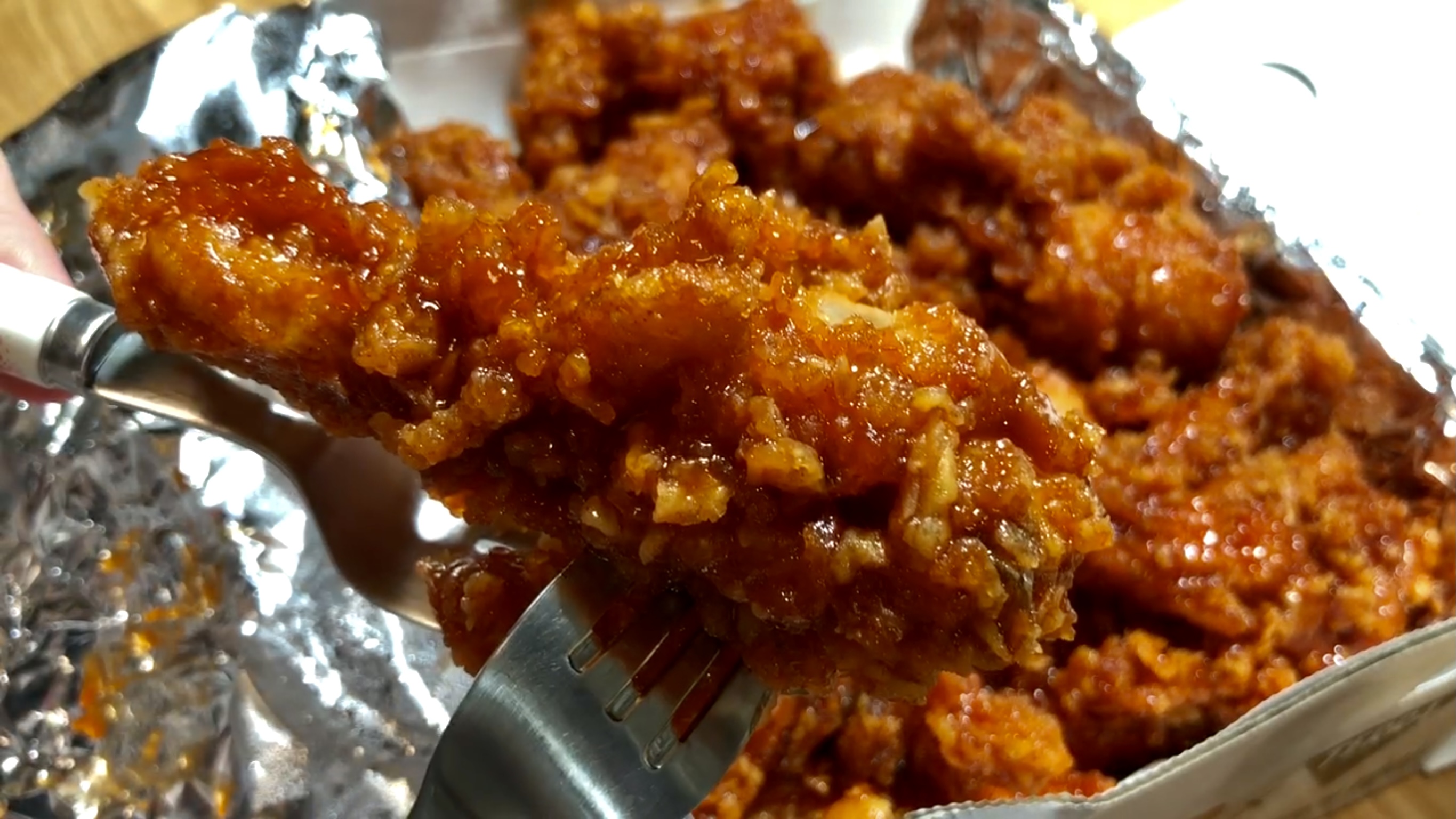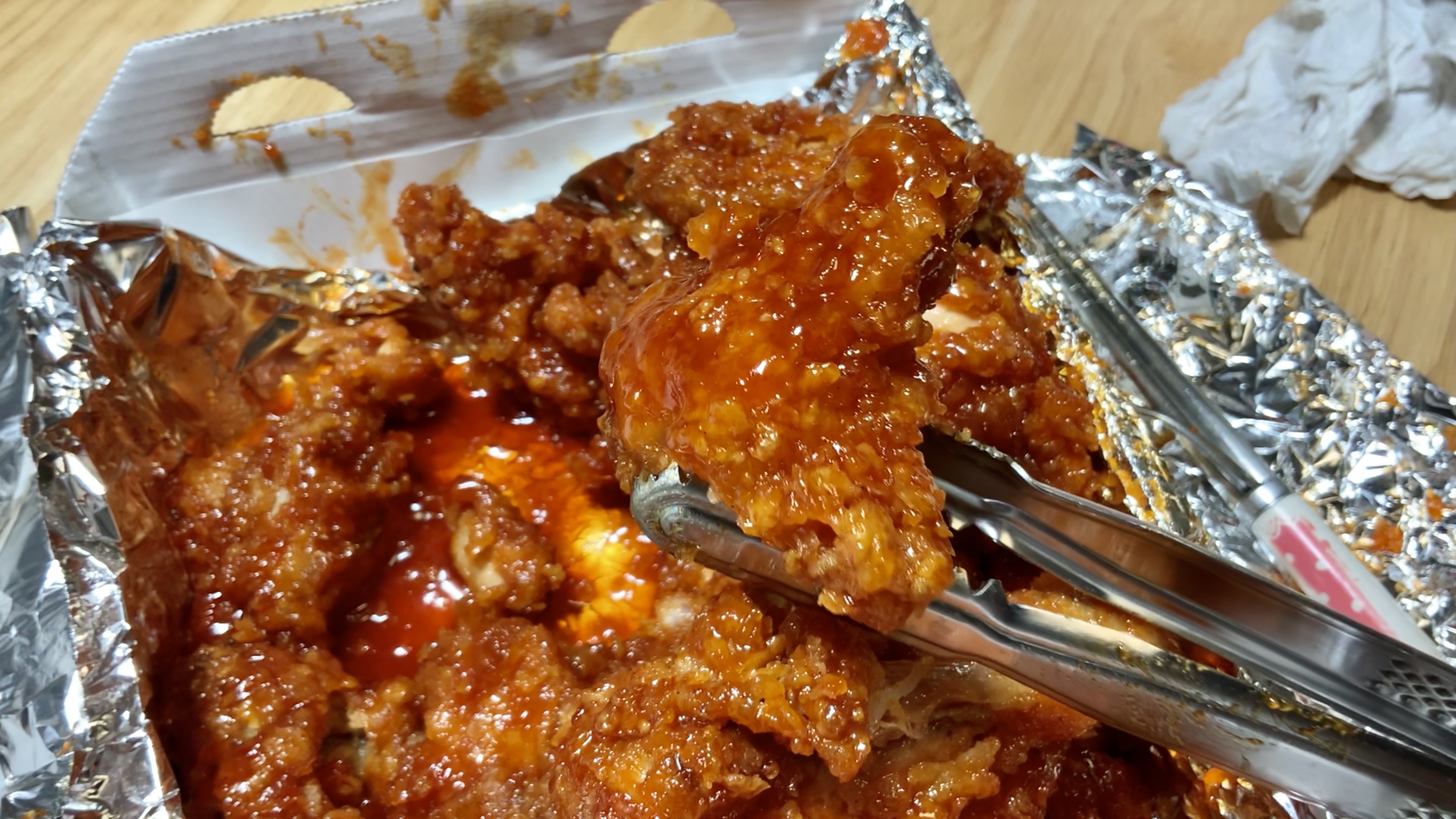 저는 그냥 충분히 달짝지근한 양념치킨이라 모르겠지만 혹시라도 매운 걸 정말 정말 먹지 못하거나, 평소 나는 신라면도 맵다!면??