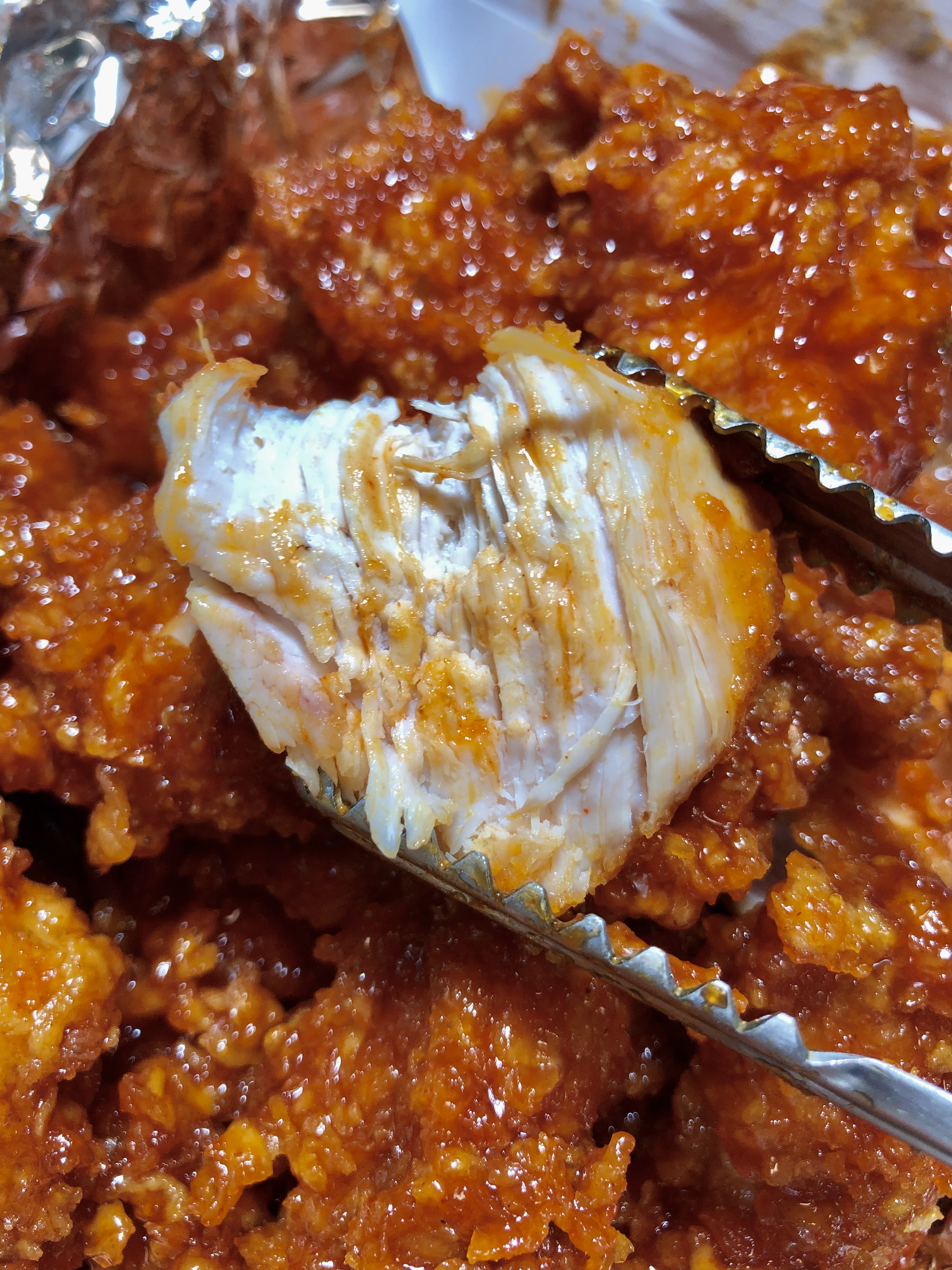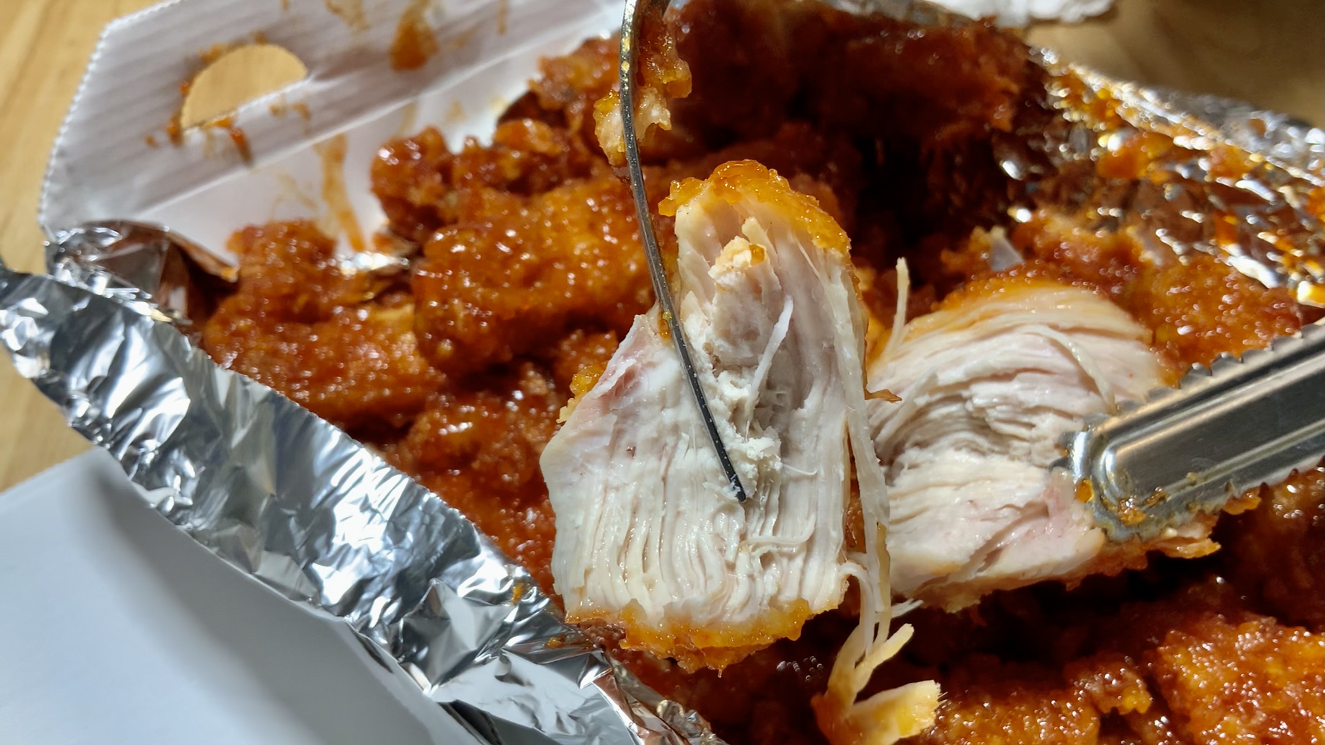 비비큐의 큼직한 살코기를 쪼개서 나오는 뽀얀 살결이 너무 좋아요.