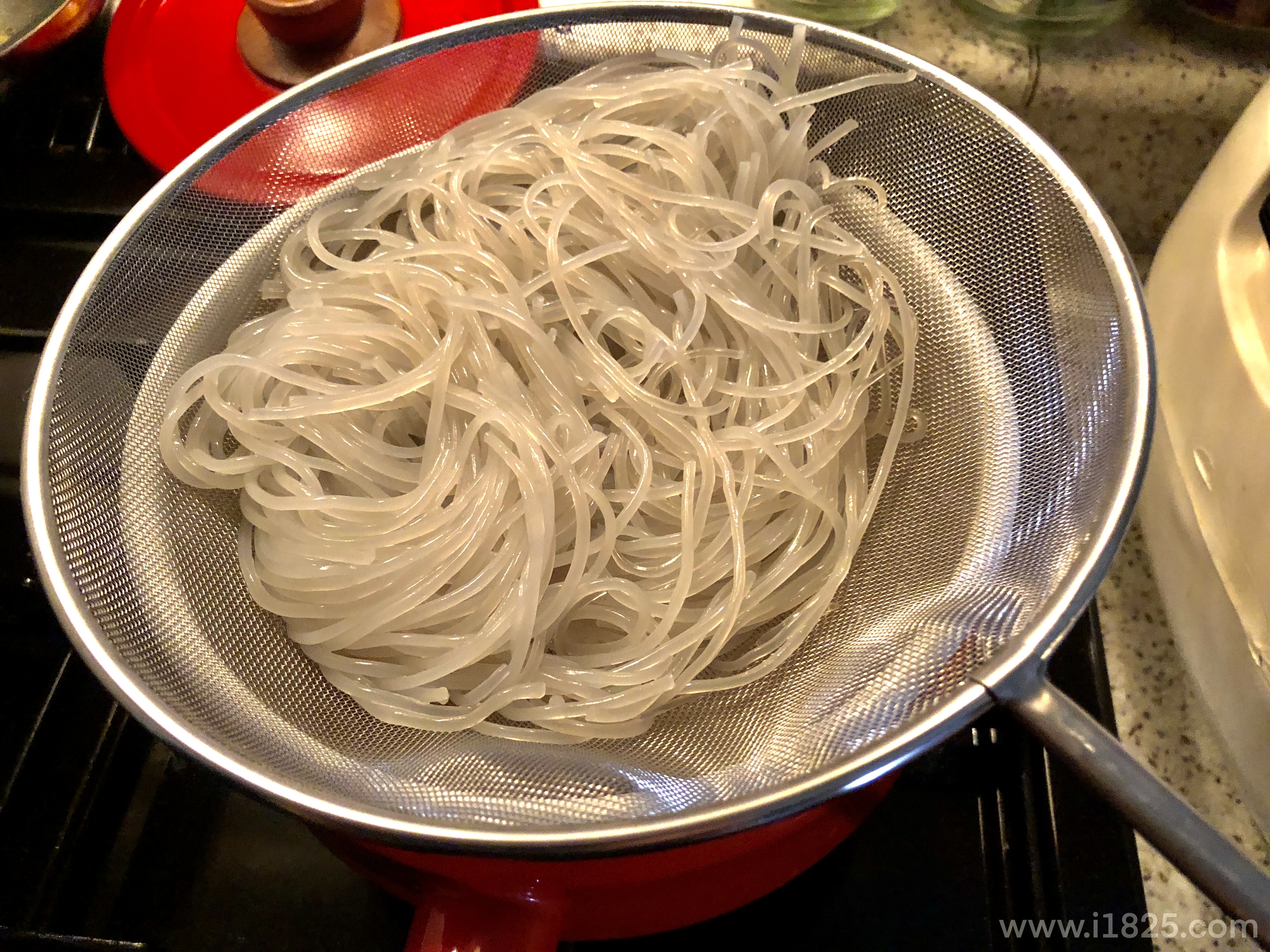 그리고 6분이 지나고 나서 당면이 충분히 불고 나면 당면을 채에 받혀서 물기를 빼주세요.