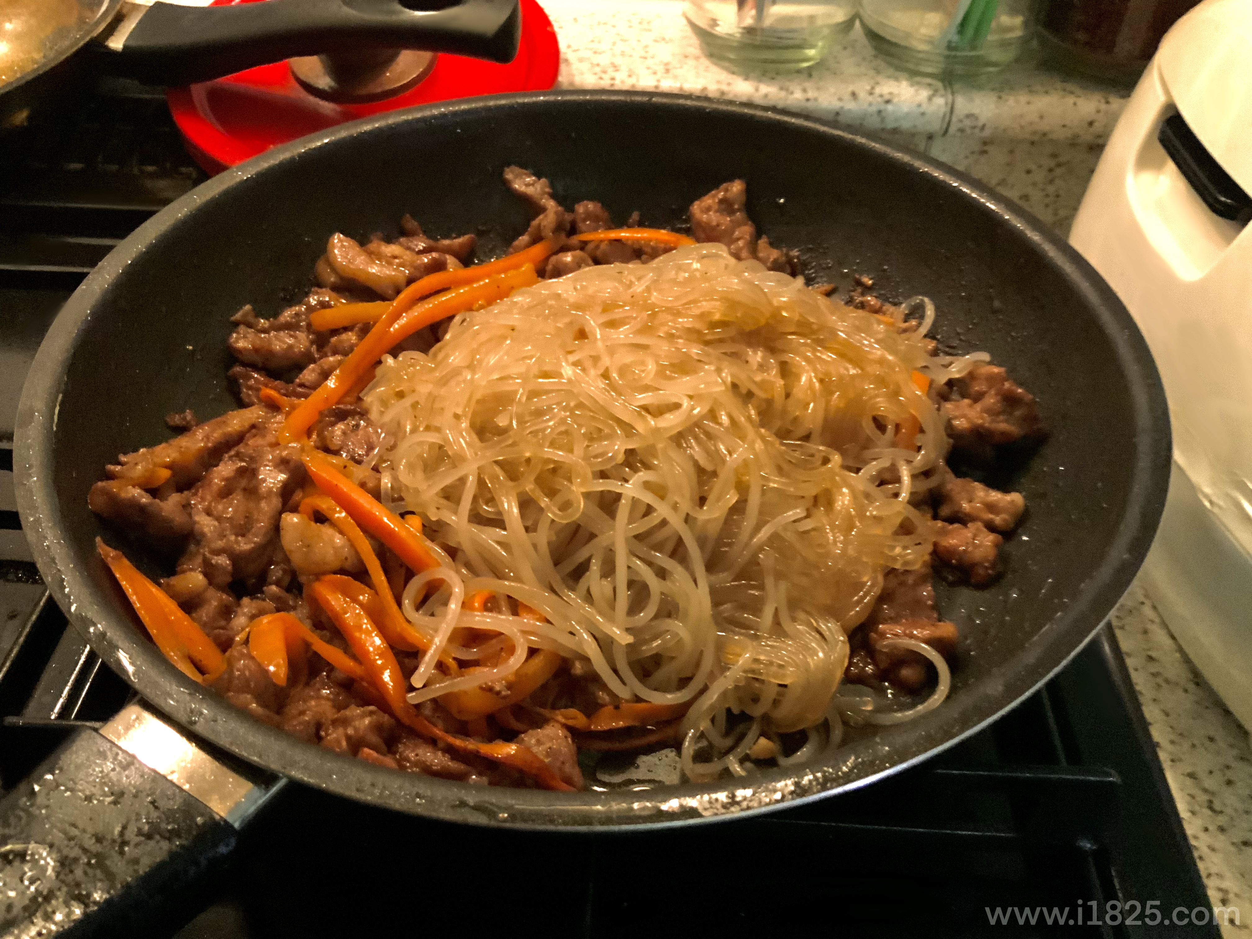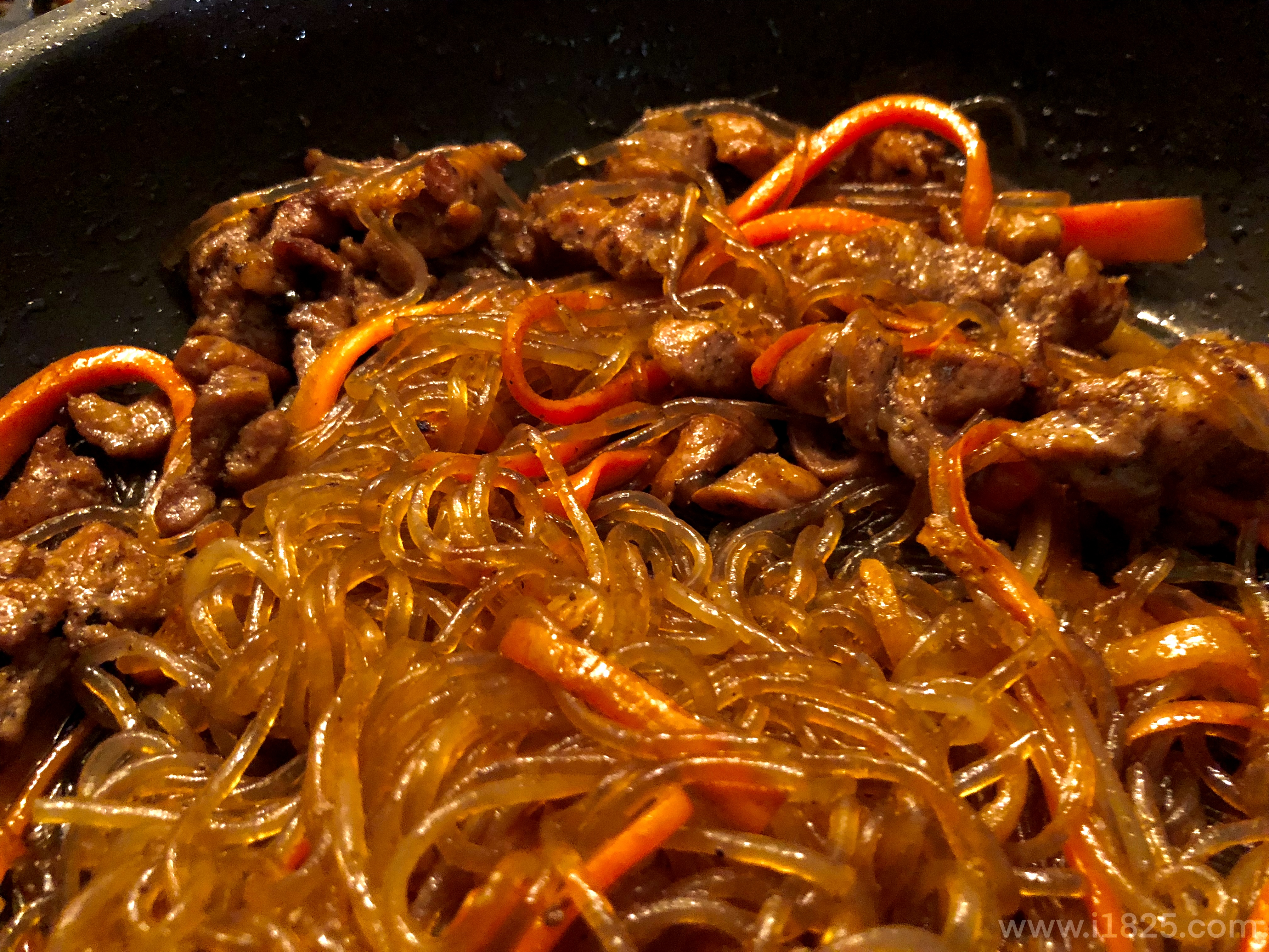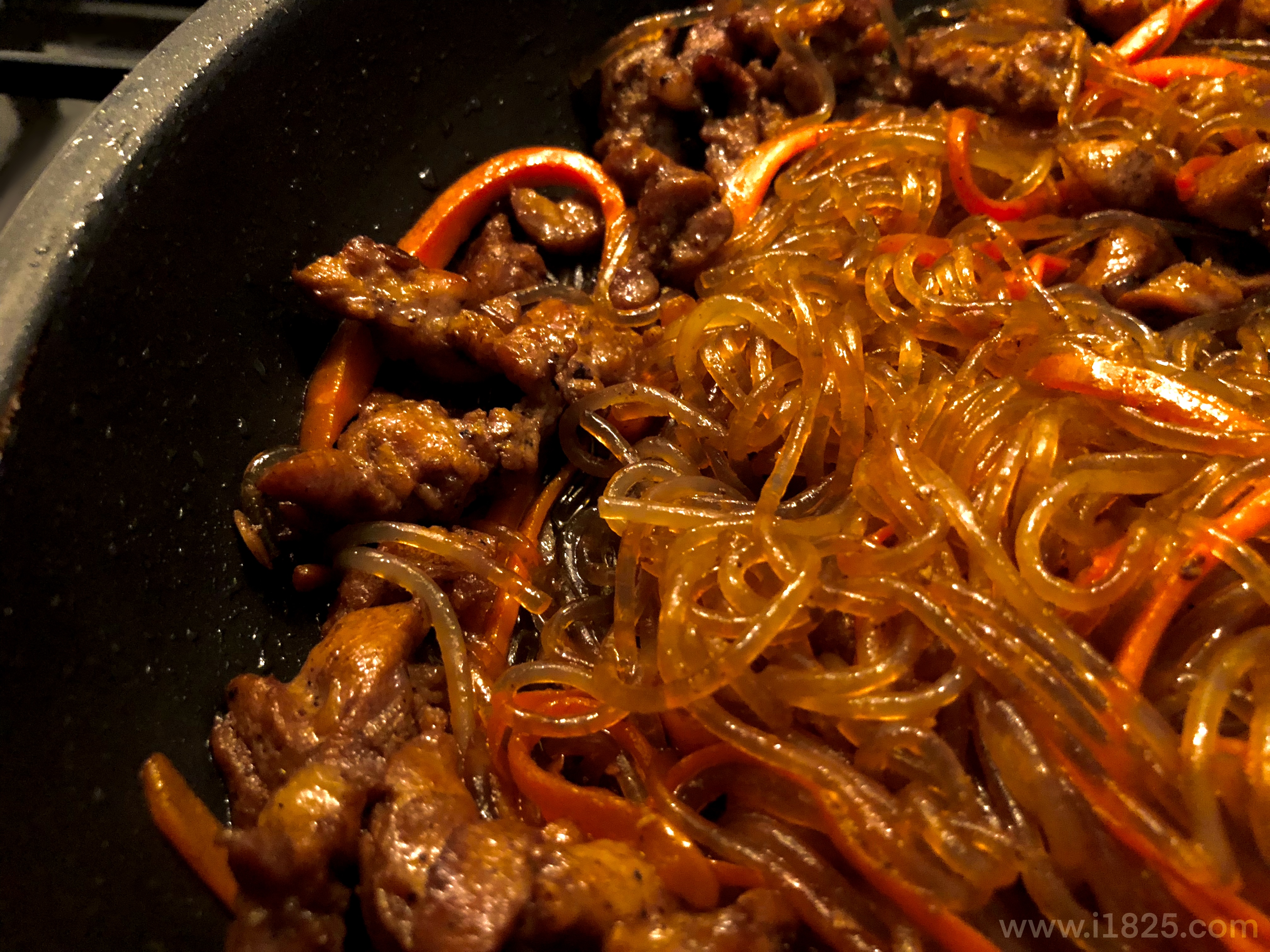 3. 돼지고기와 당근이 어느 정도 익으면 마지막 불려놓은 당면을 넣고 양념을 조금씩 추가하면서 마지막으로 볶아주면 돼지고기 잡채 완성!!입니다.