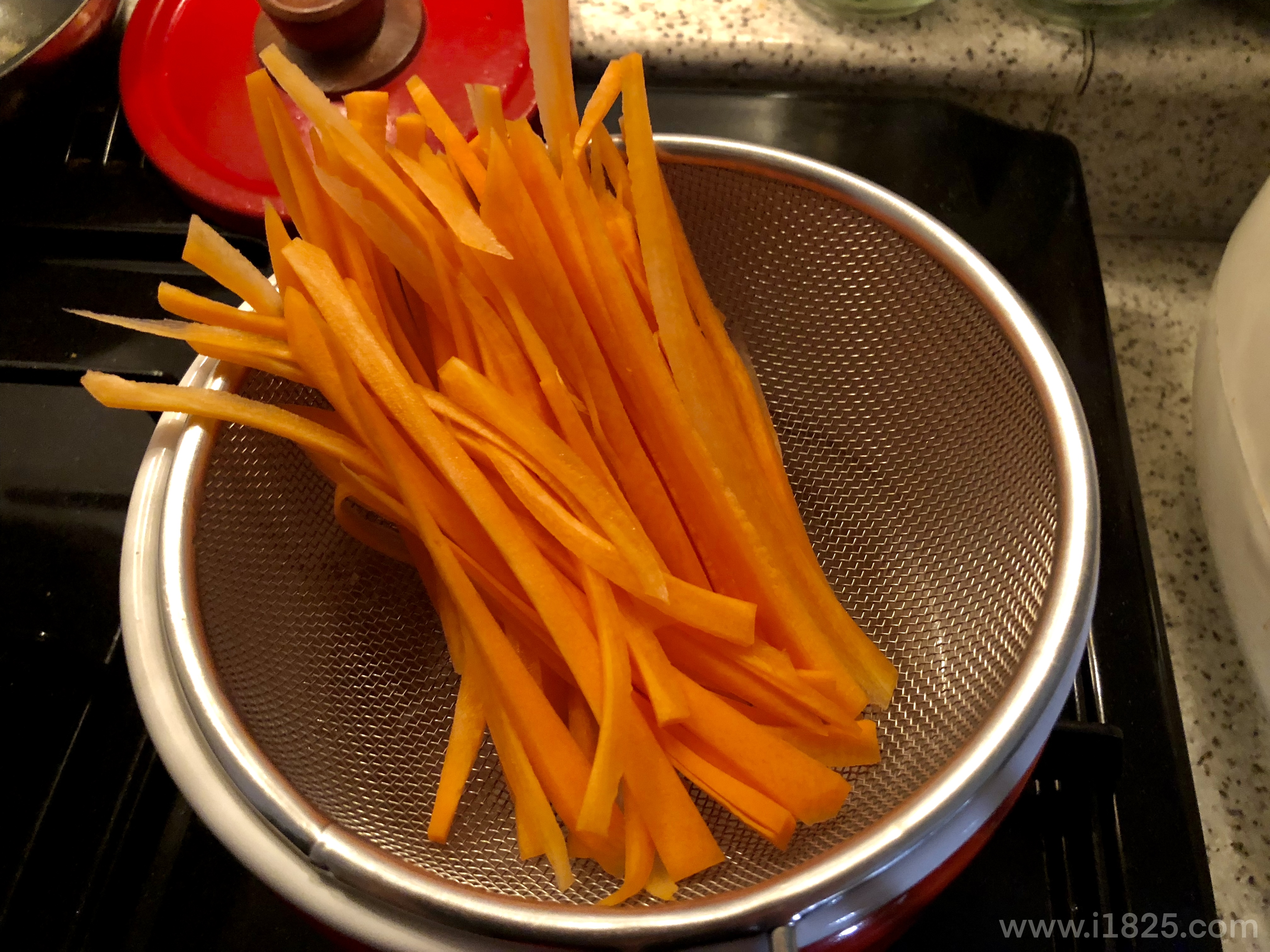 !!!♪너무 얇게 채를 썰면 너무 얇은 두께로 인해 식감이 밋밋해지고, 너무 두껍게 채를 썰면 당근을 익히는 데에 시간이 너무 오래 걸리기 때문에 적당한 두께로 자르는 것을 권장합니다!