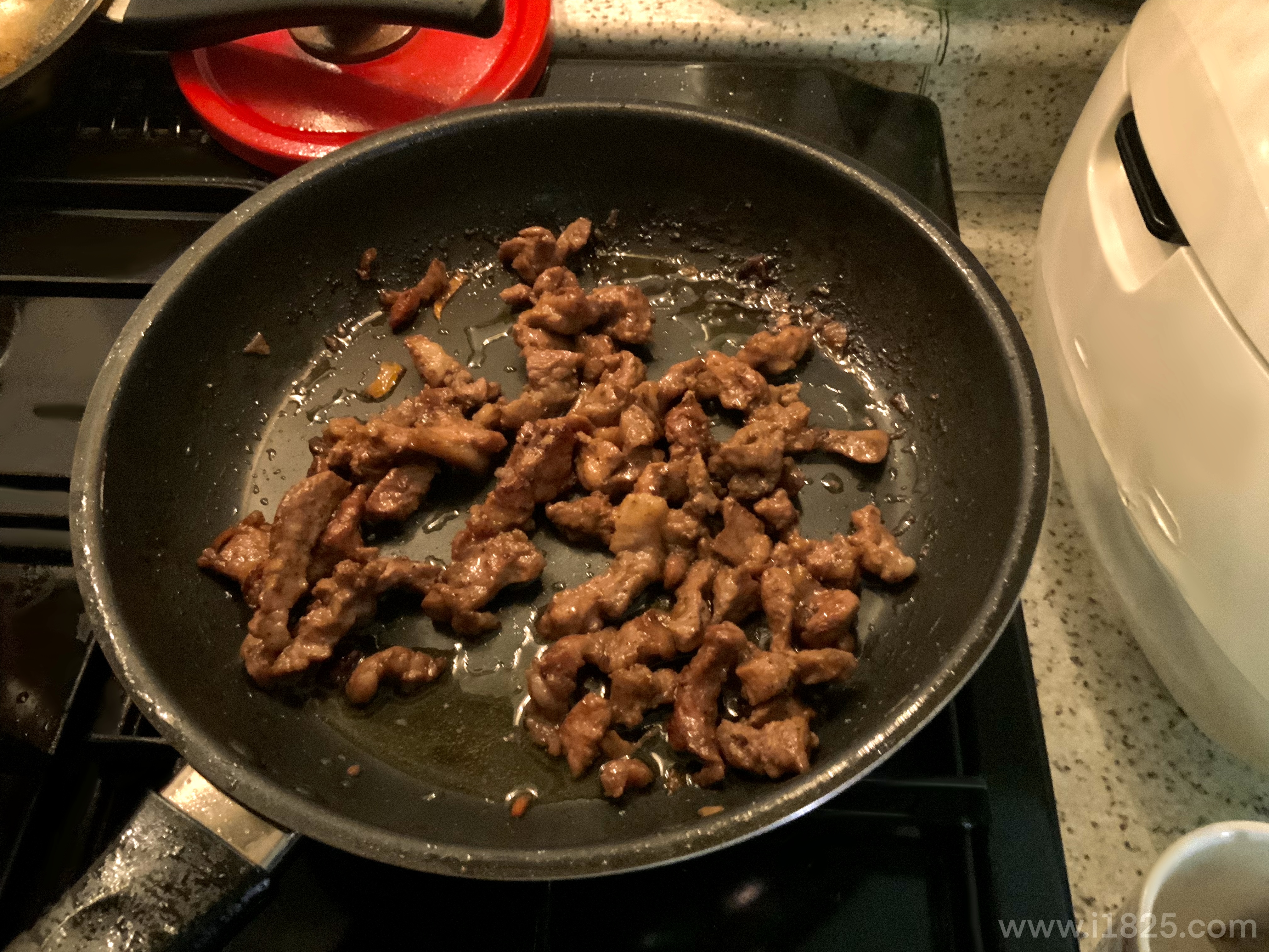 2. 돼지고기가 반 정도 익고 나면 미리 볶아놓은 당근을 넣고 마저 볶아줍니다.