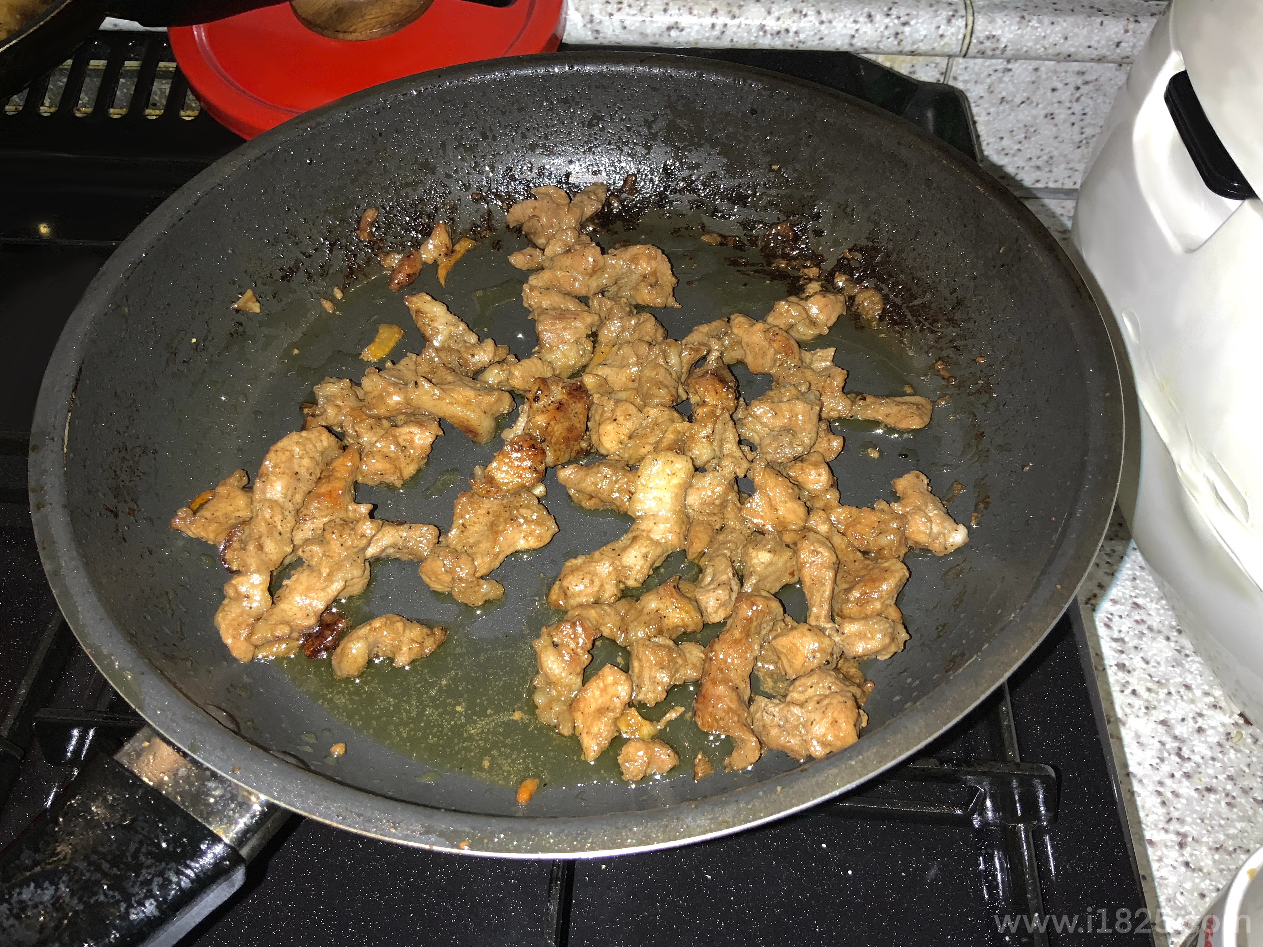 1. 적당한 크기로 자른 돼지고기를 기름을 살짝 두른 팬에 미리 만들어 둔 양념장을 살짝씩 바르면서 천천히 약불에 볶아줍니다.