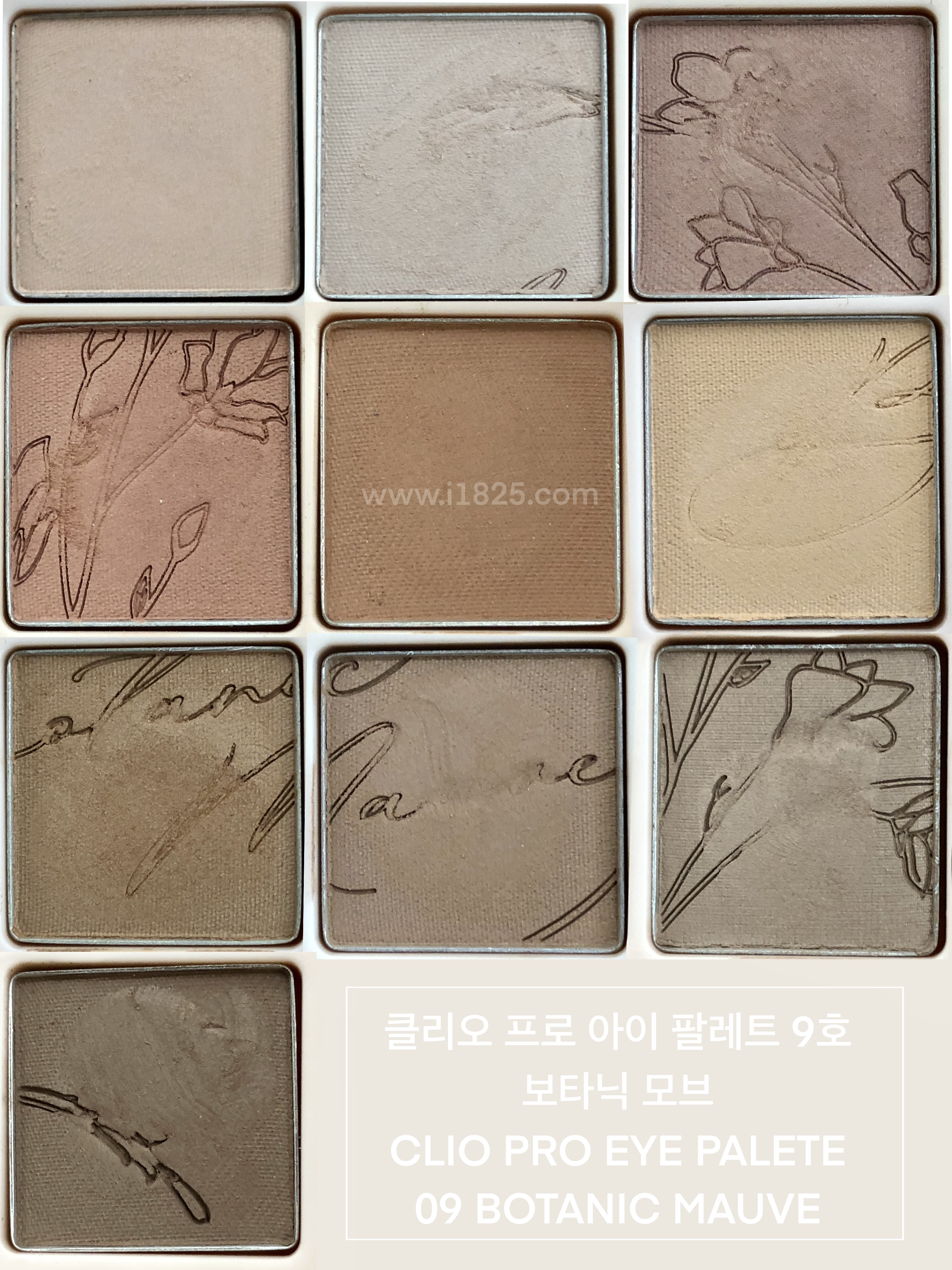 다른 프로 아이 팔레트가 그러하듯이 클리오 프로 아이 팔레트 09 보타닉 모브의 섀도우 역시 베이스에서 중간 음영 마무리 짙은 음영 섀도우까지 팔레트 하나로 아이 메이크업을 끝낼 수 있습니다.