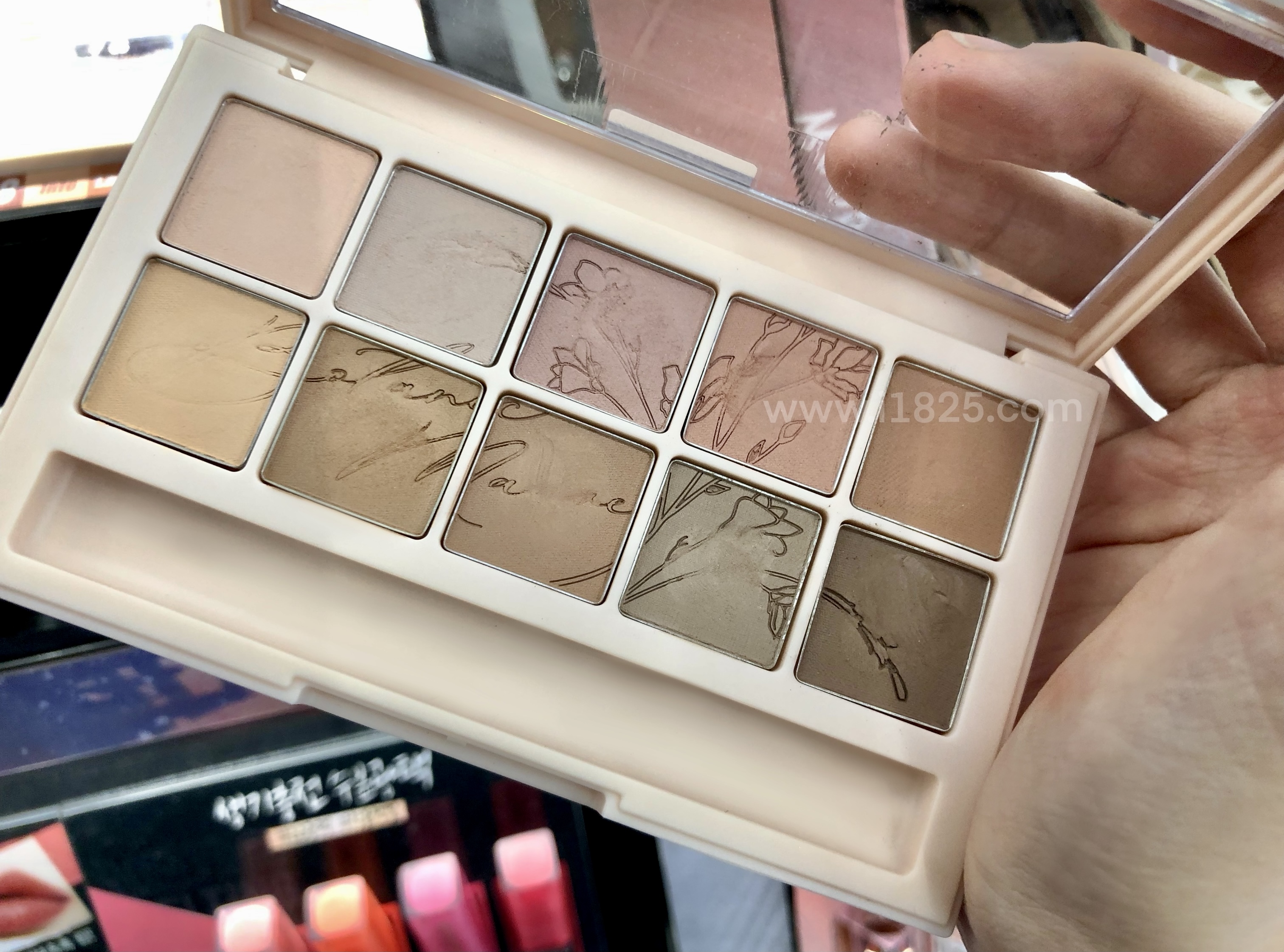 아이보리??베이지?? 해당 팔레트의 아이 섀도우와 같은 라인의 비슷한 색상으로 만들어지는 아이 팔레트의 케이스 색깔이 아이 팔레트를 한 눈에 구분해주니까 편리해요.