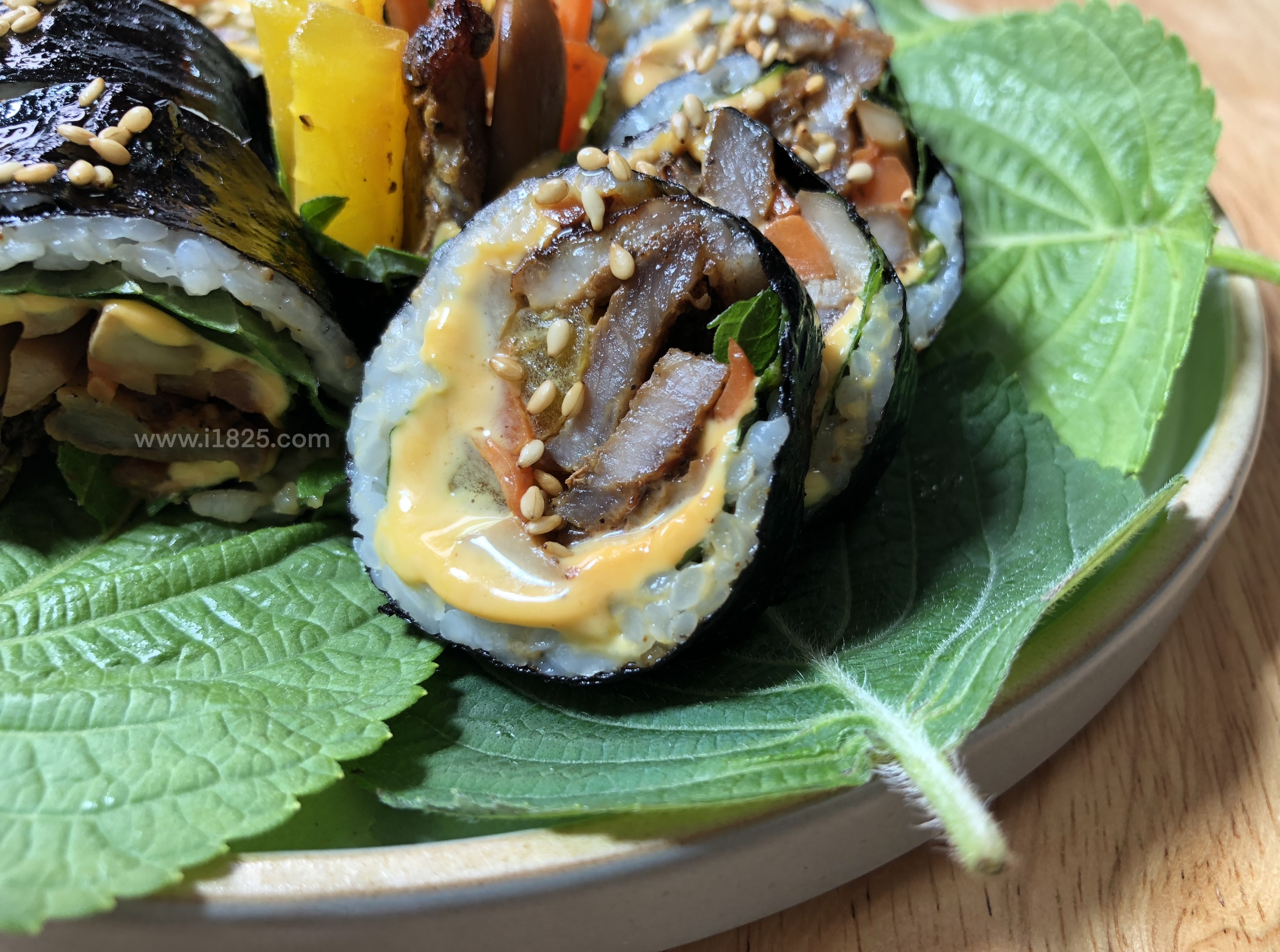 사실 싱거울까 봐 양념장을 만들고 고기를 구울 때 바르기도 했지만 딱히 양념장을 추가하지 않아도 조금 심심한 듯 무난한 그래서 그런 입맛이면 좋아할 김밥이기도 해요.