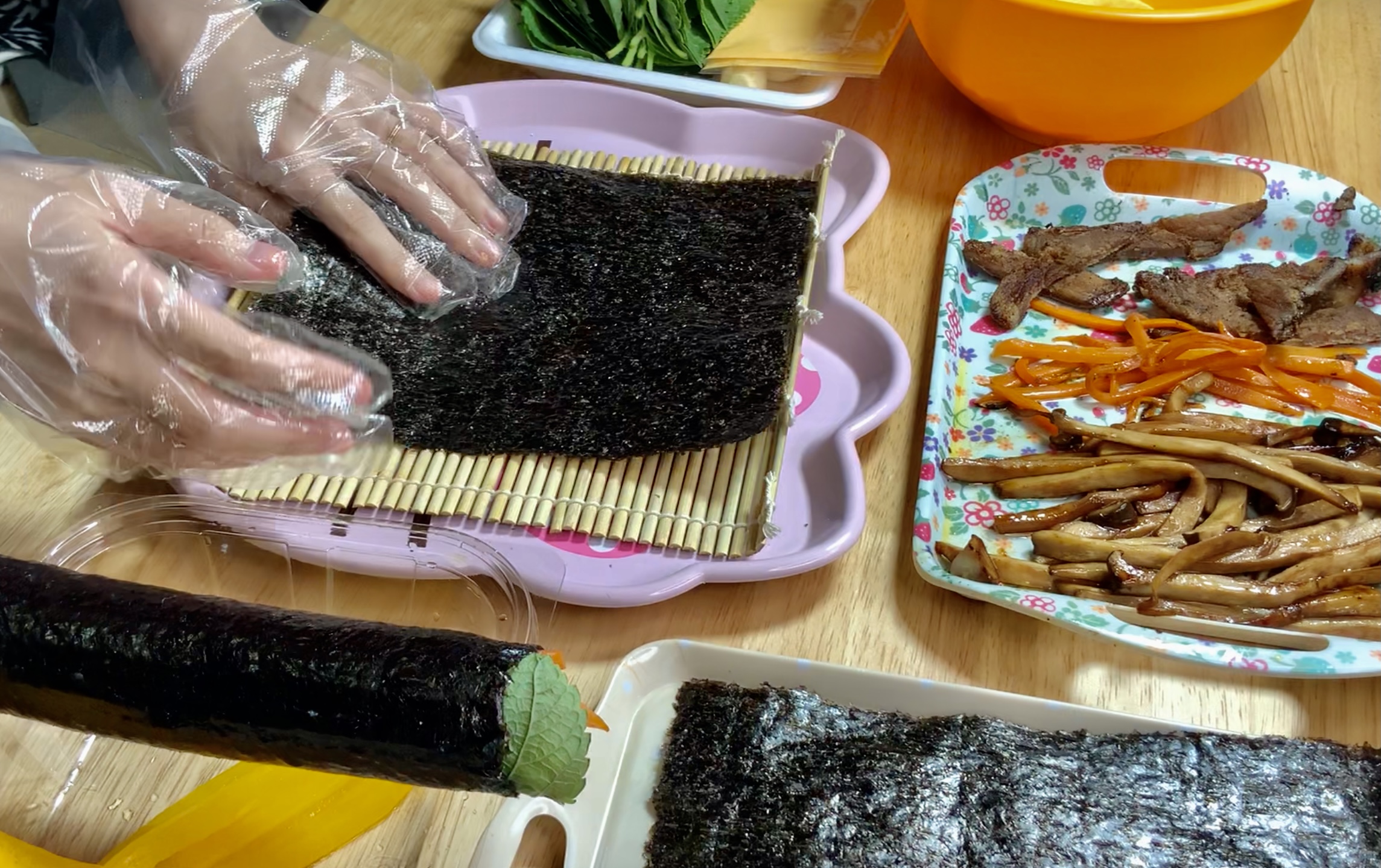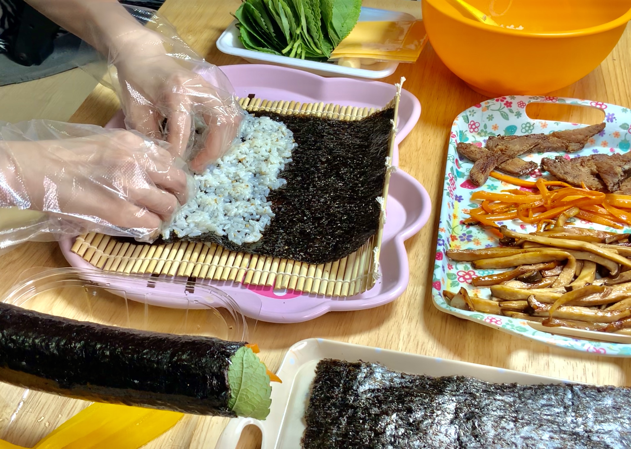 이제부터 본격 초간단 김밥 만들기, 김밥 말이를 시작!! 합니다.