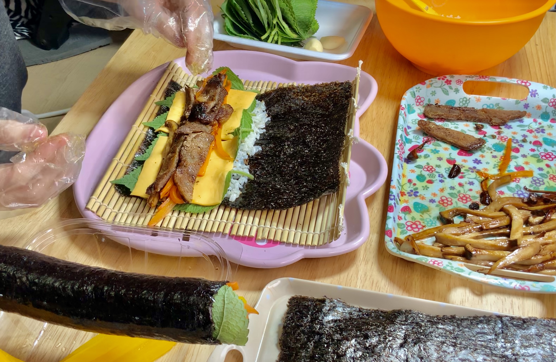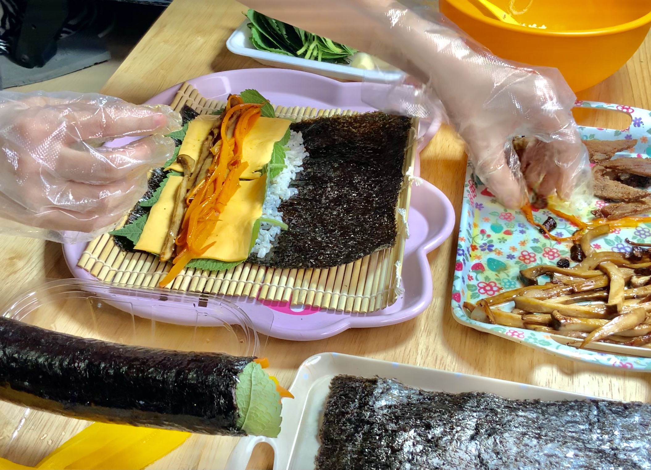 김밥은 연약하고 고기는 생각보다 단단해서 조금만 힘이 들어가도 김밥에 펑크 나서 옆구리가 터지는 참사를 겪었습니다.