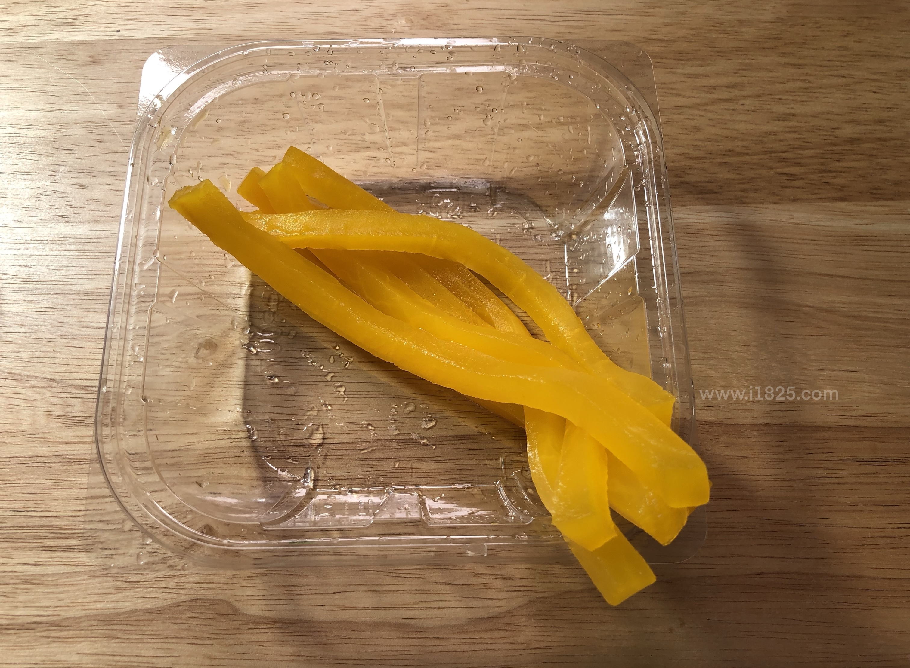 8. 그 위에 단무지를 2 개 나란히 올려주세요.