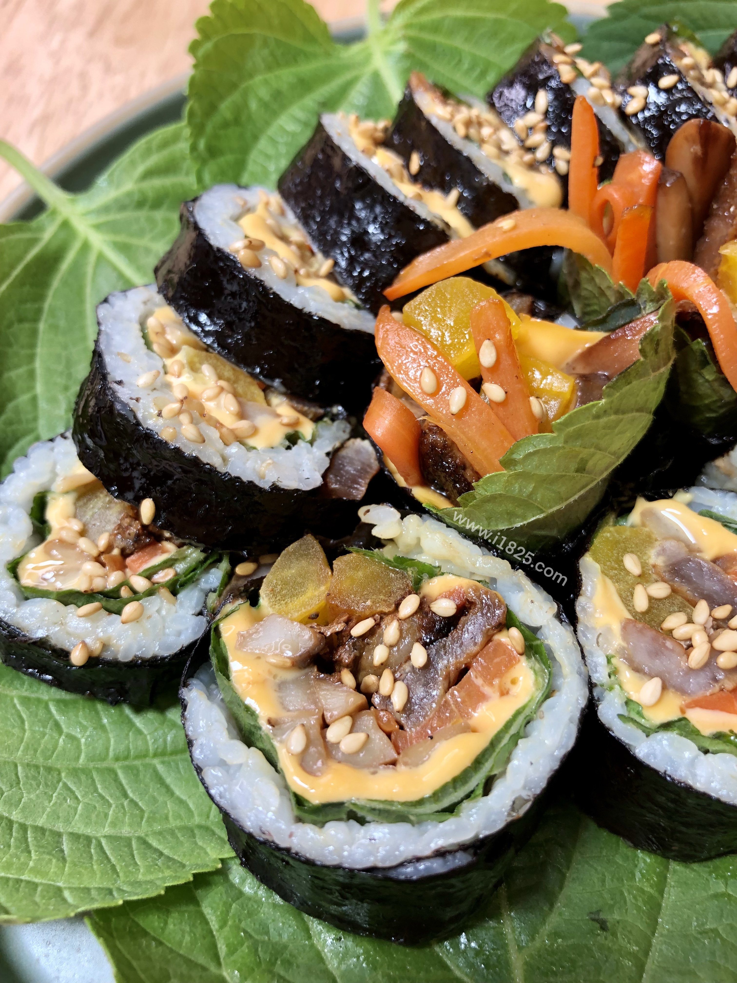 버섯의 식감이 이 김밥에는 그럭저럭 어울렸어요.