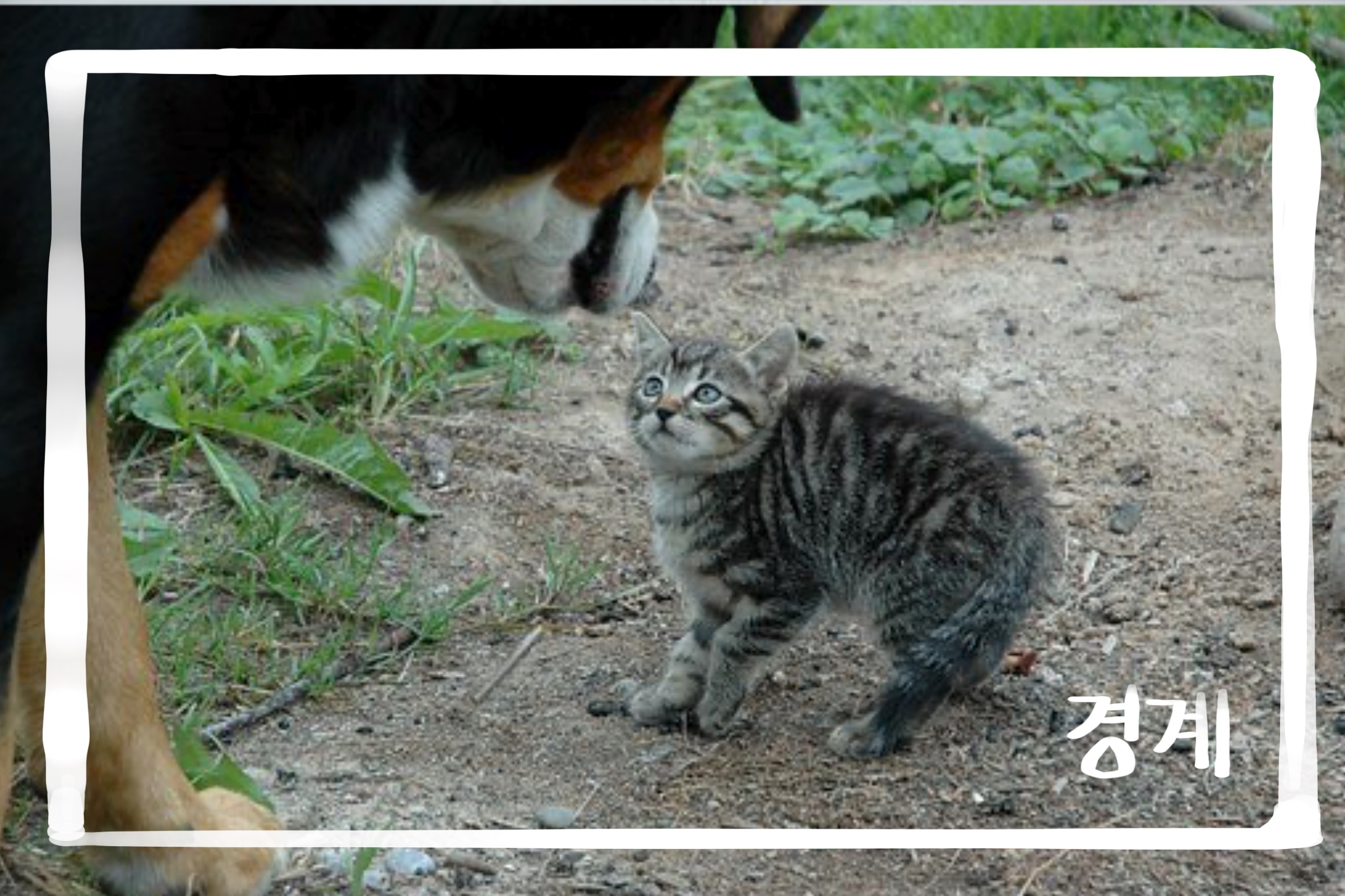 경계태세로 돌입한 고양이는 상대를 탐색하고 있습니다.