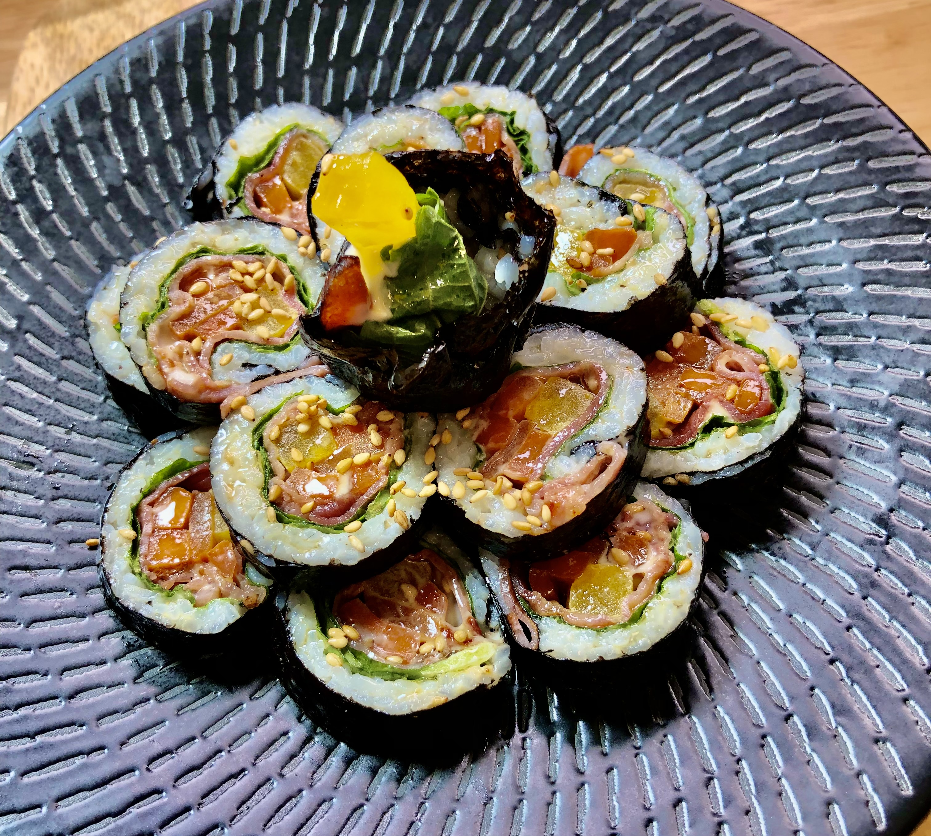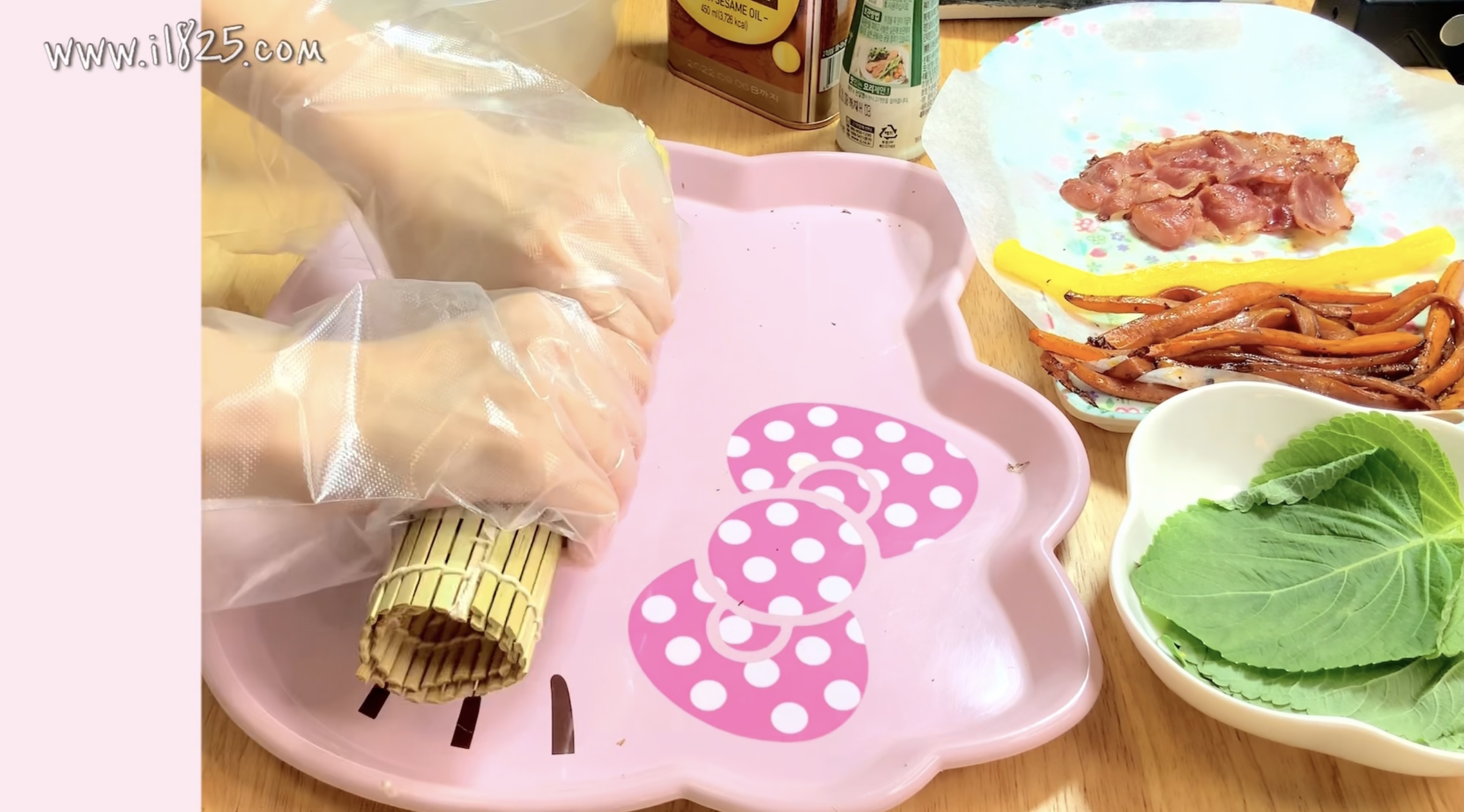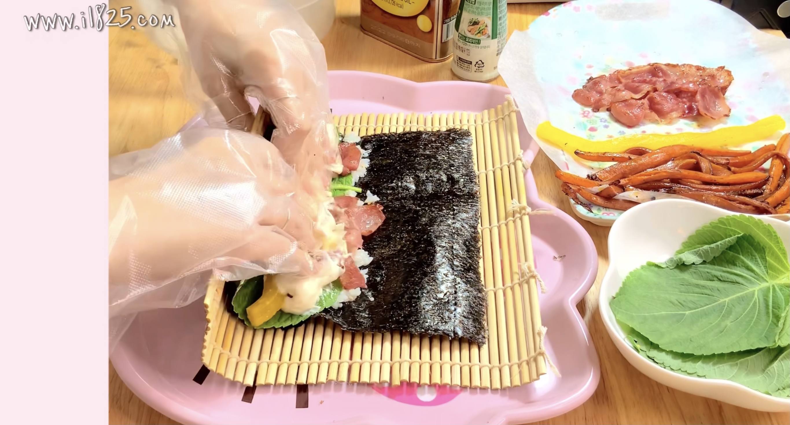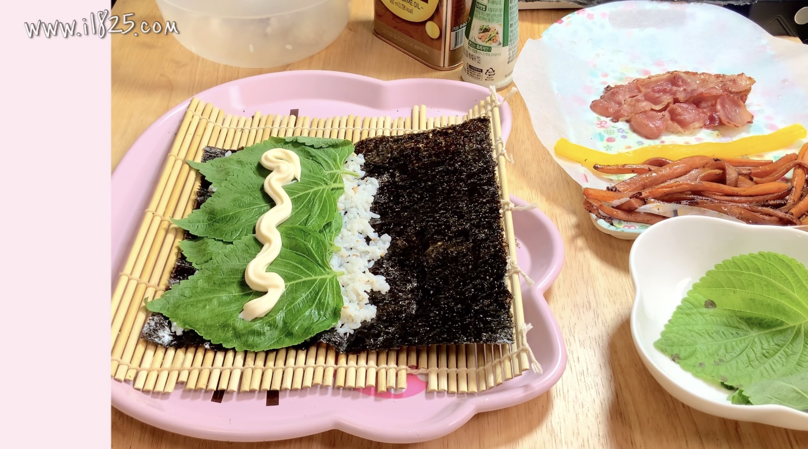 그럼 여기까지! 베이컨과 깻잎을 사용한 베이컨 김밥 만들기를 이만 마치도록 하겠습니다.