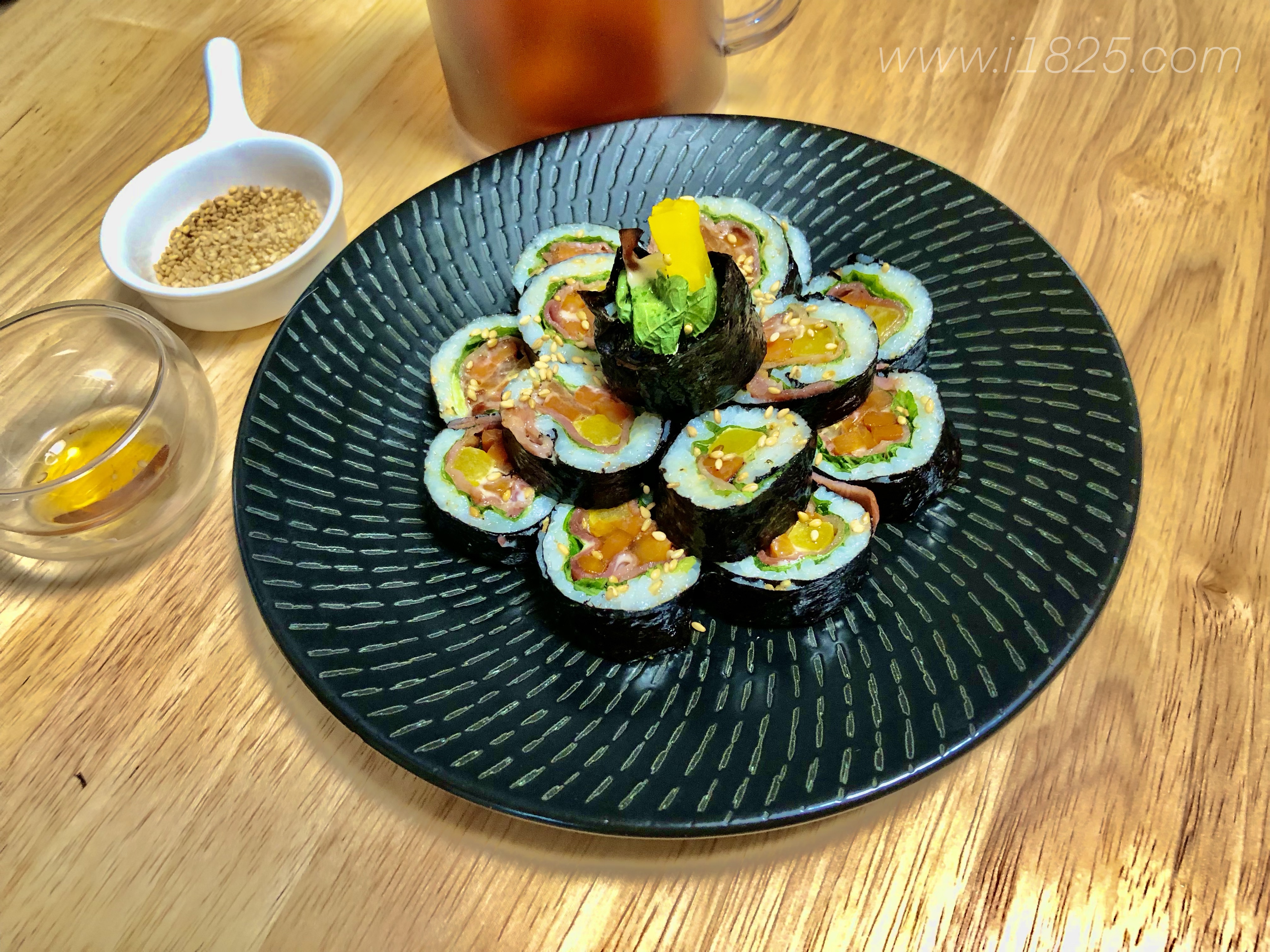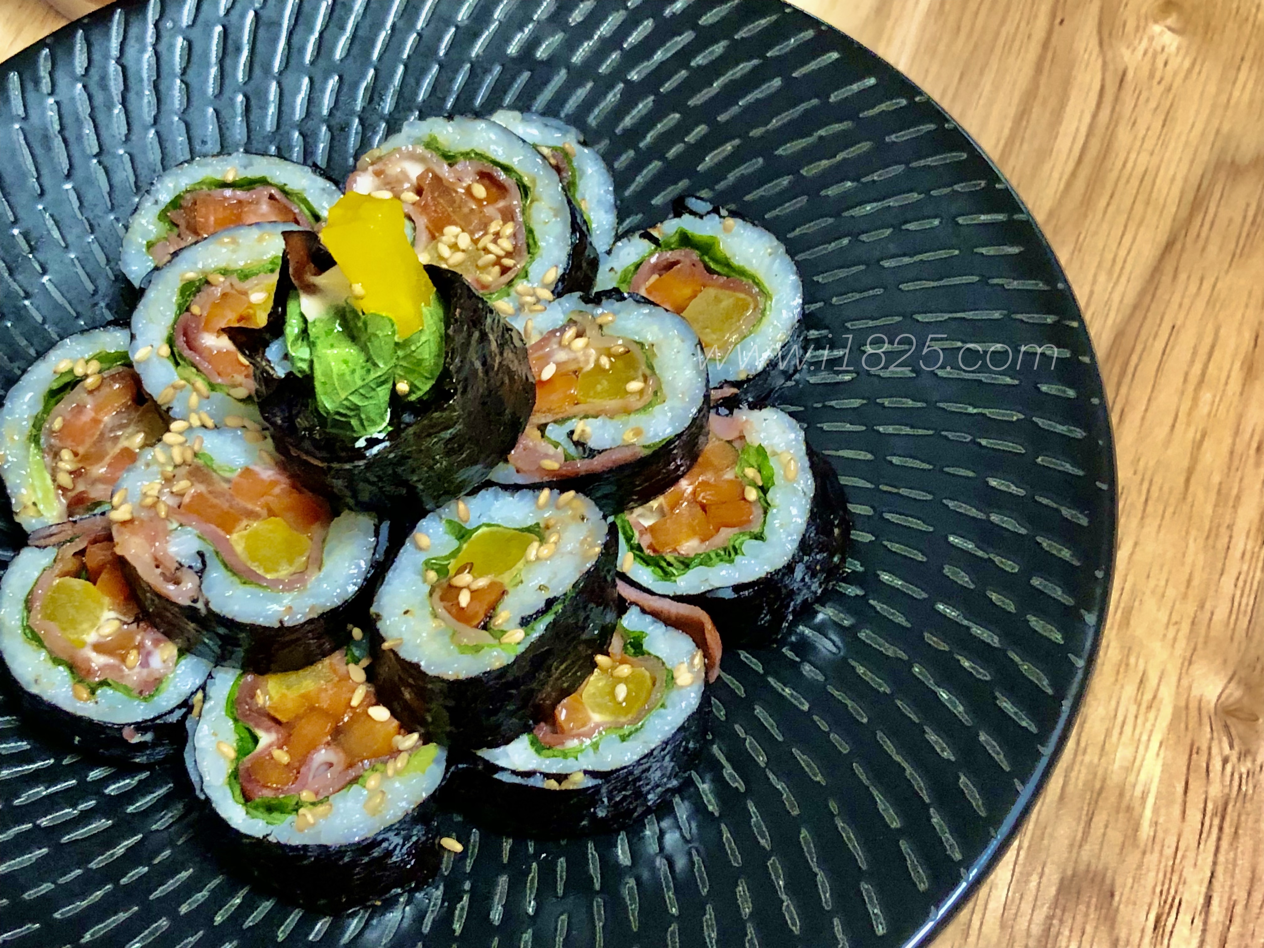 안녕하세요. 생일상 또는 파티에 가면 단조로운 음식임에도 어김없이 자리를 지키고 있는 아주 대중적인 음식, 바로 김밥!! 새벽녘에 홀로 일어나 어머니가 싸주시던 김밥에 돼지고기 목살을 넣