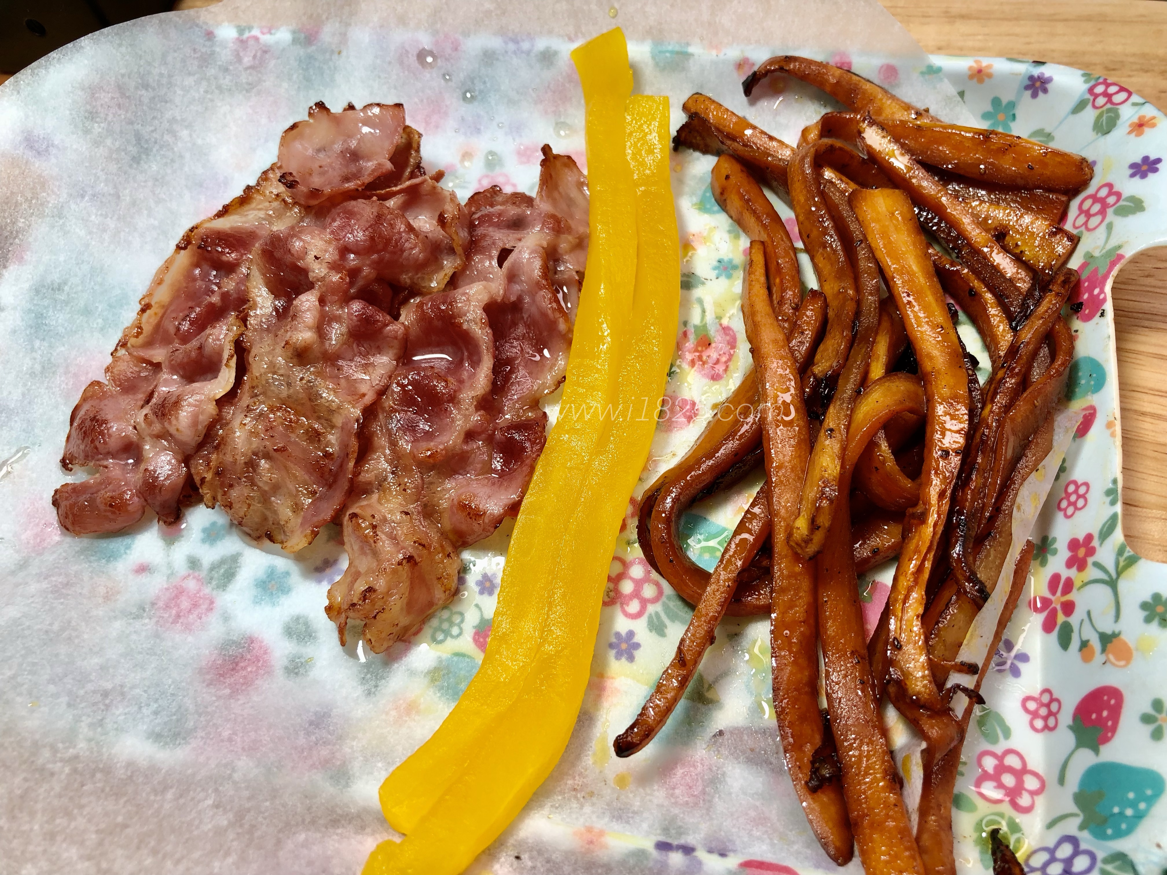 베이컨이 타지 않도록 약불에서 은근하게 구워주세요.