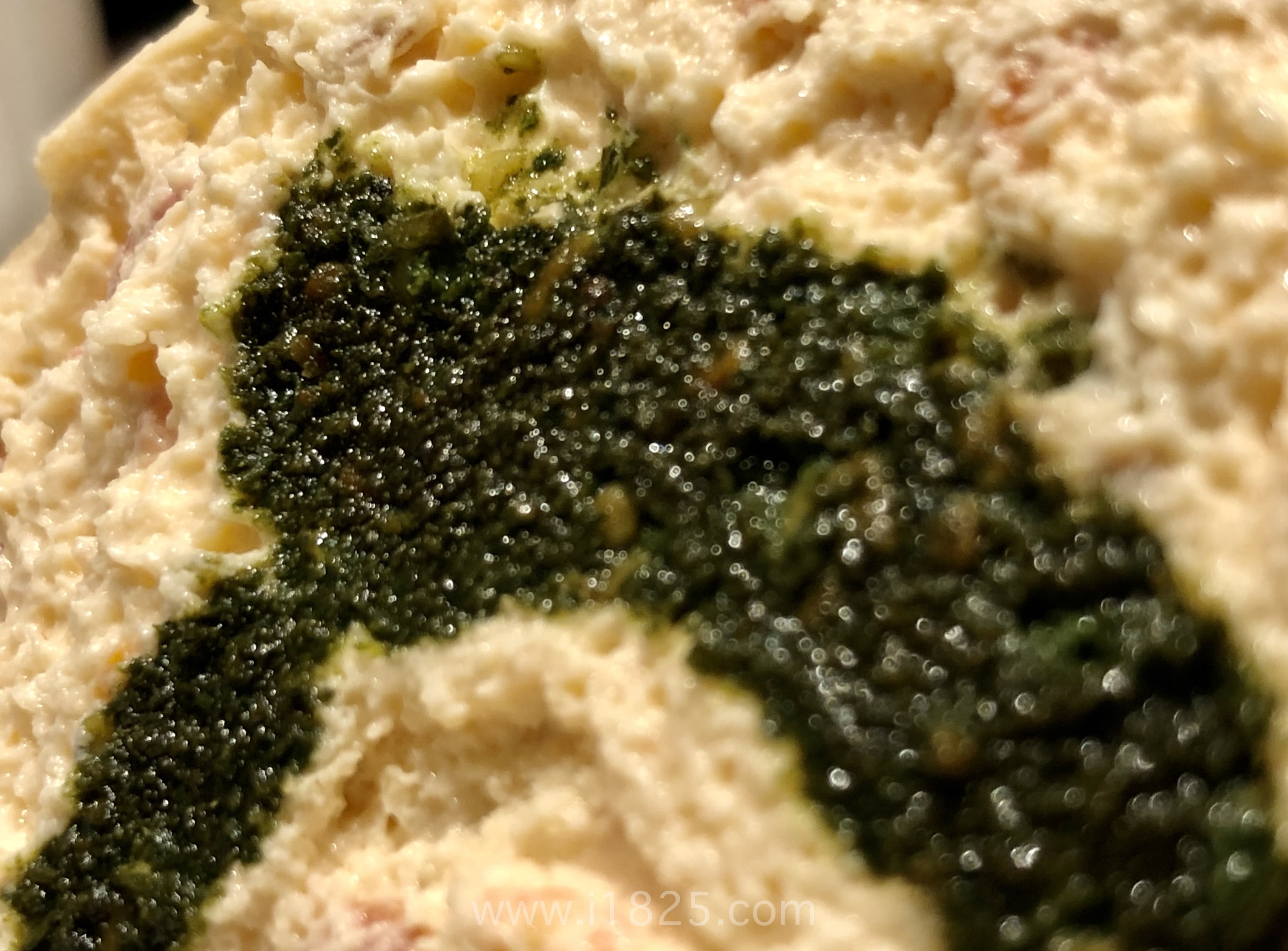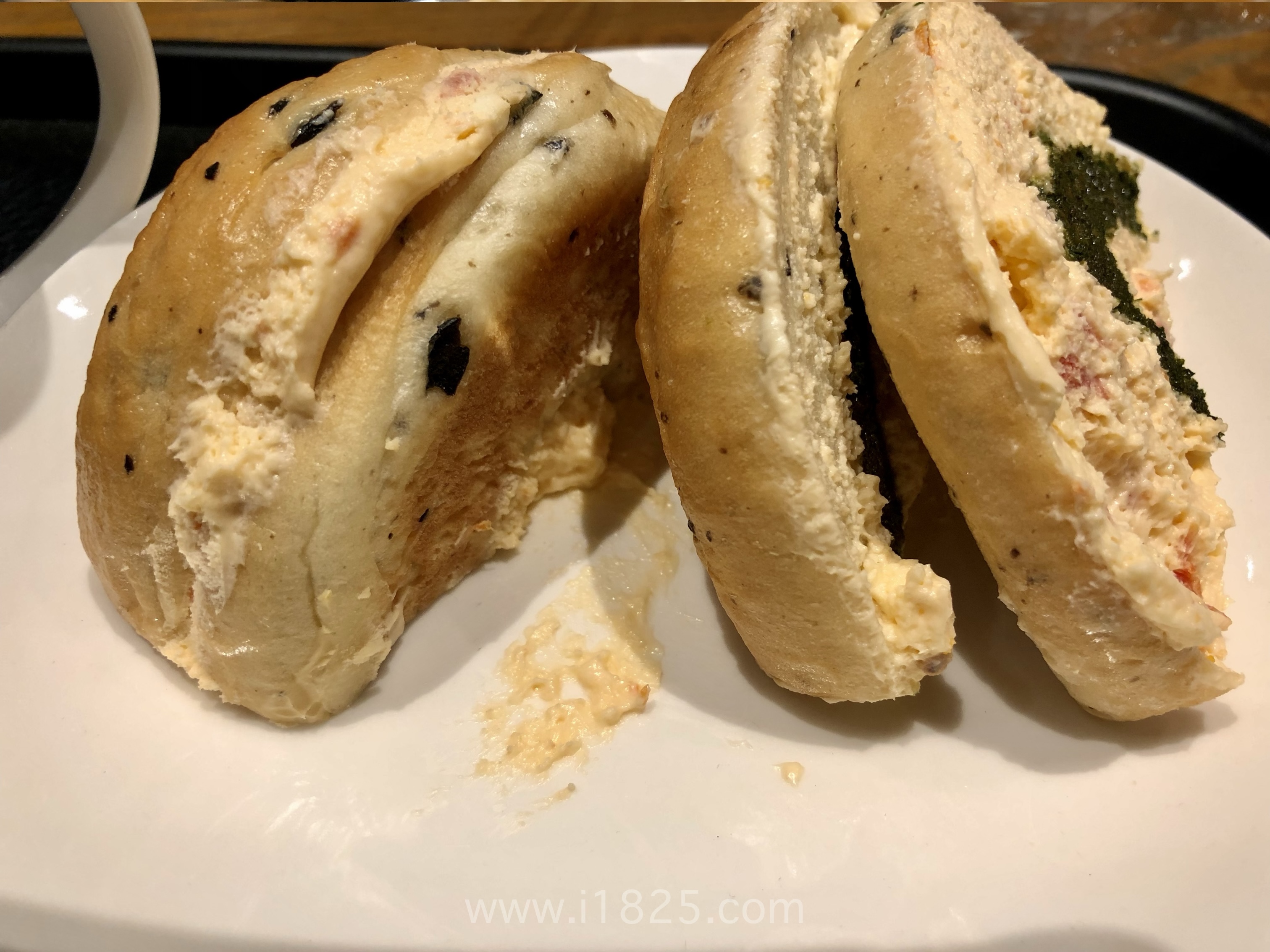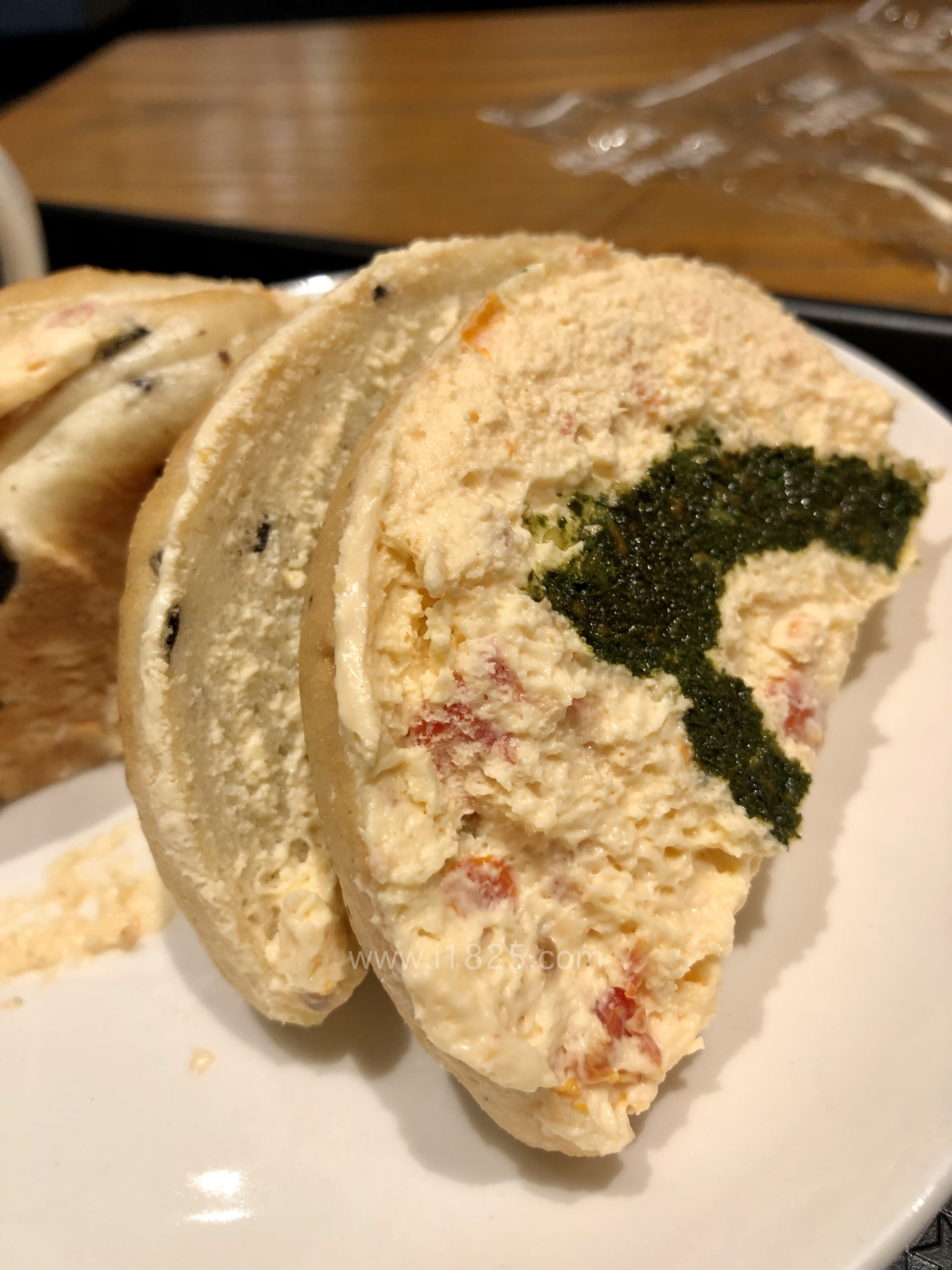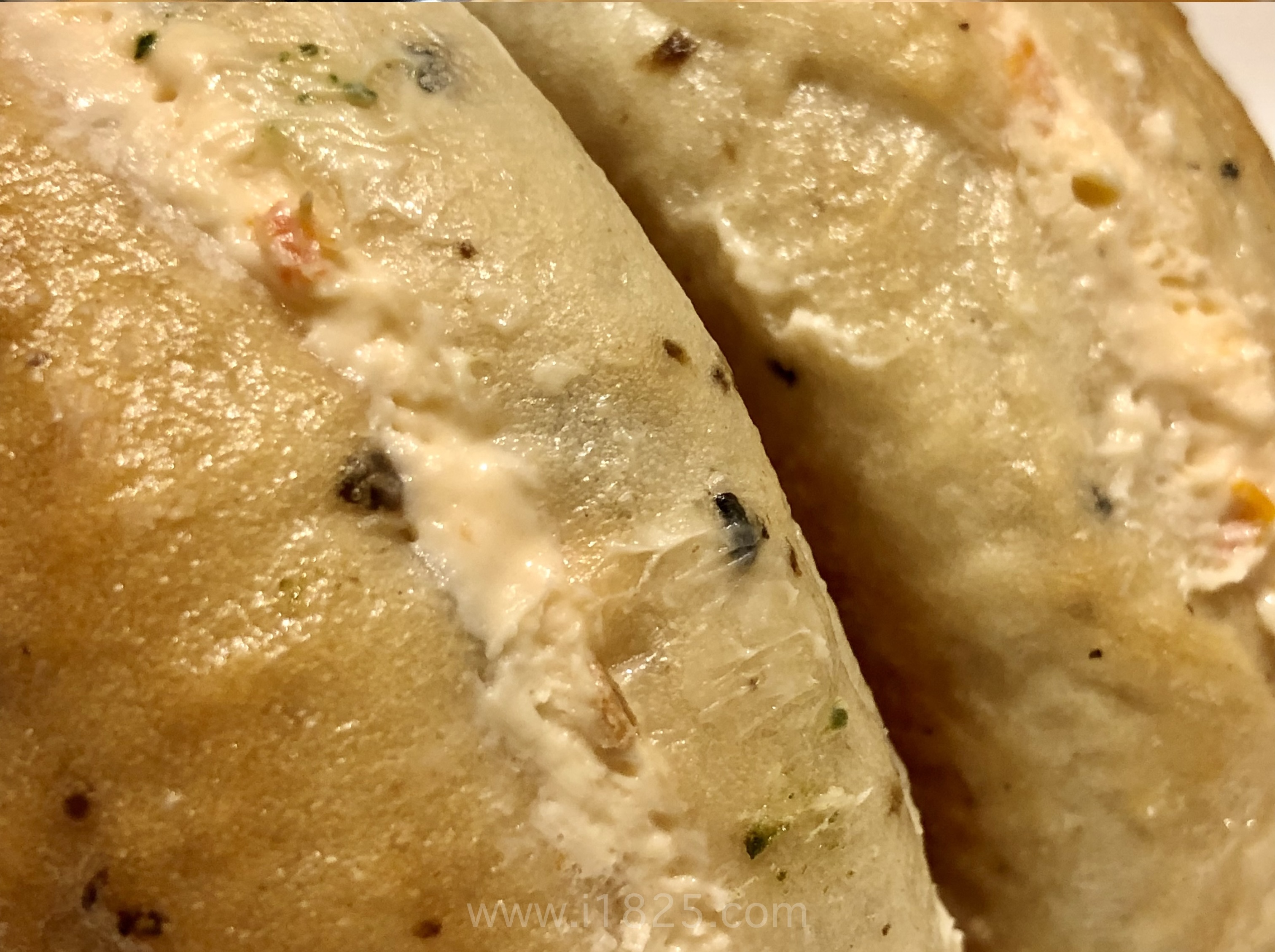 도톰하게 섞여있는 크림페스토는 짭짭하게 짭잘한 맛으로  베이글의 고소한 맛이 잘 어울려요.