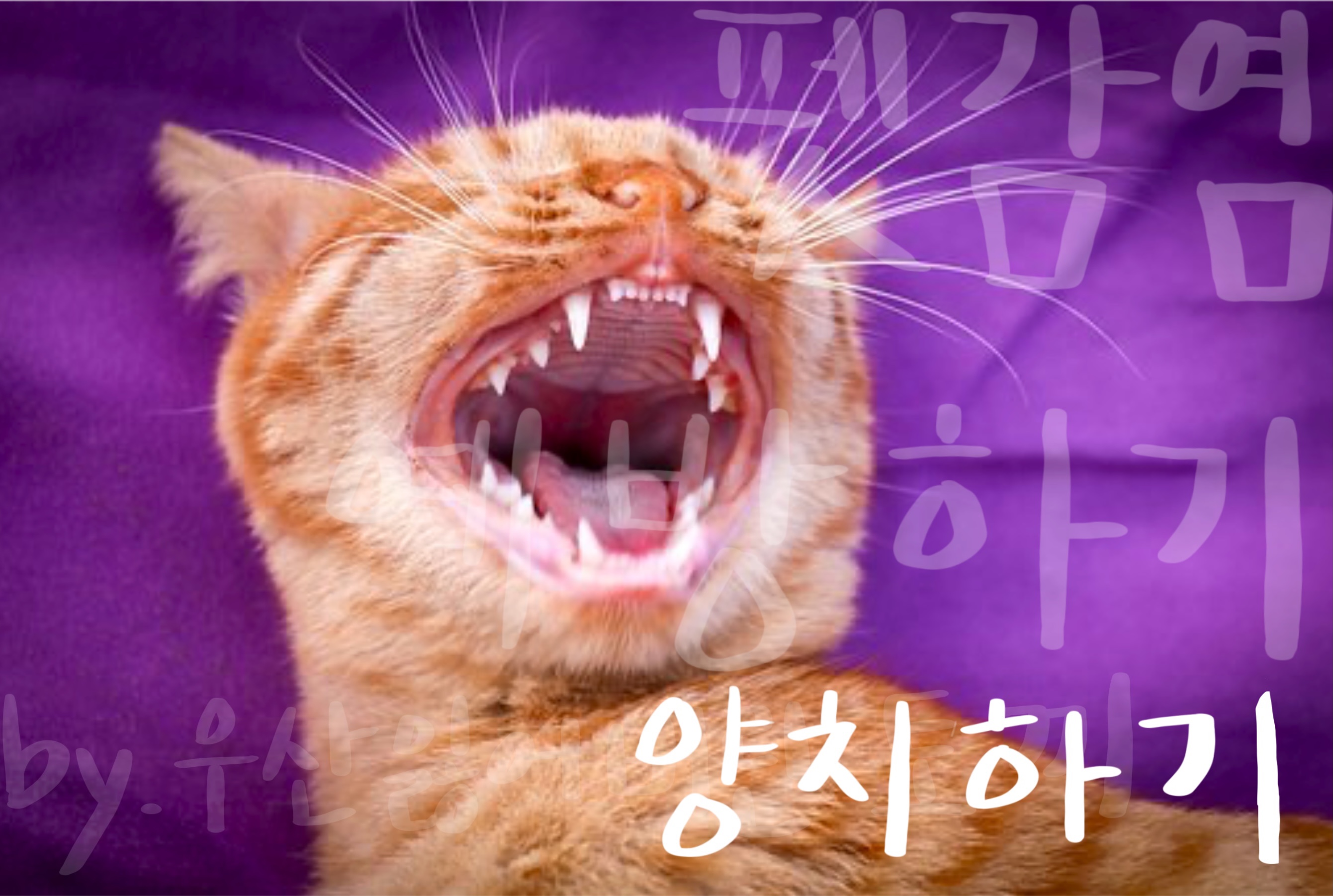 - 키스 특히 고양이의 입에 키스하지 않는다. 고양이의 입안에는 100% 세균이 있다.