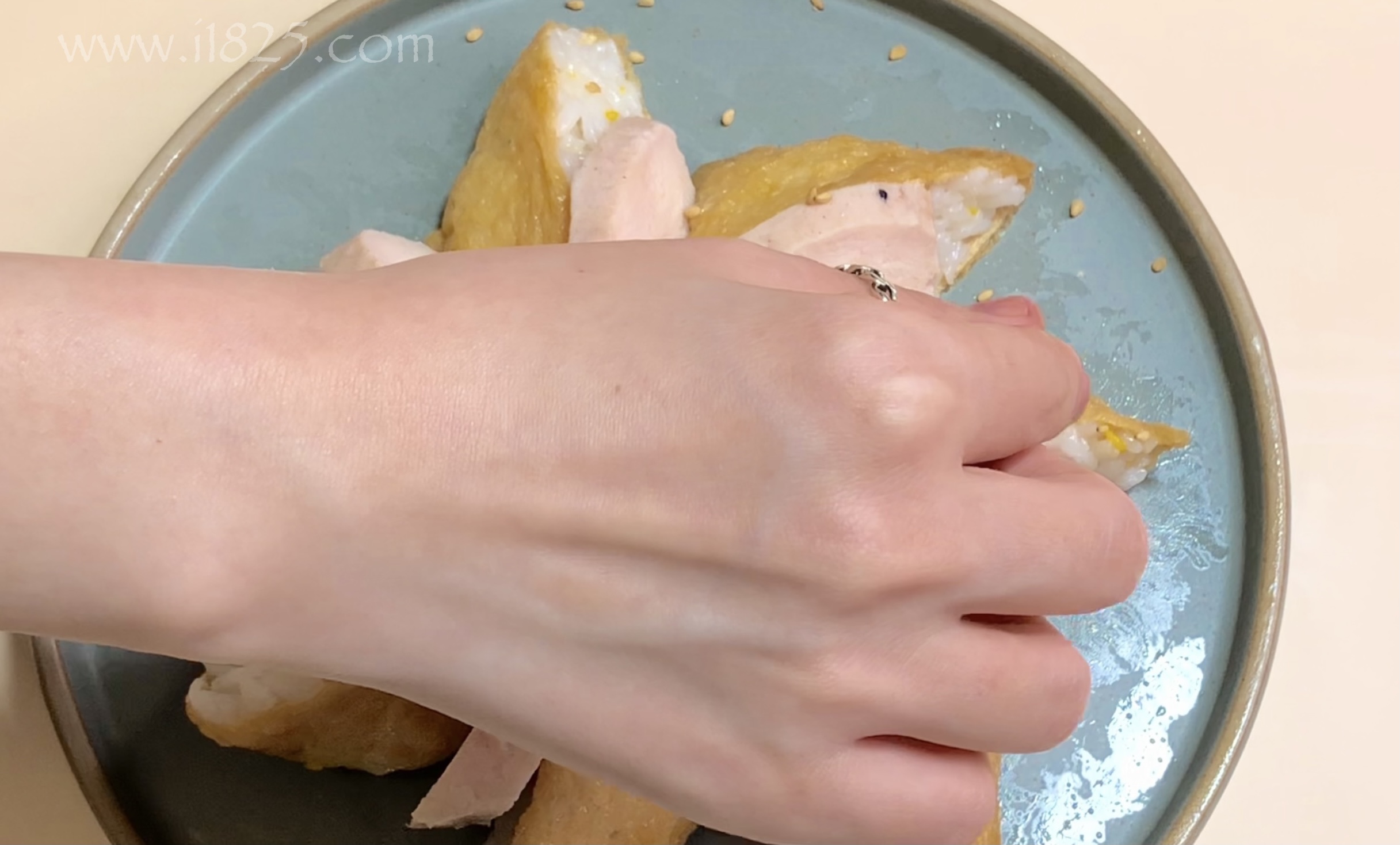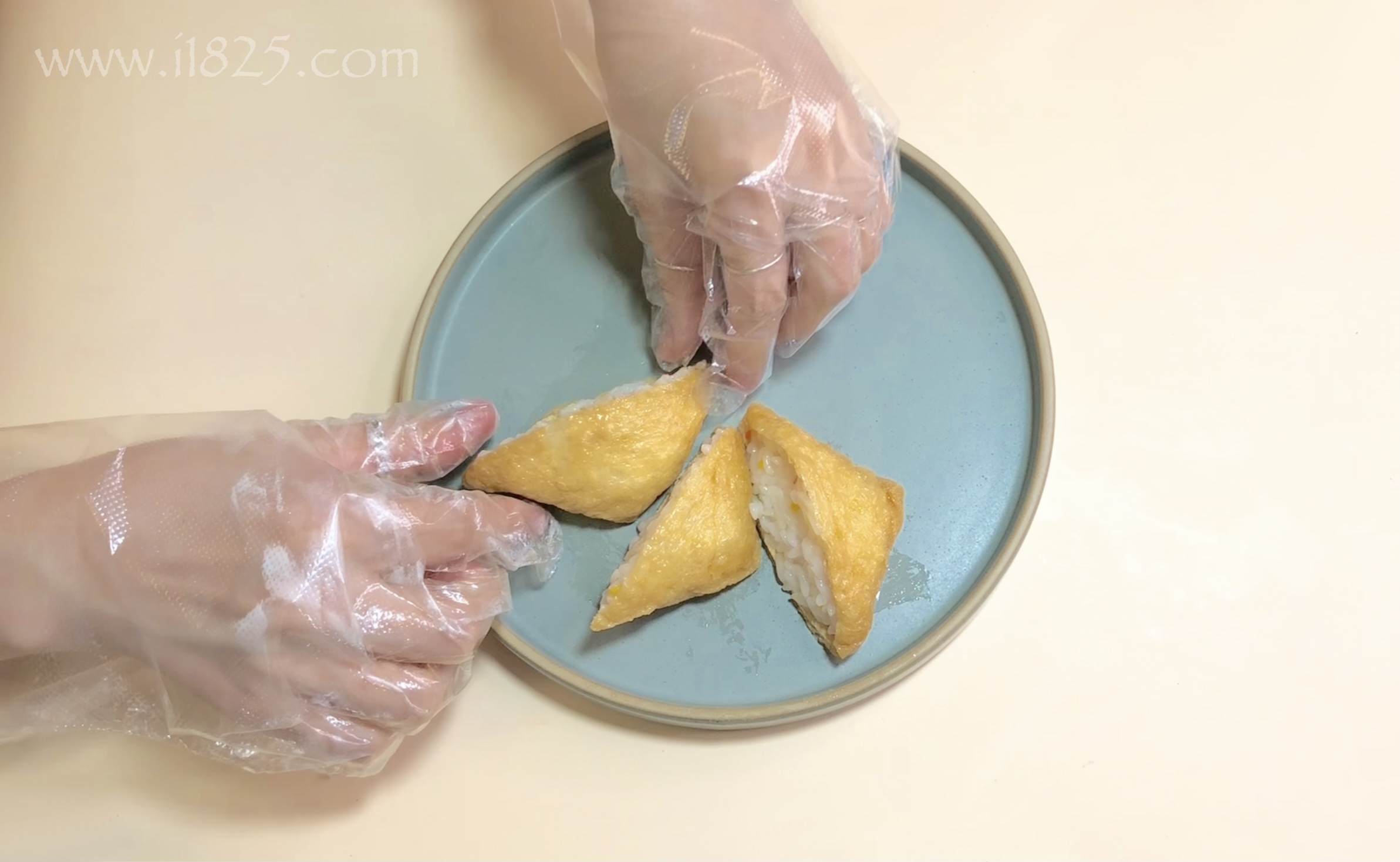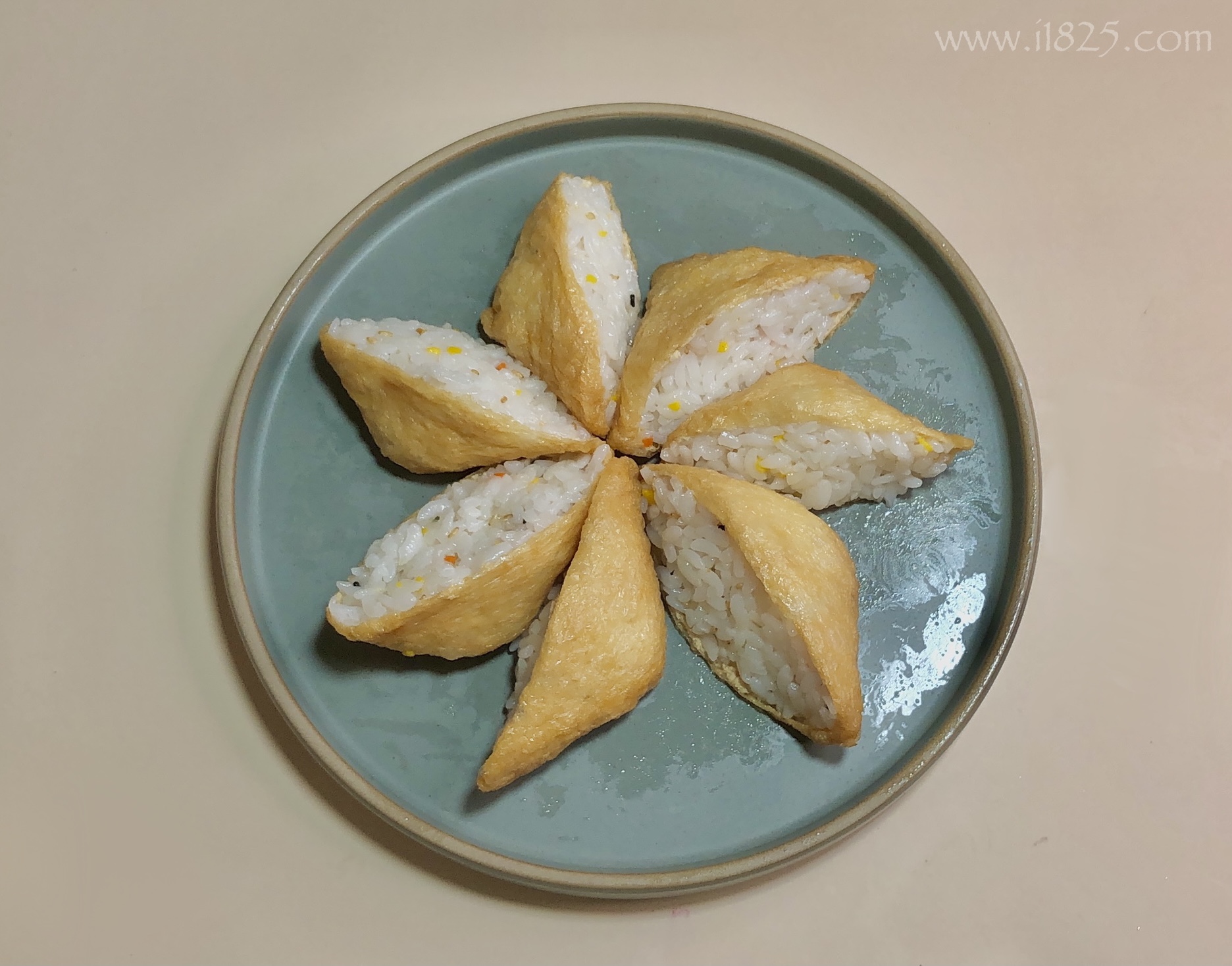 완성된 유부초밥을 접시에 담아줄께요.