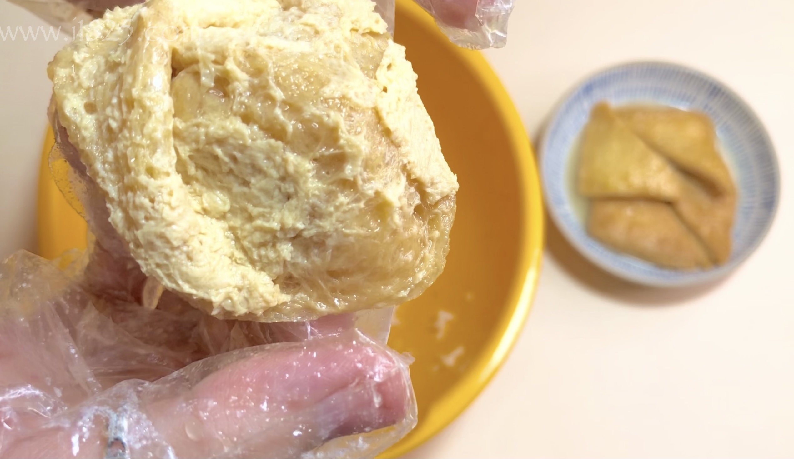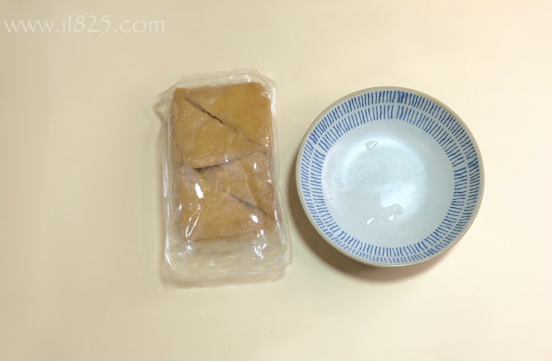 데운 유부를 개봉한 후 깊이가 있는 접시에 담아주세요.