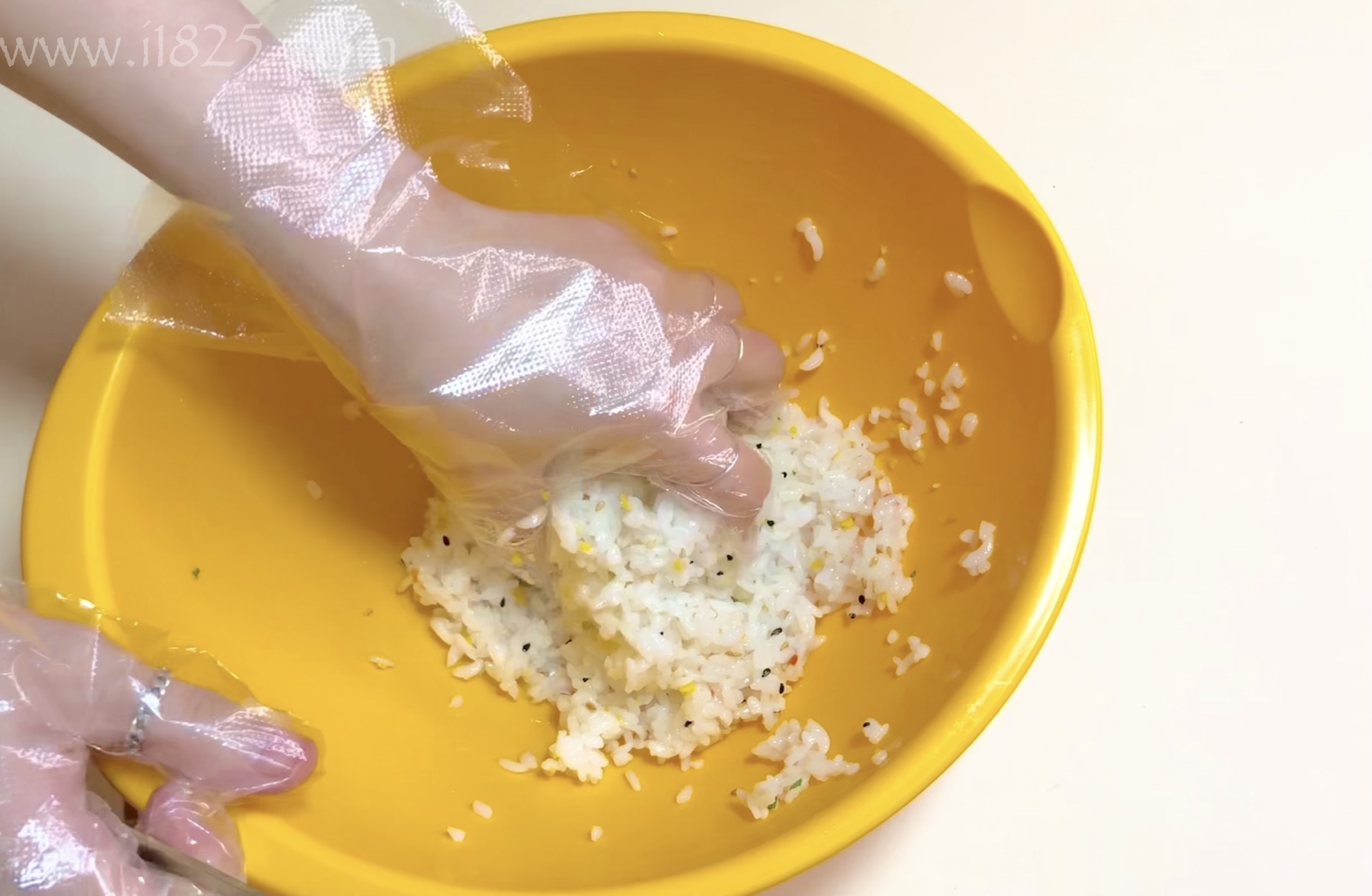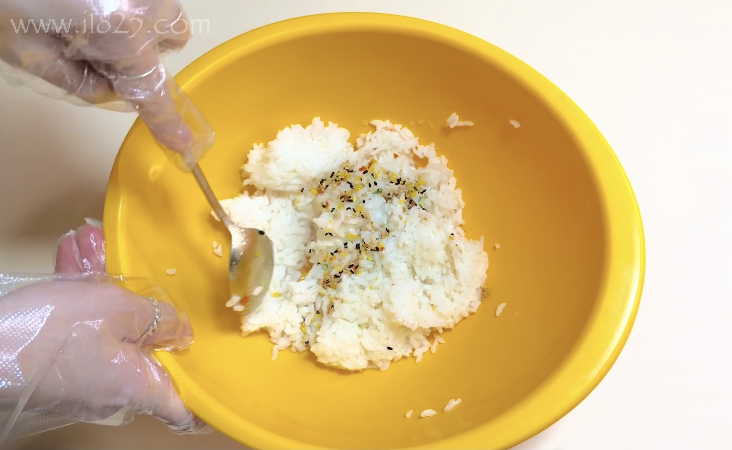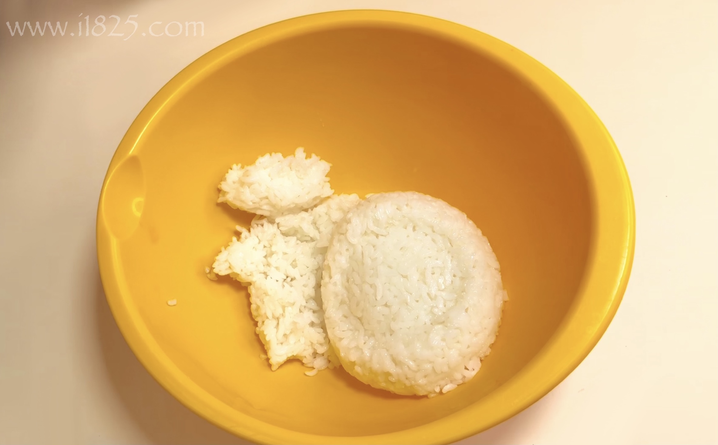 넓은 볼에 밥을 담아주세요.
