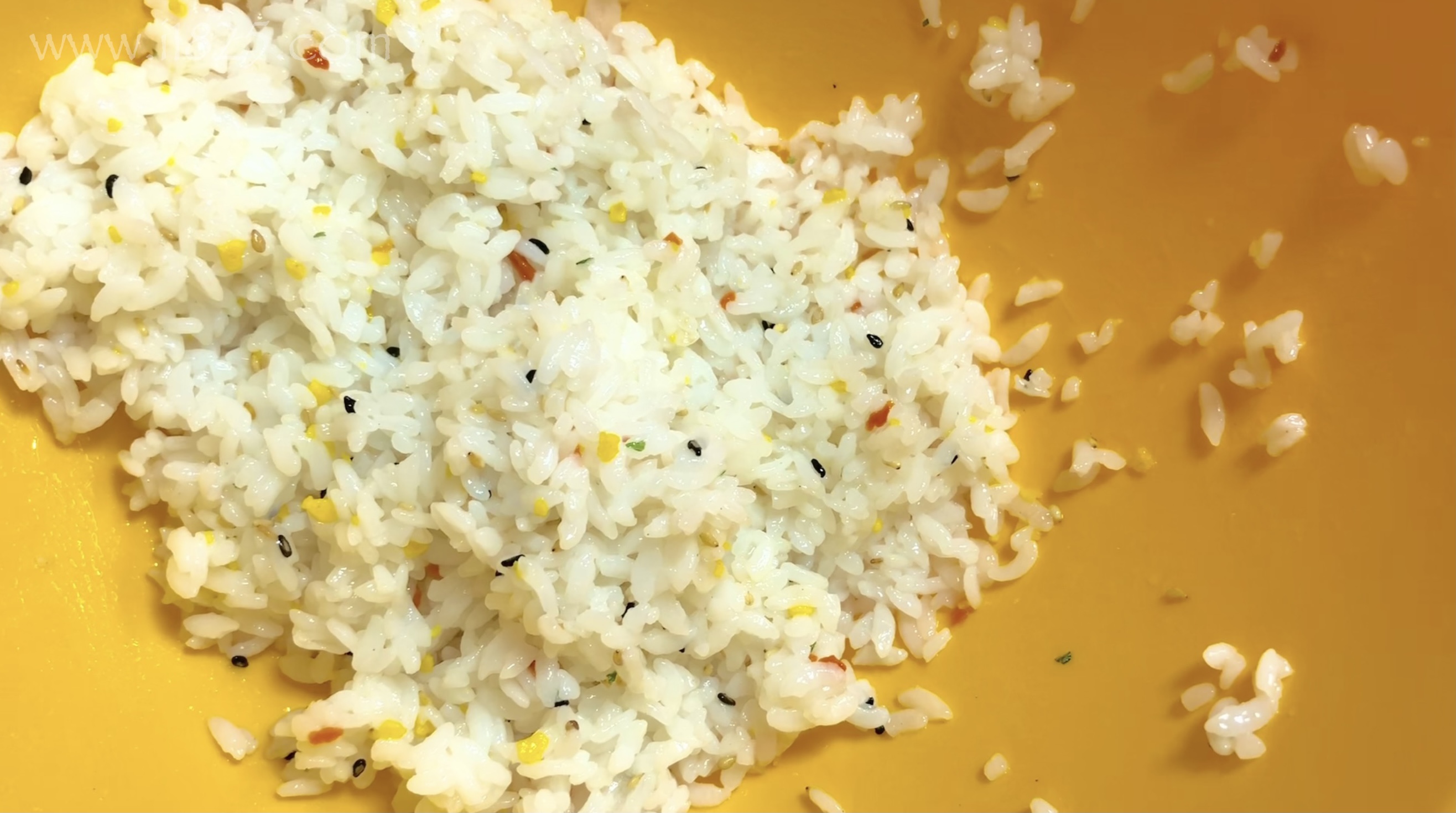 넓은 볼에 밥에 고소한 조미 볶음과 초밥 천하 짱 소스를 넣고 골고루 섞어주세요.