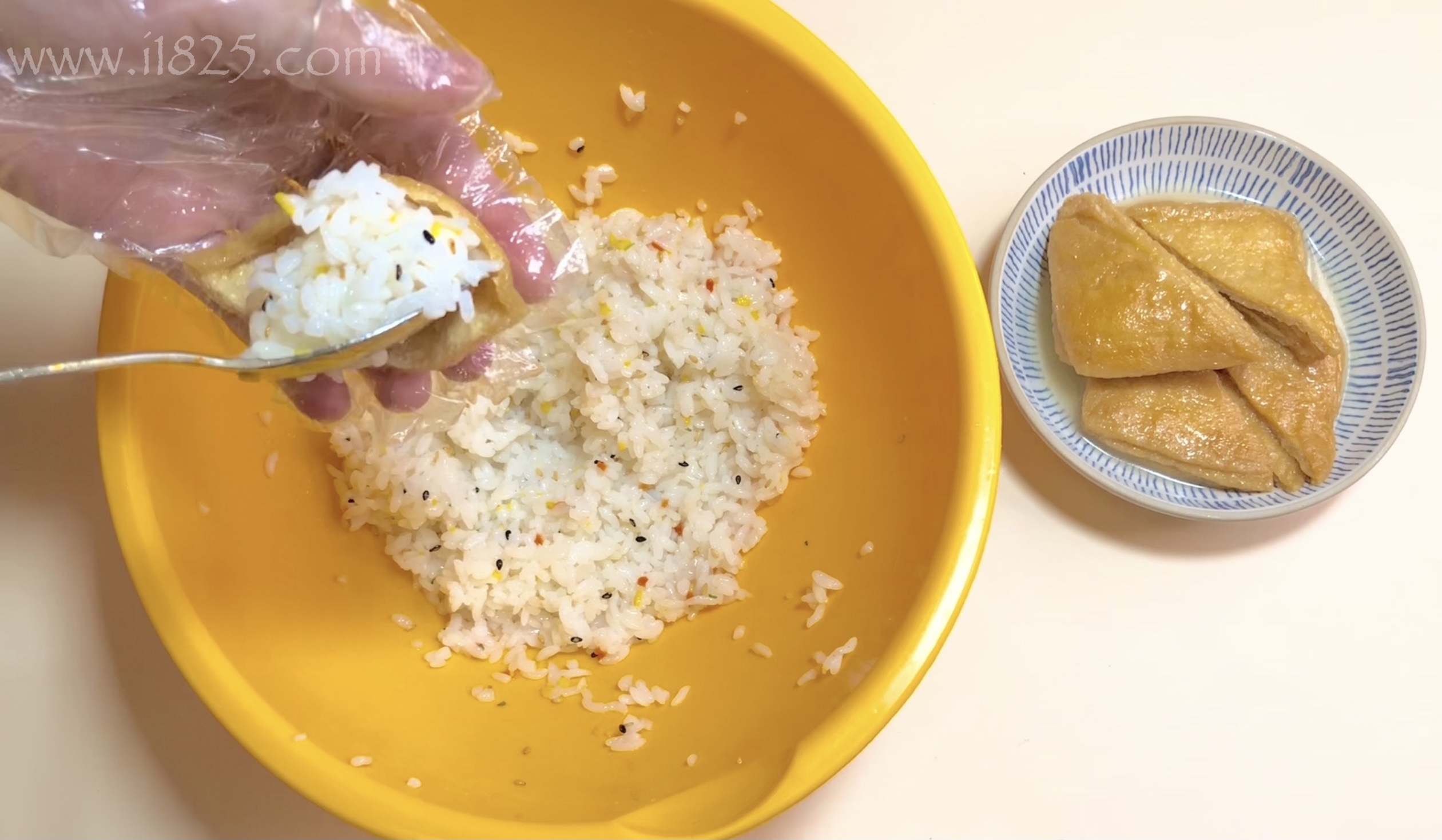 욕심부려서 너무 밥을 많이 넣으면 유부가 외관상 예쁘지 않거나 찢어질 수 있어요.
