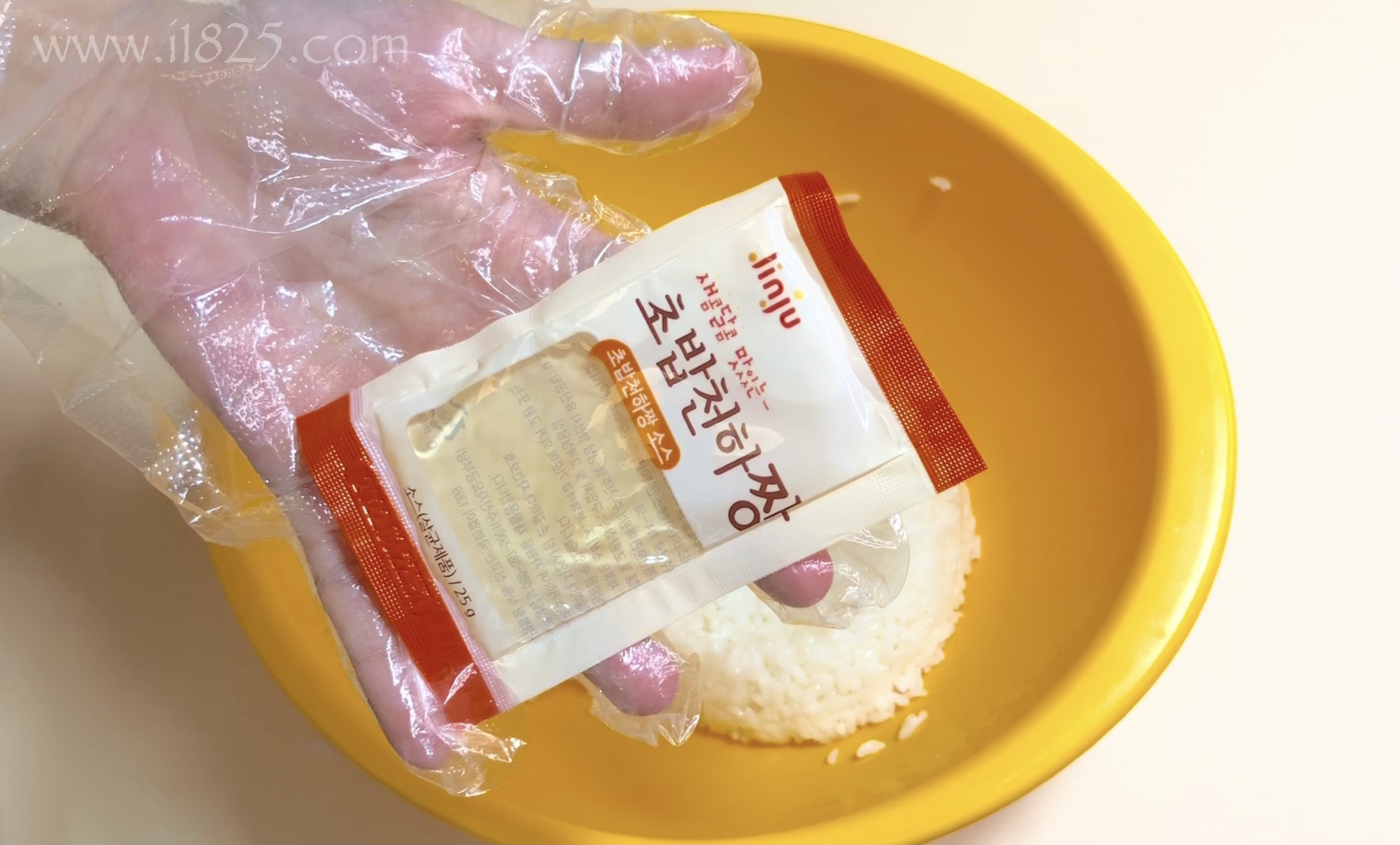 초밥천하짱 조미 볶음과 초밥천하짱 소스 두 가지를 함께 넣어주세요.