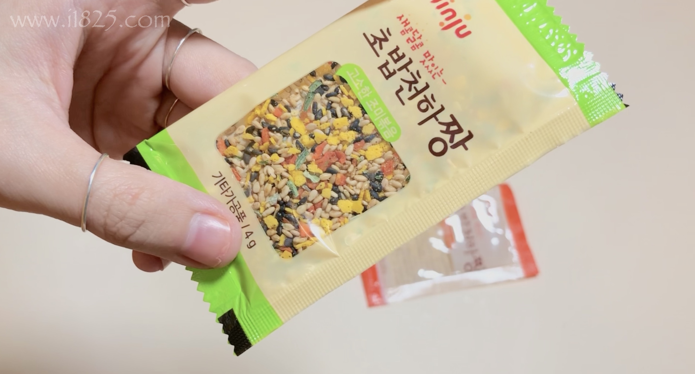 초밥천하짱 조미 볶음과 초밥천하짱 소스 두 가지를 함께 넣어주세요.