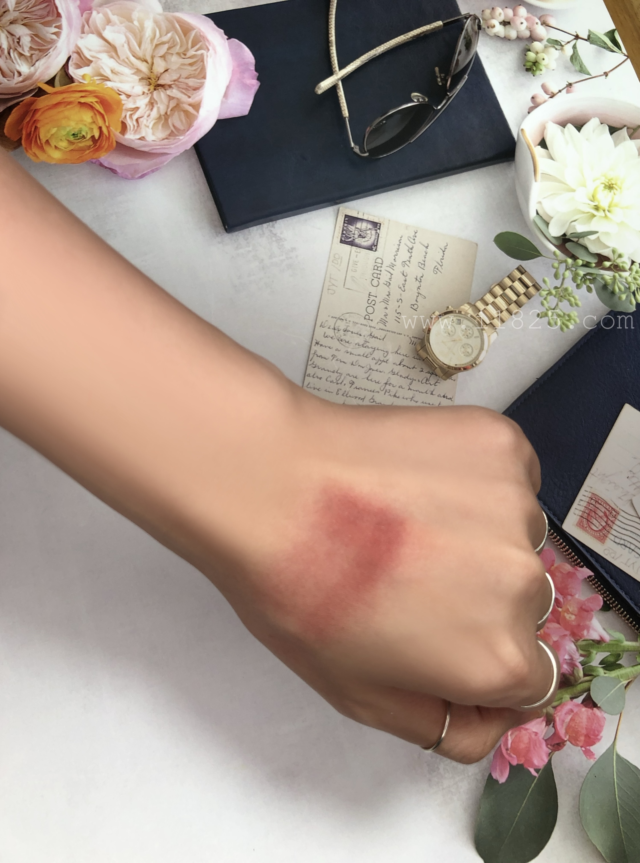 손등에서 딱 보일듯말듯 한 그 부분이 실제 발색이라고 보시면 돼요!!