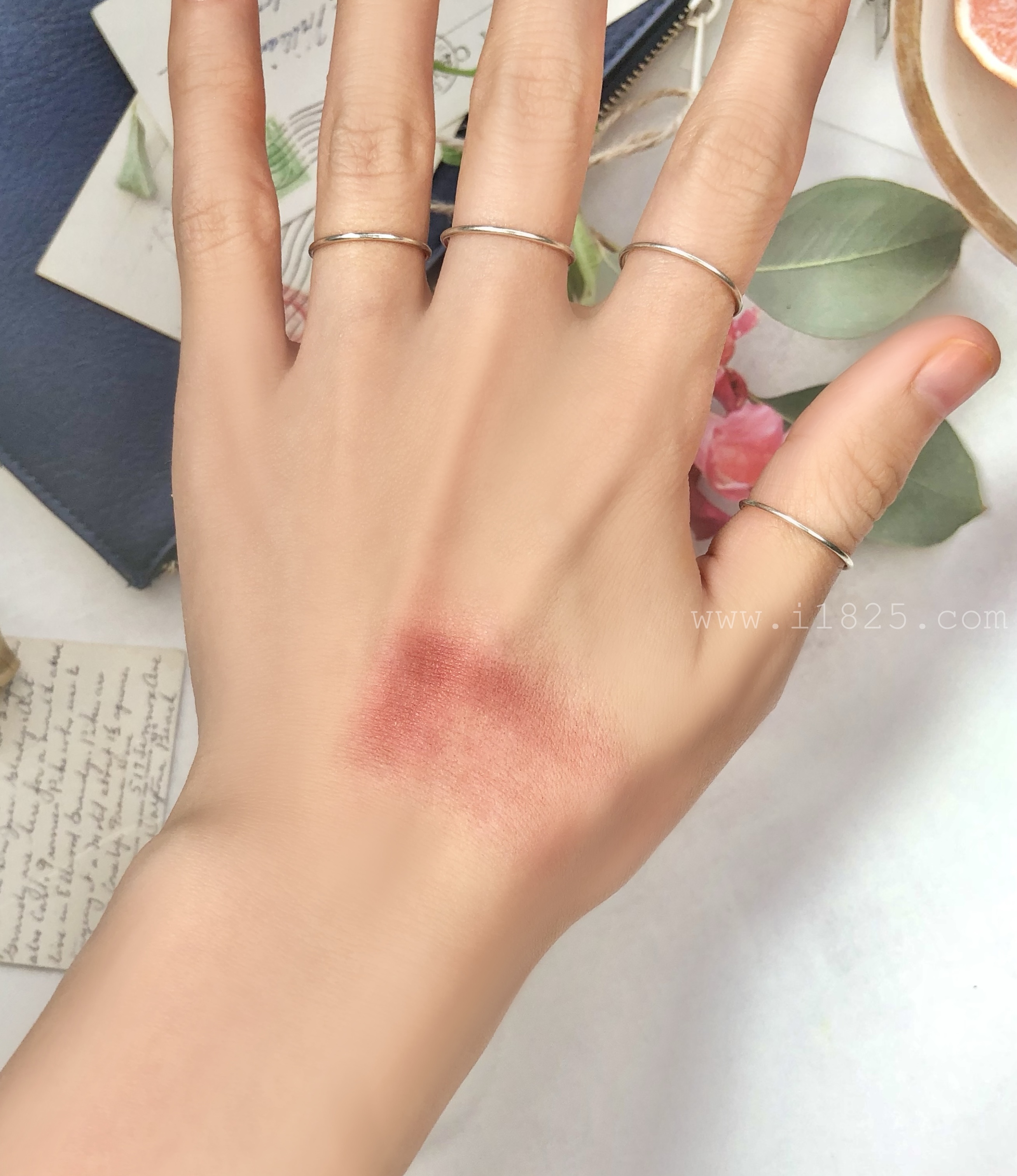 블러셔를 털어내지 않은 그대로를 가져다 올렸기때문에 그 중에 가장 연한 면적이라도 실제 발색보다는 조금 더 컬러감이 부각되고있어요.