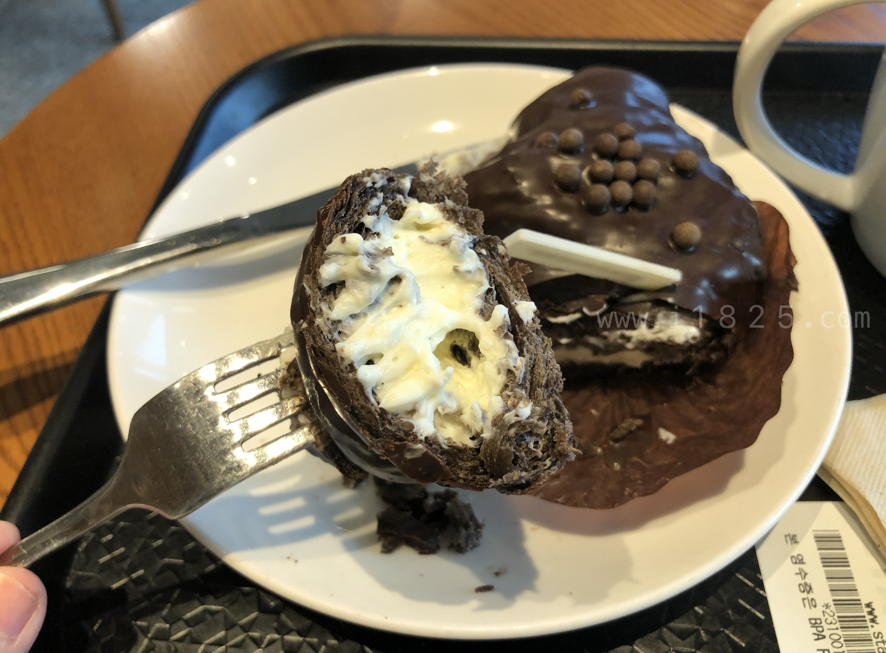 겉은 뽀각뽀각 도톰한 초코 한 겹이 달달함을, 속은 부드러운 화이트 밀크 크림이 잔뜩 촉촉함을 무장하여 환상적인 달달촉촉을 경험할 수 있는 스타벅스의 디저트 메뉴,