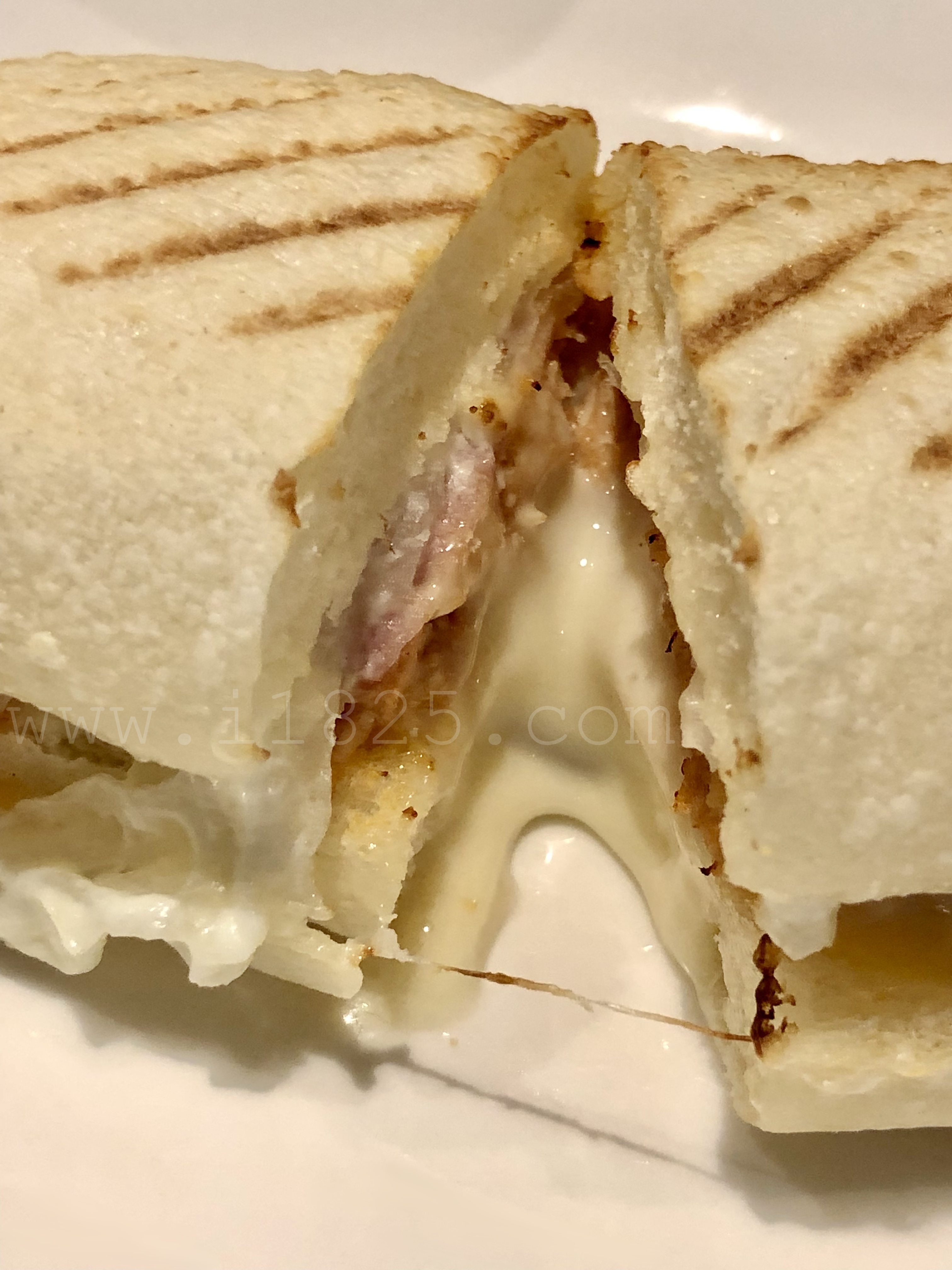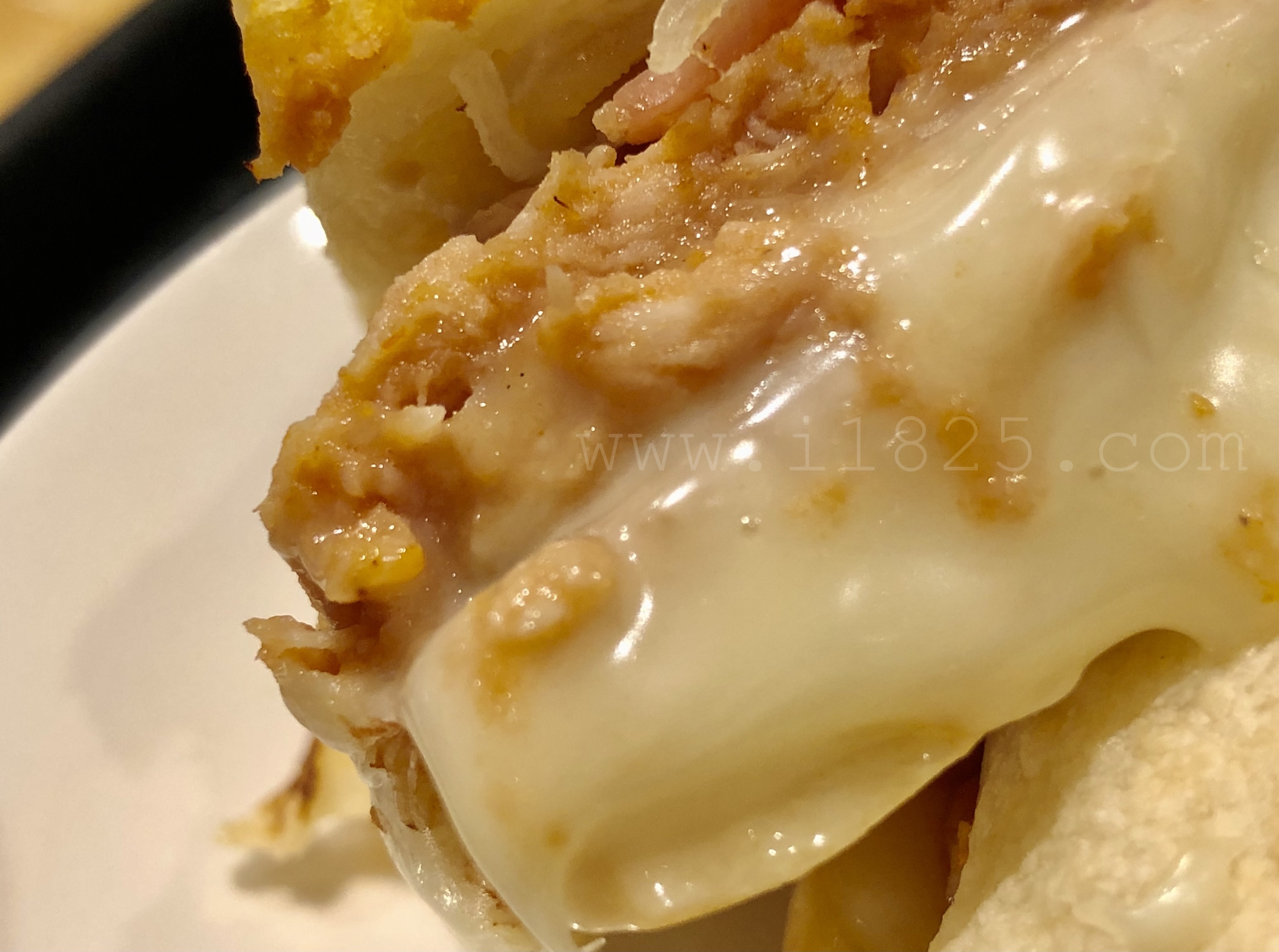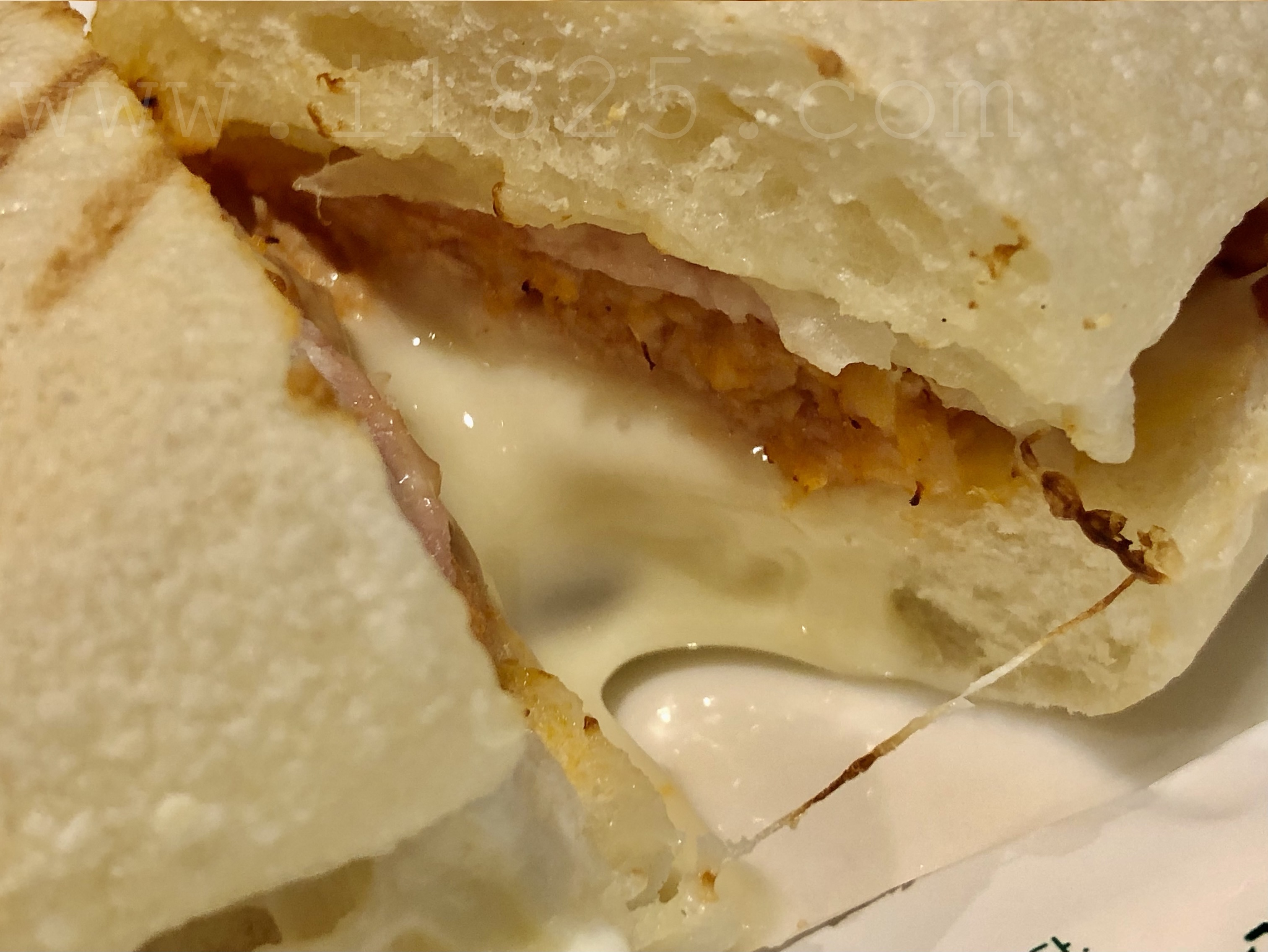 반대쪽 빵에는 하얀 소스가 묻어있습니다.