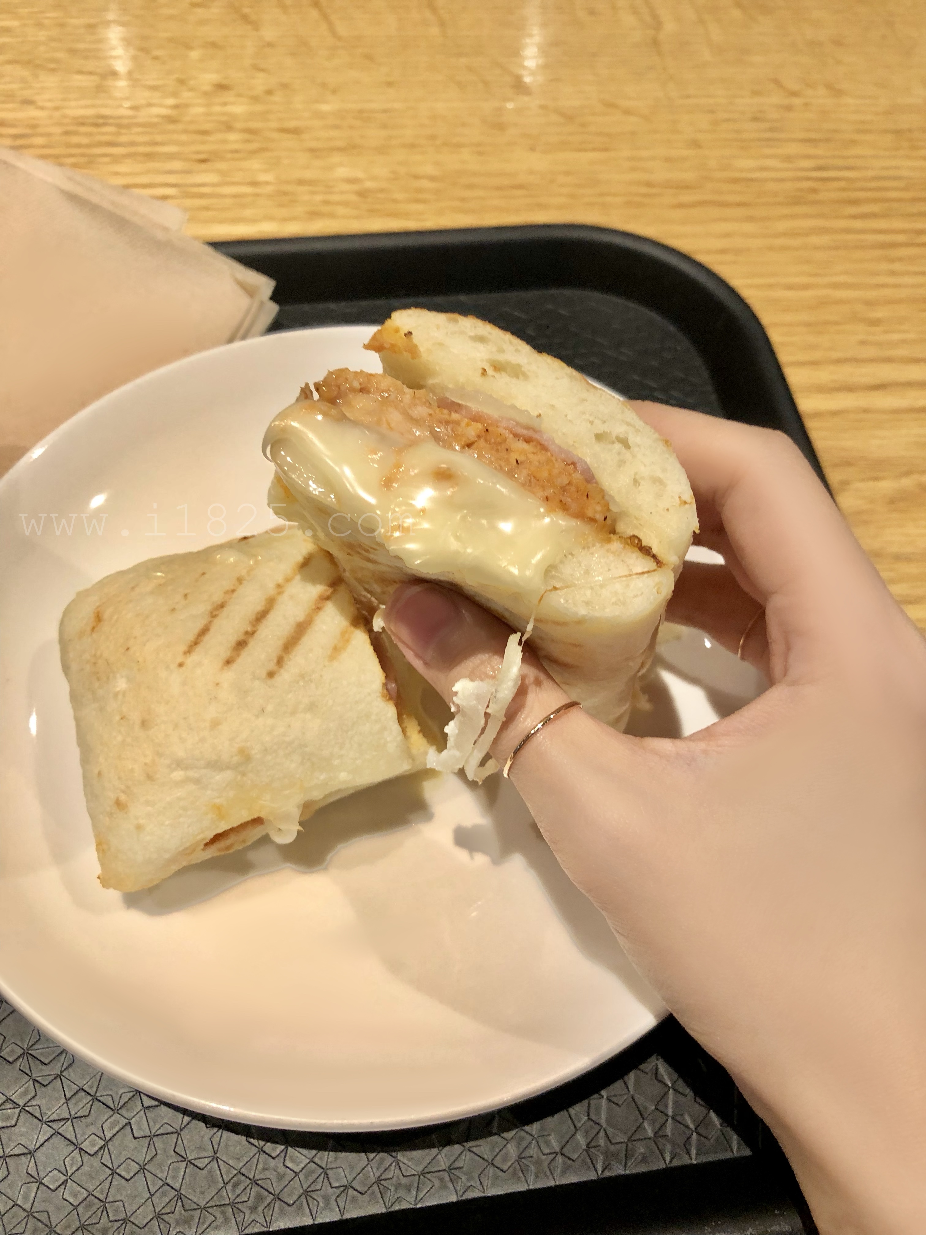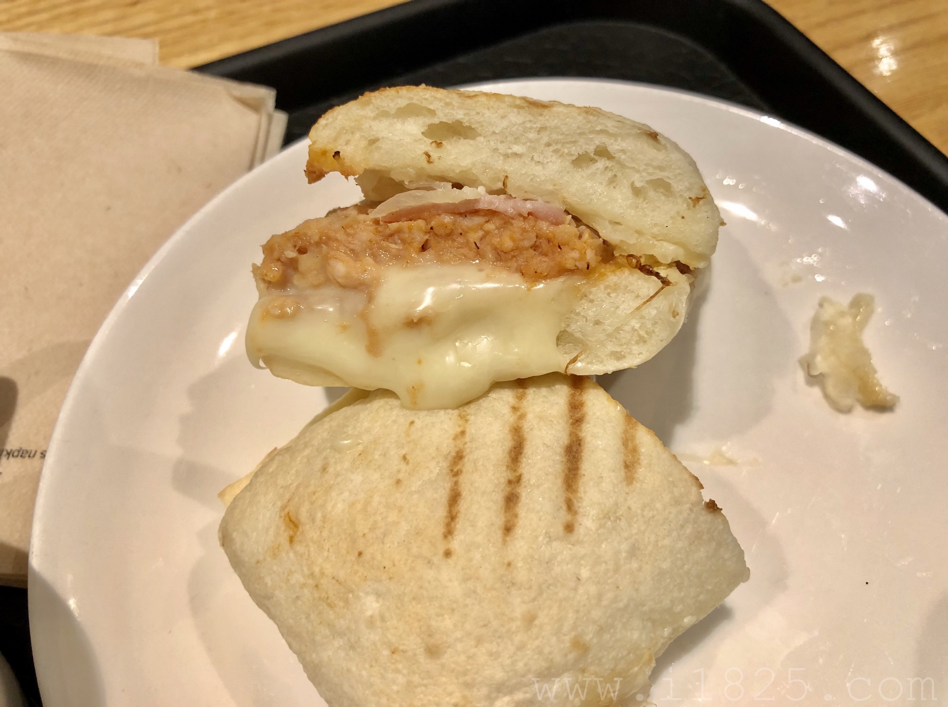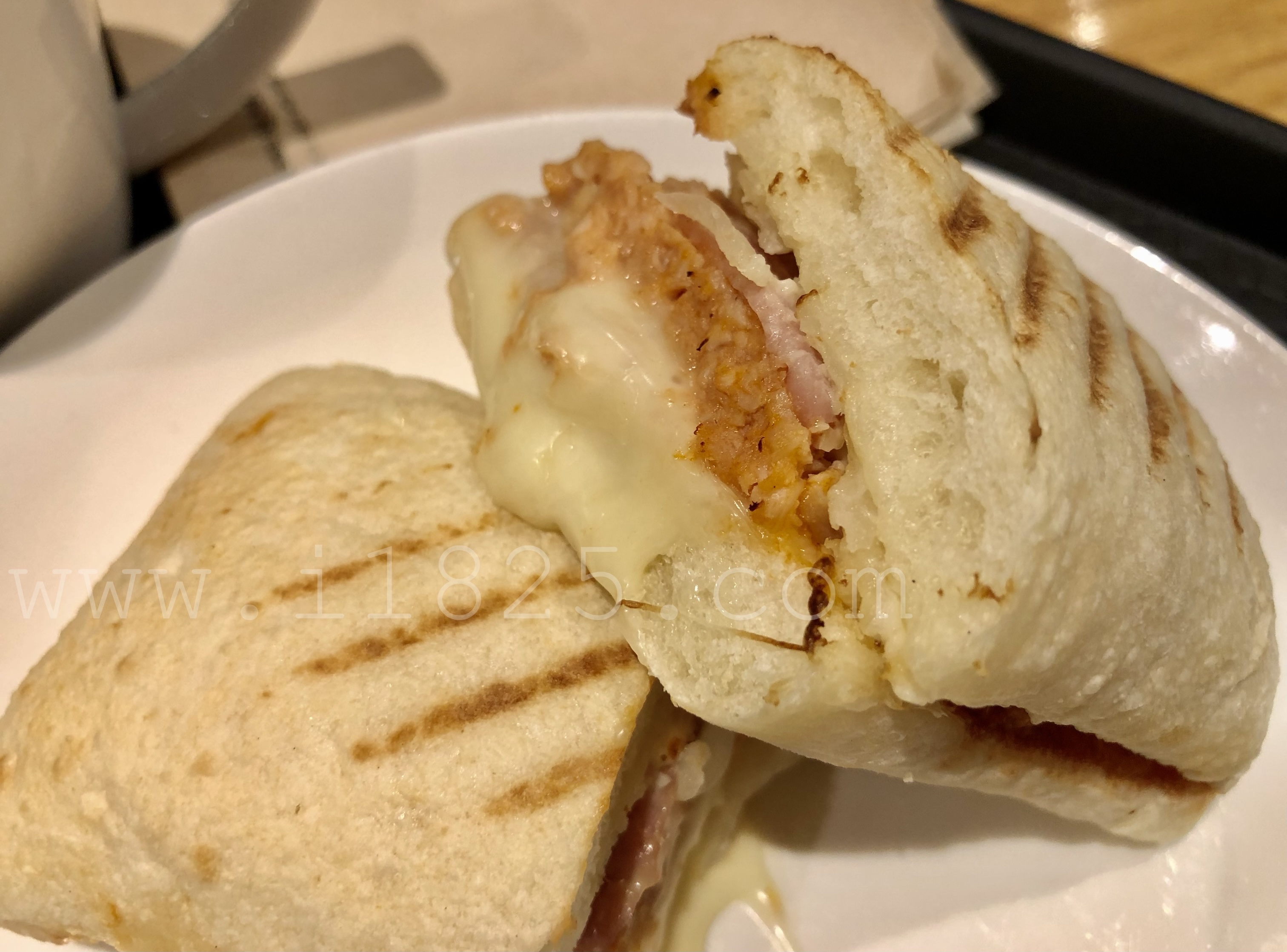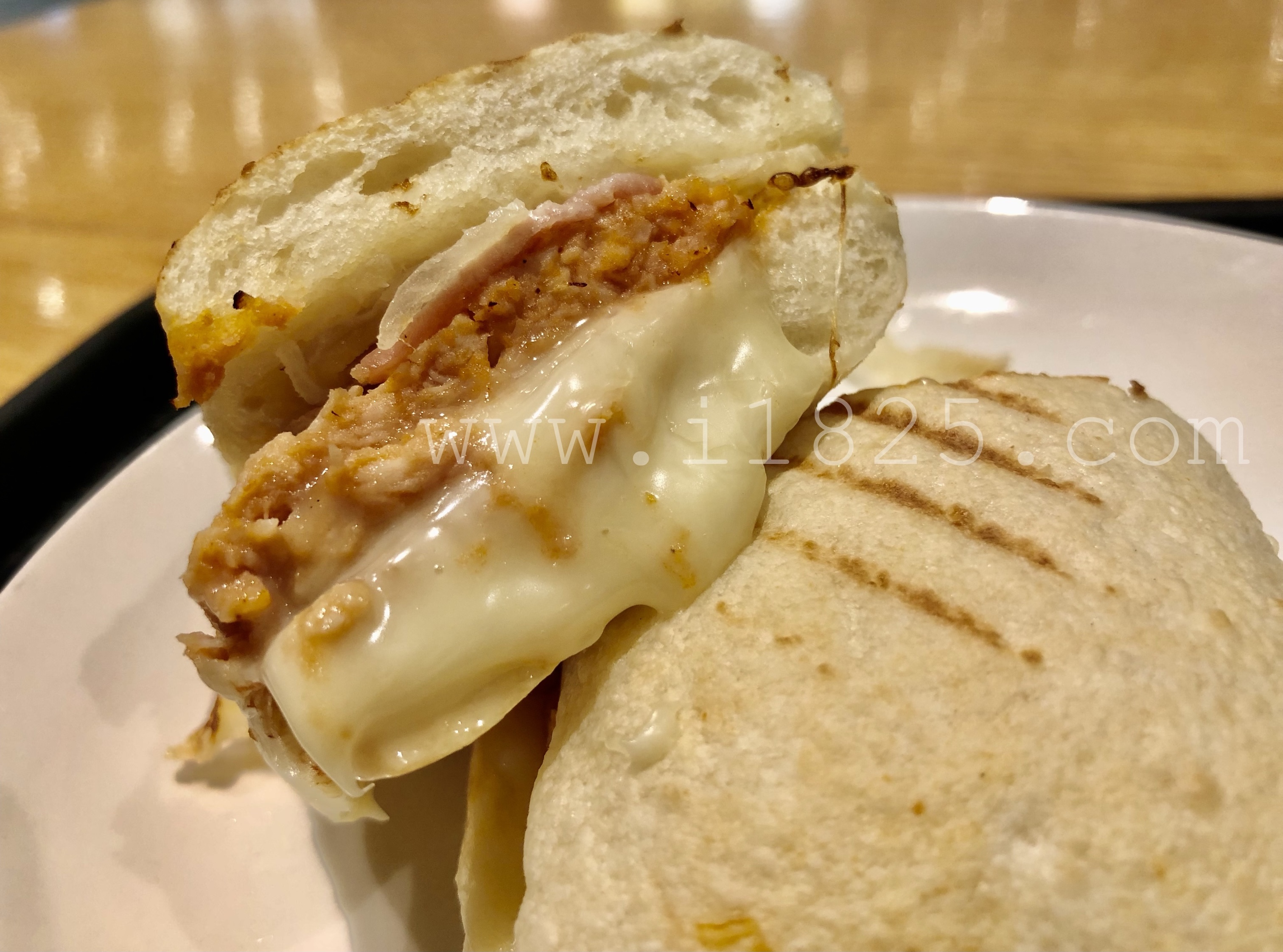 또 짭짤하게 쫀득한 치킨 베이컨 치즈 샌드위치입니다.