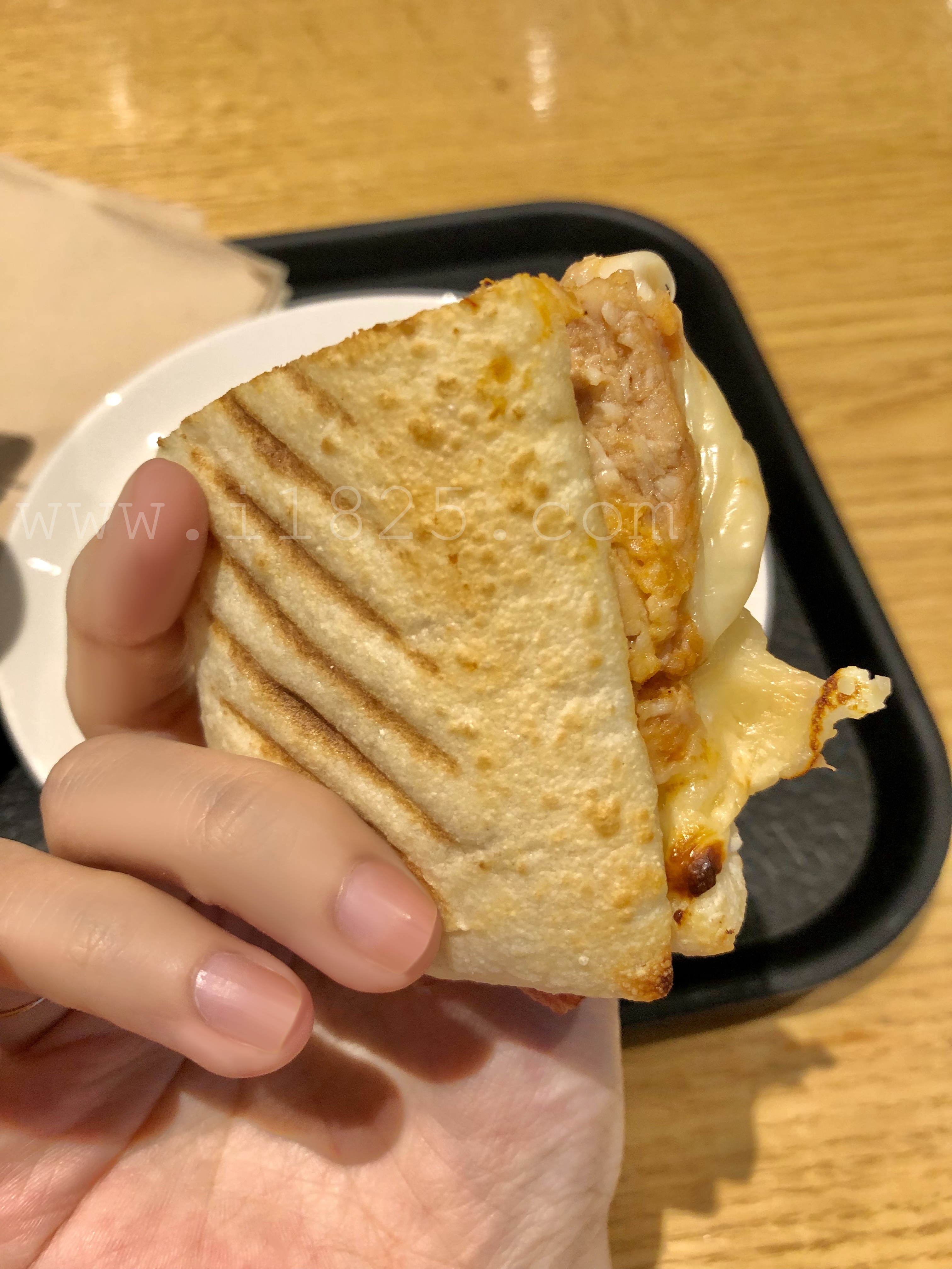 또 짭짤하게 쫀득한 치킨 베이컨 치즈 샌드위치입니다.