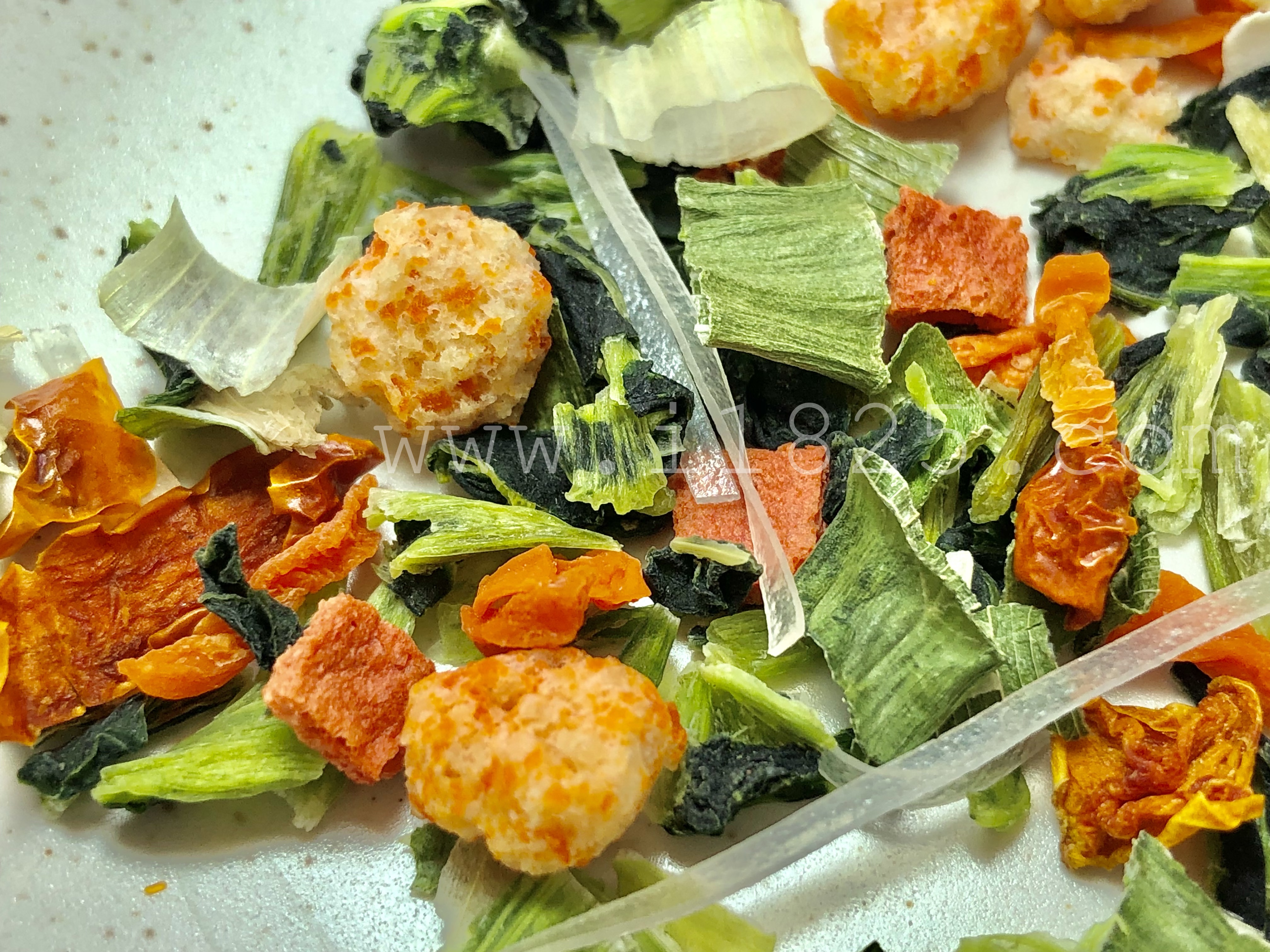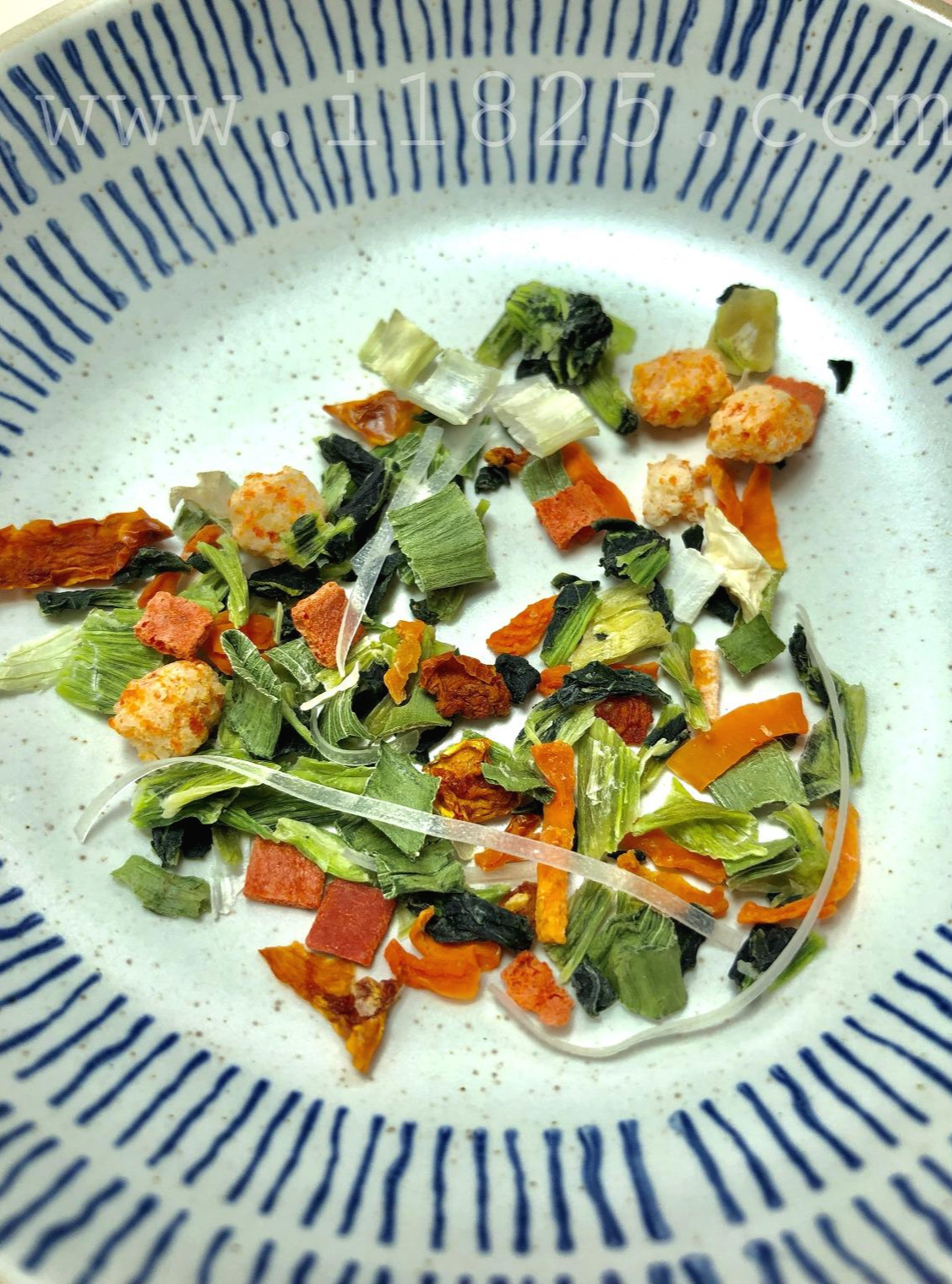 건조된 야채 토핑으론 대파, 홍고추, 당근 등등 꽤 적지 않은 양의 건조야채 스프가 함께 들어있어요.