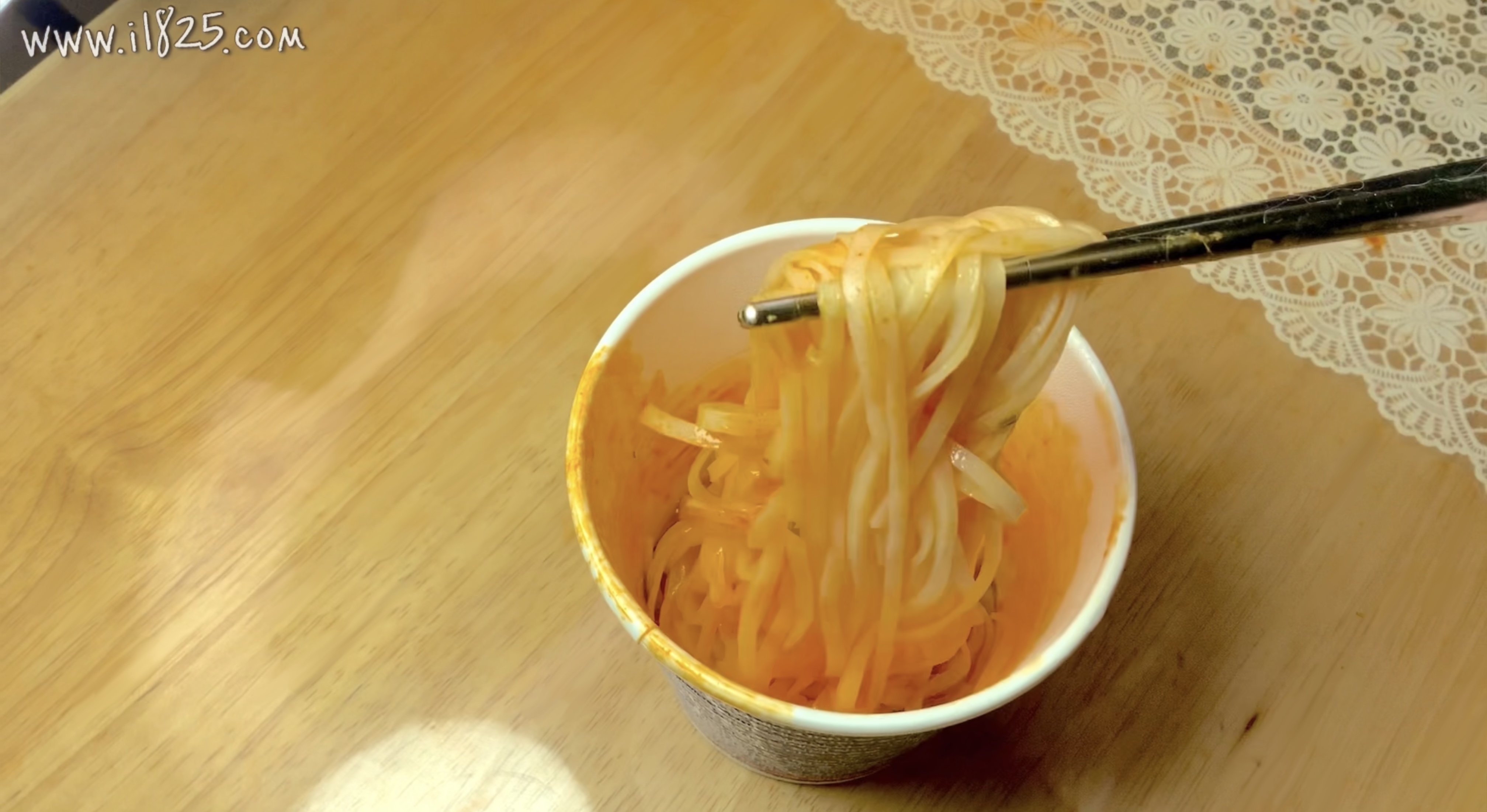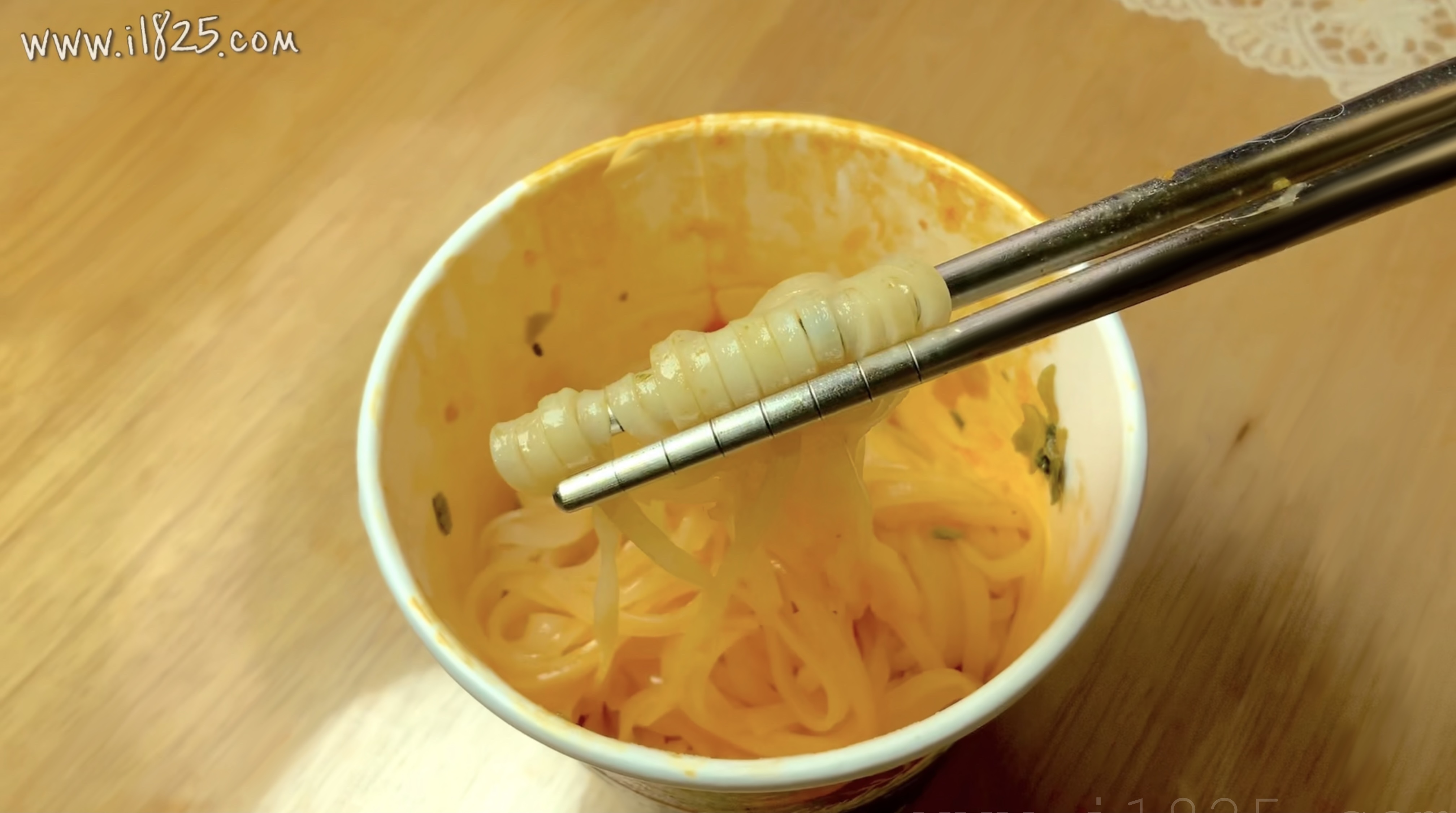 그래도 컵누들이 익어서 확인해본 양은 그렇게 한 입거리 정도는 아닌데 익히기 전 상태의 컵누들 사리는 이렇게 여리여리하군요.
