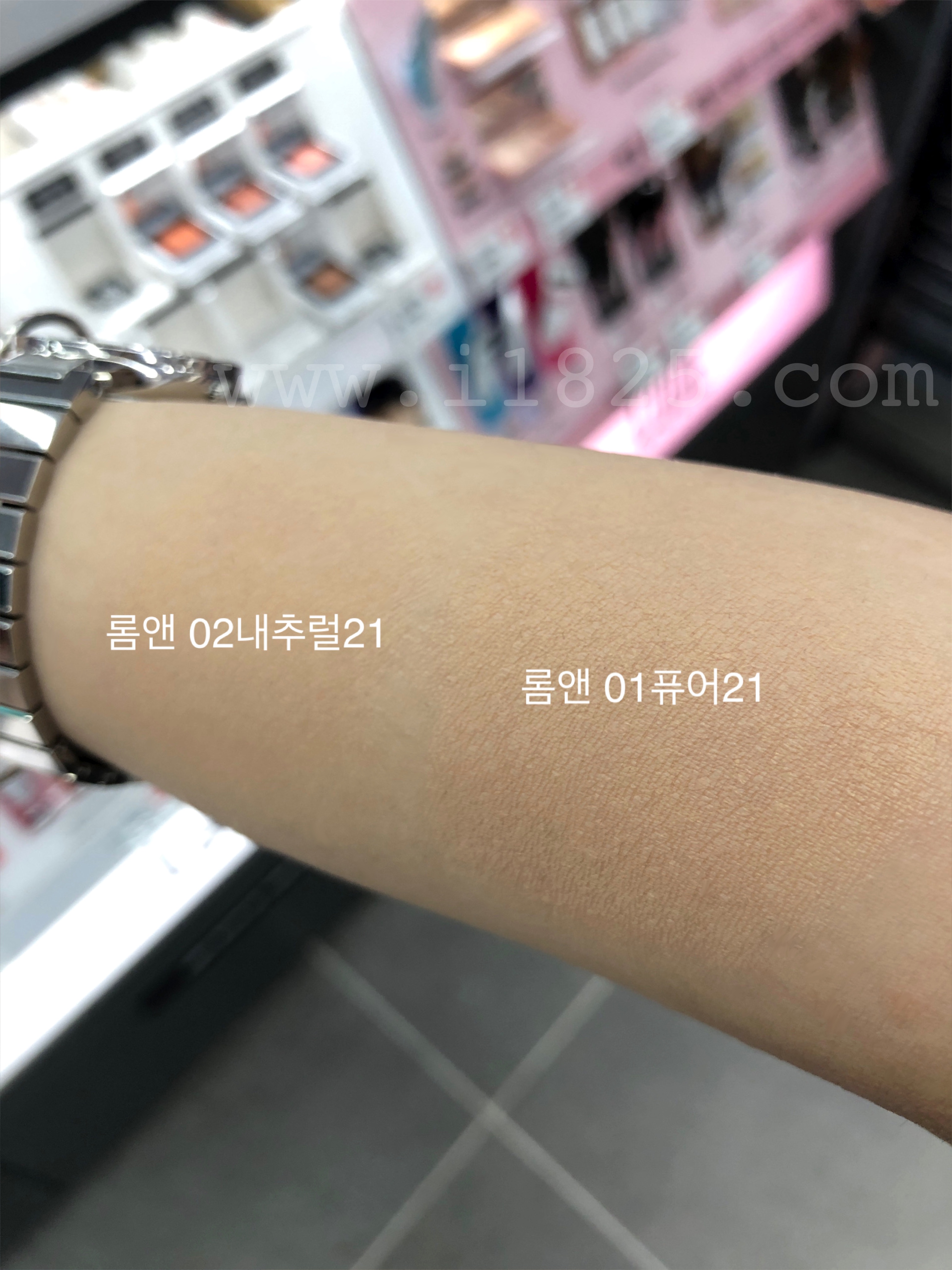 위의 사진 속 발색은 02 netural 21과 01 pure 21임에도 팔뚝 발색이 어두워요!!
