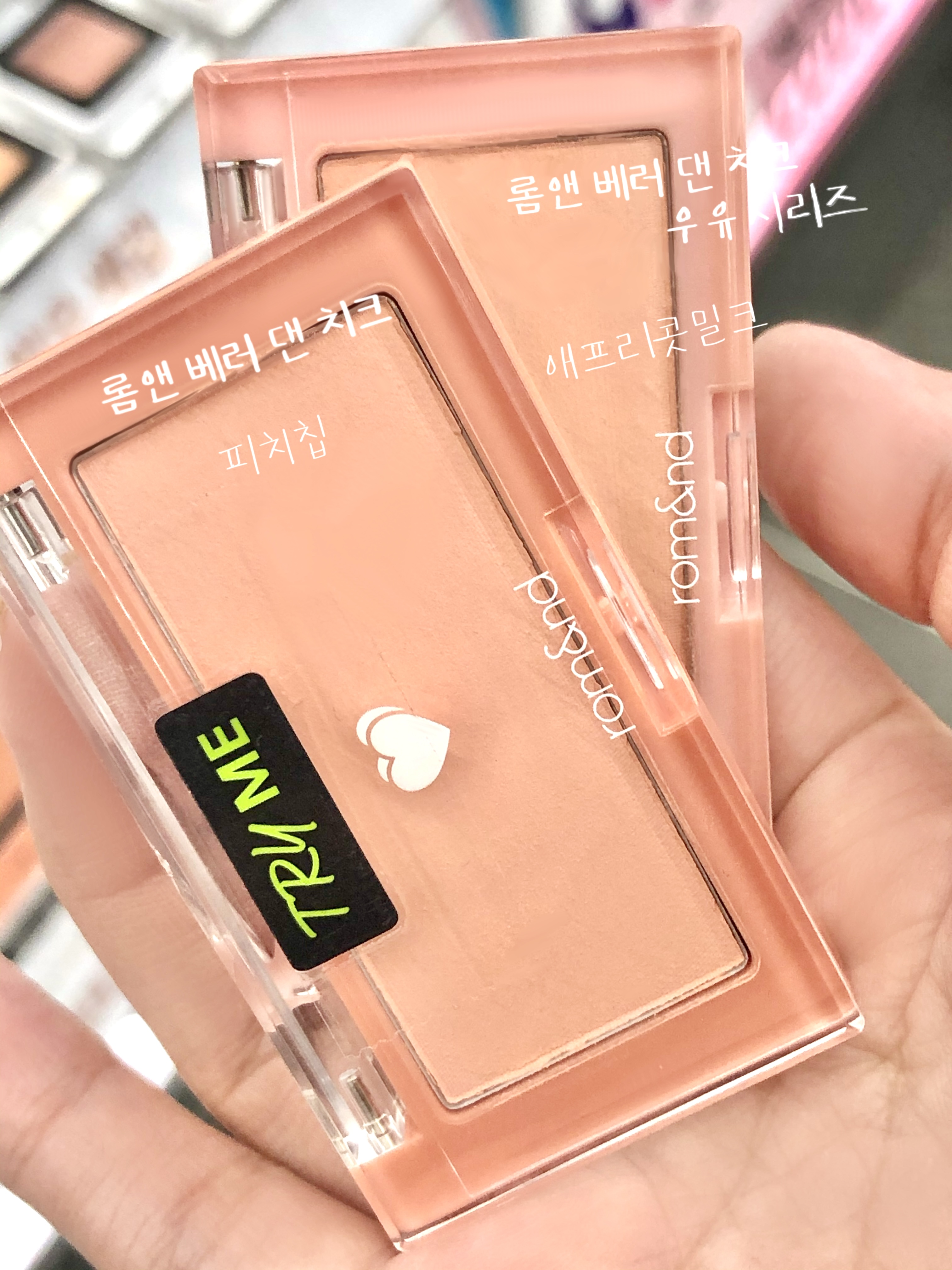 특히 얼굴에 발색하면 더욱더 핑크 기와 살짝 붉은 기가 더욱 심해지기 때문에 쿨톤도 함께 쓸 수 있는 피치칩 또는 애프리콧 밀크와는 조금 달라요ㅠ 때문에 반드시 오프라인 매장에서 발색을 직접 해보시는 것을 추천합니다.