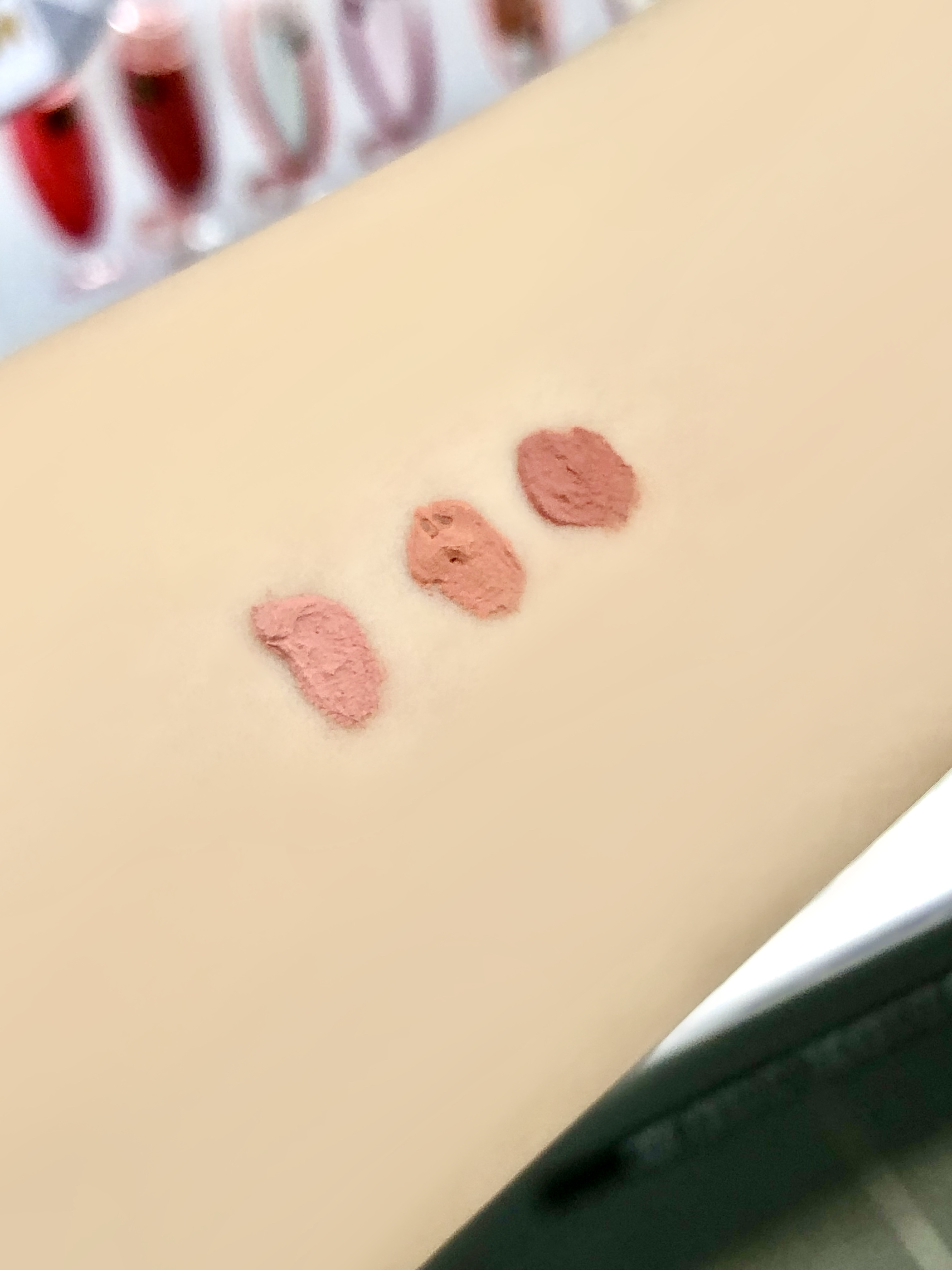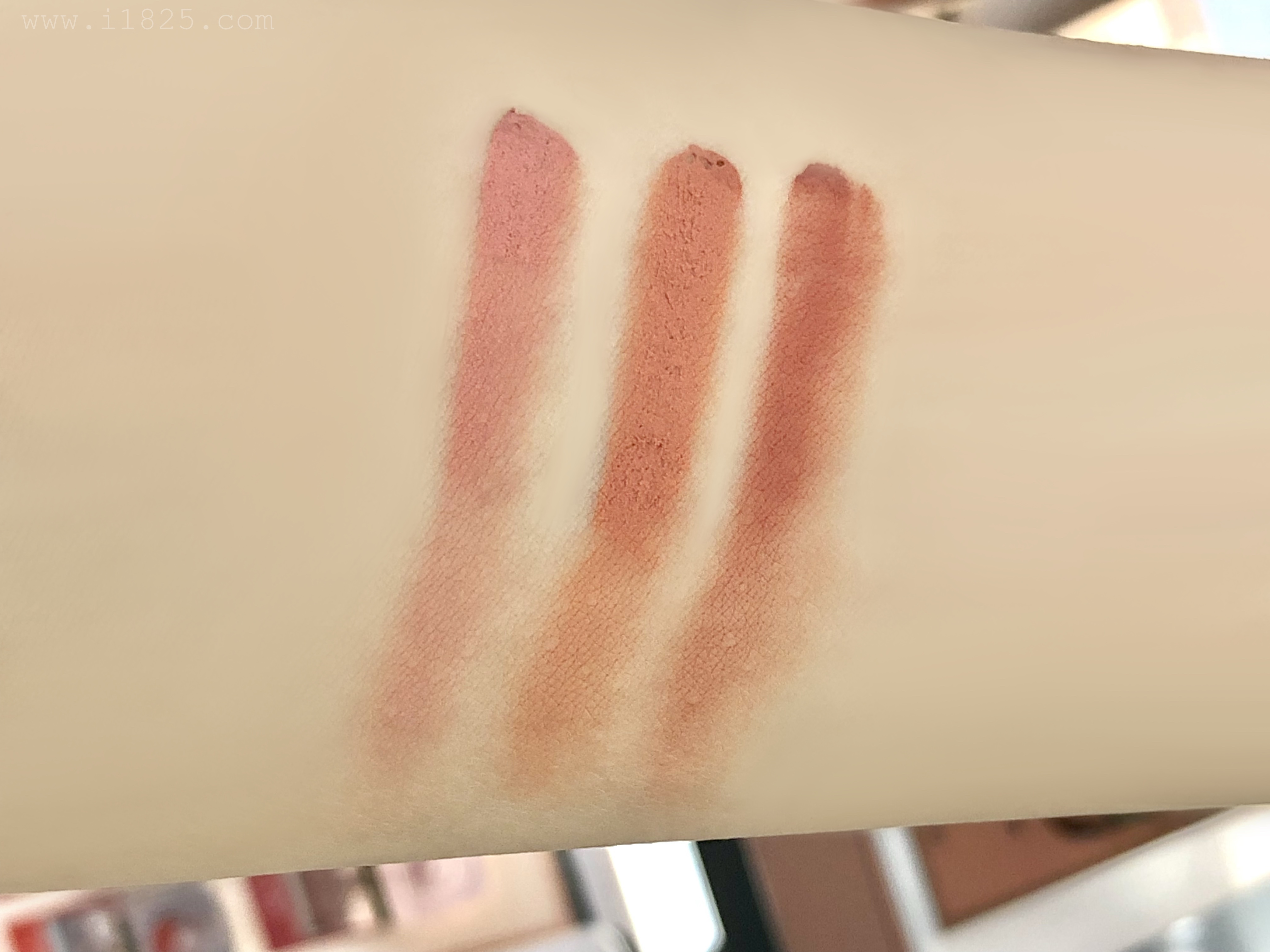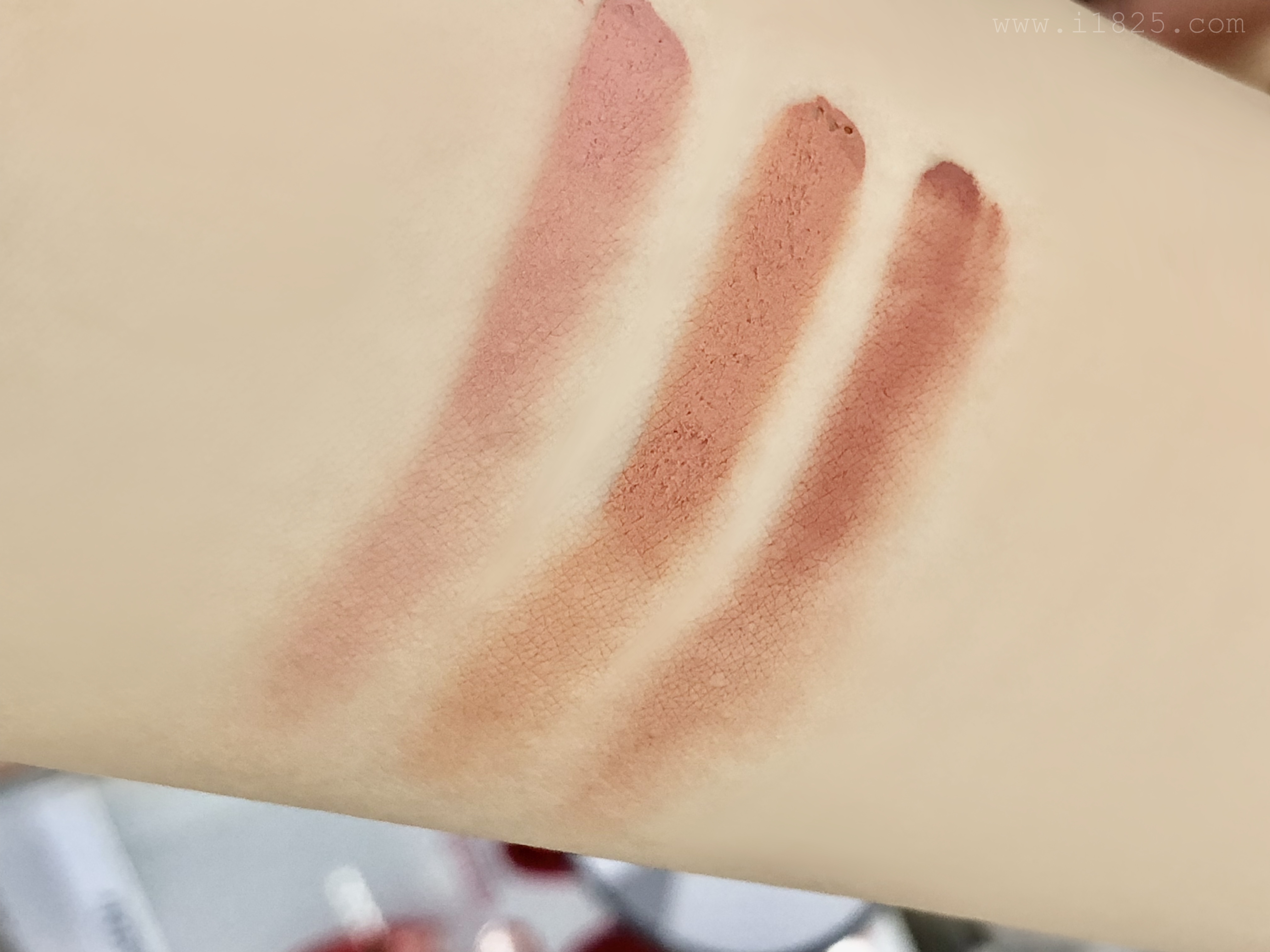 두 가지 신상 컬러를 제외한 첫 세 가지 컬러의 발색을 확인해보면 확실히 붉다는 것이 보이시나요??