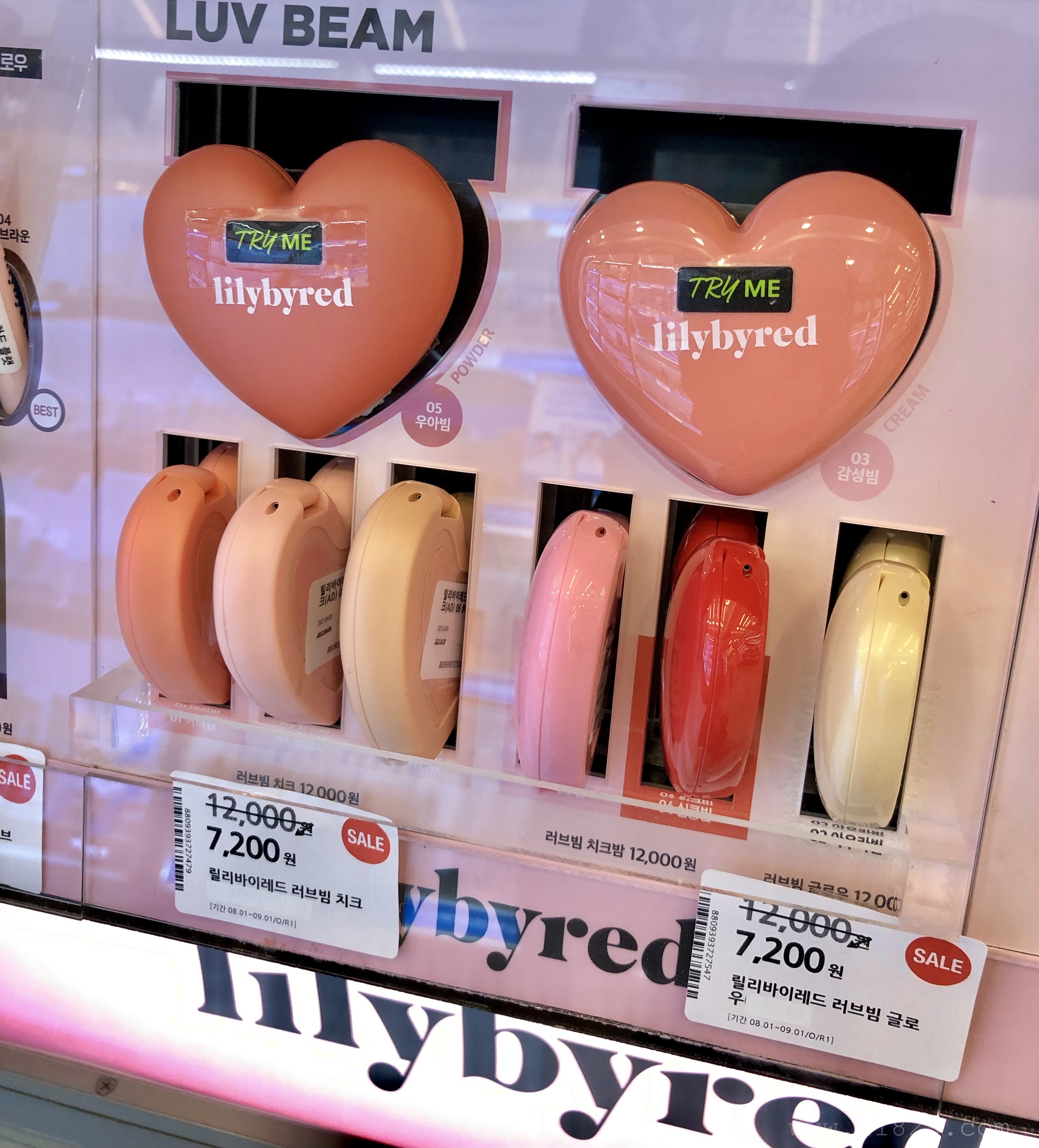 드럭스토어에 디피되어있는 릴리바이레드 전용 치크 존입니다.