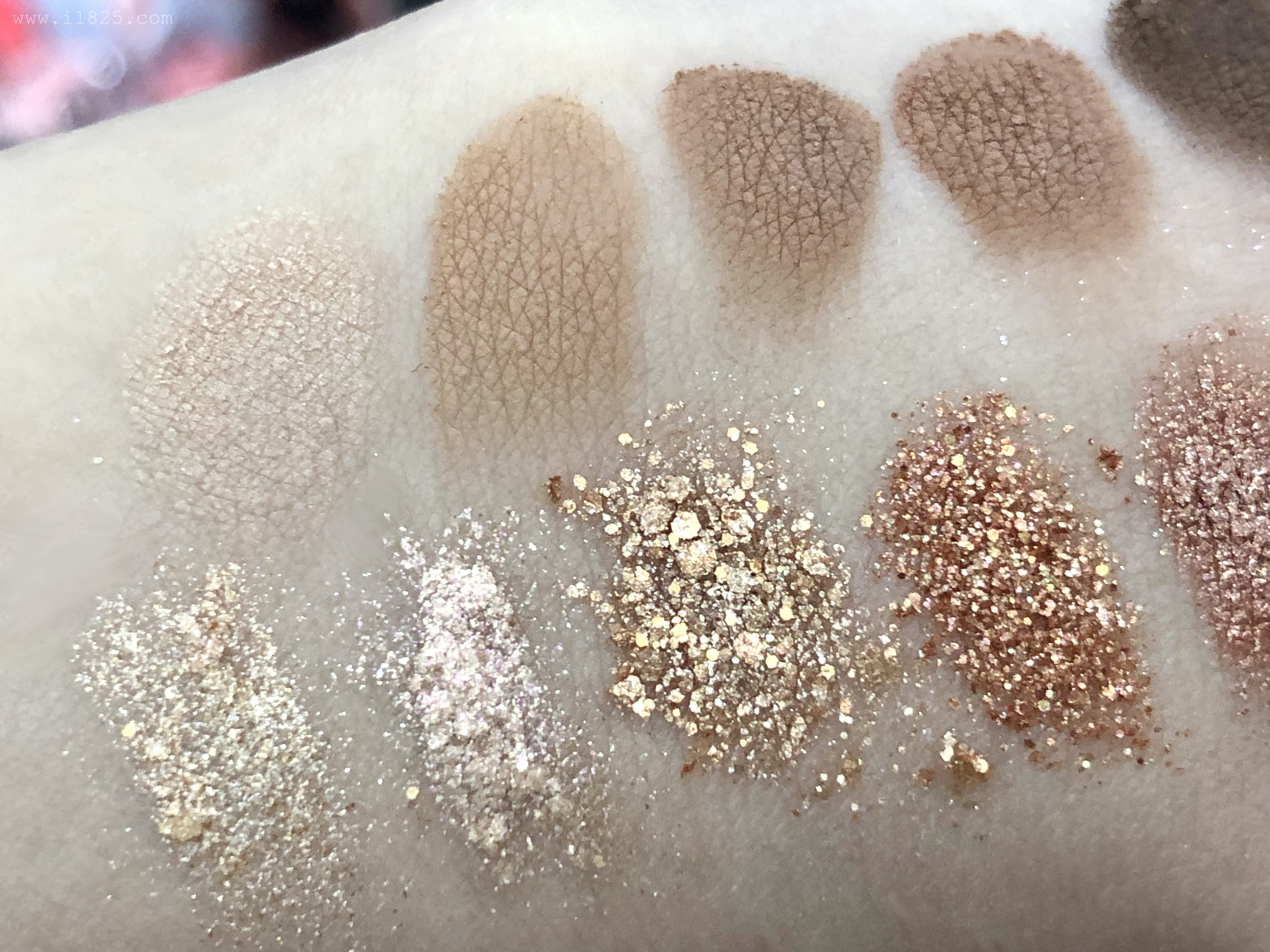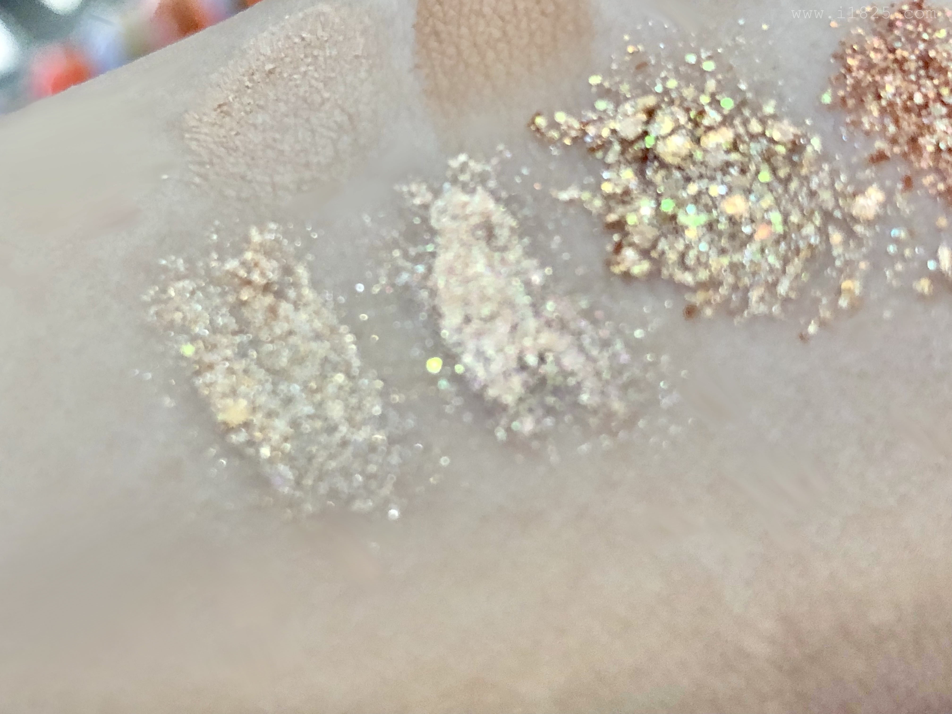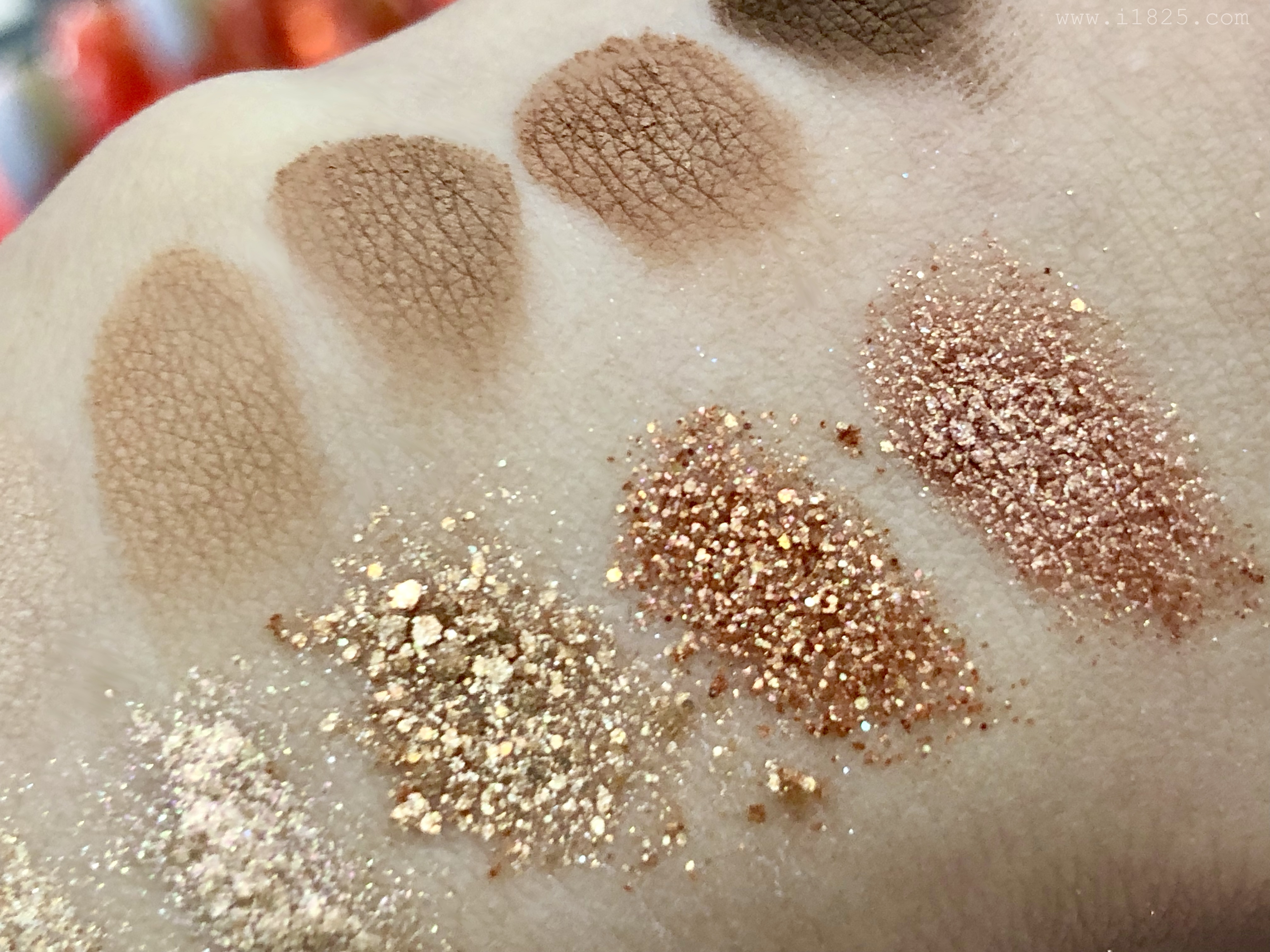 얼마전까지 유행하던 육각 대형 펄 글리터가 섞여있는 8번 섀도 골드 스피릿과 블링미 넘치는 웜톤 골드 글리터 9번 섀도우 글리츠 토닉 같은 섀도우가 격을 높여주죠.