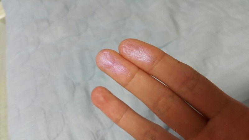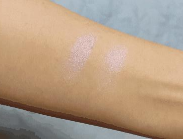 팔뚝 발색으로는 '라일락'은 '소프트 프로스트'의 연한 버전으로 보일 정도로 비슷합니다. 하지만 엄연히 '소프트 프로스트'는 하이라이터고 '라일락'은 섀도라서 분명 차이점이 드러날 수밖에 없습니다.