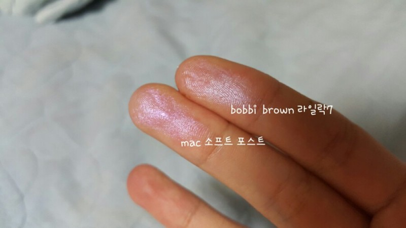 '소프트 프로스트' 발색해보다 생각나서 꺼낸 '바비브라운', '라일락' 역시 비슷한 느낌이에요.