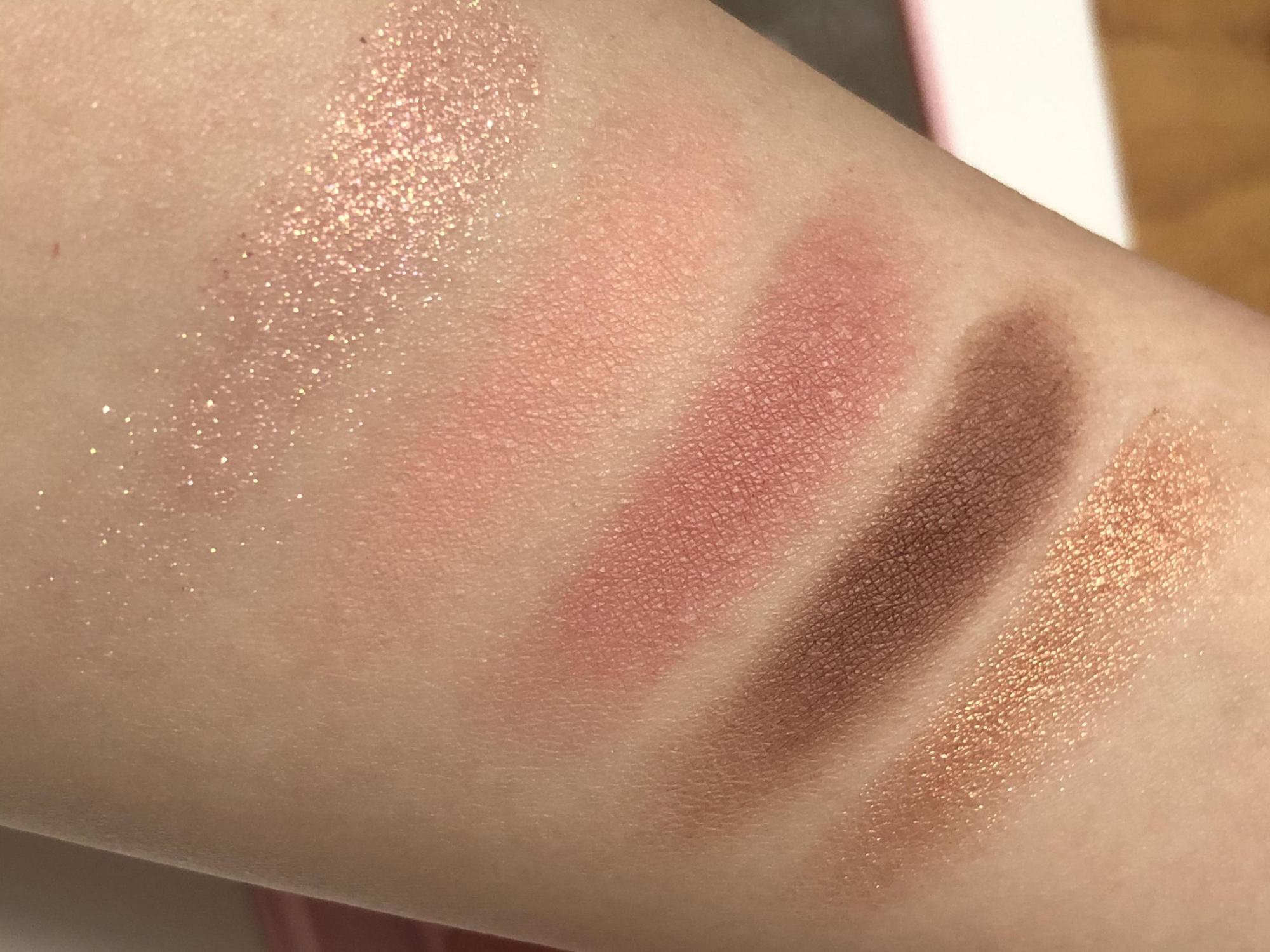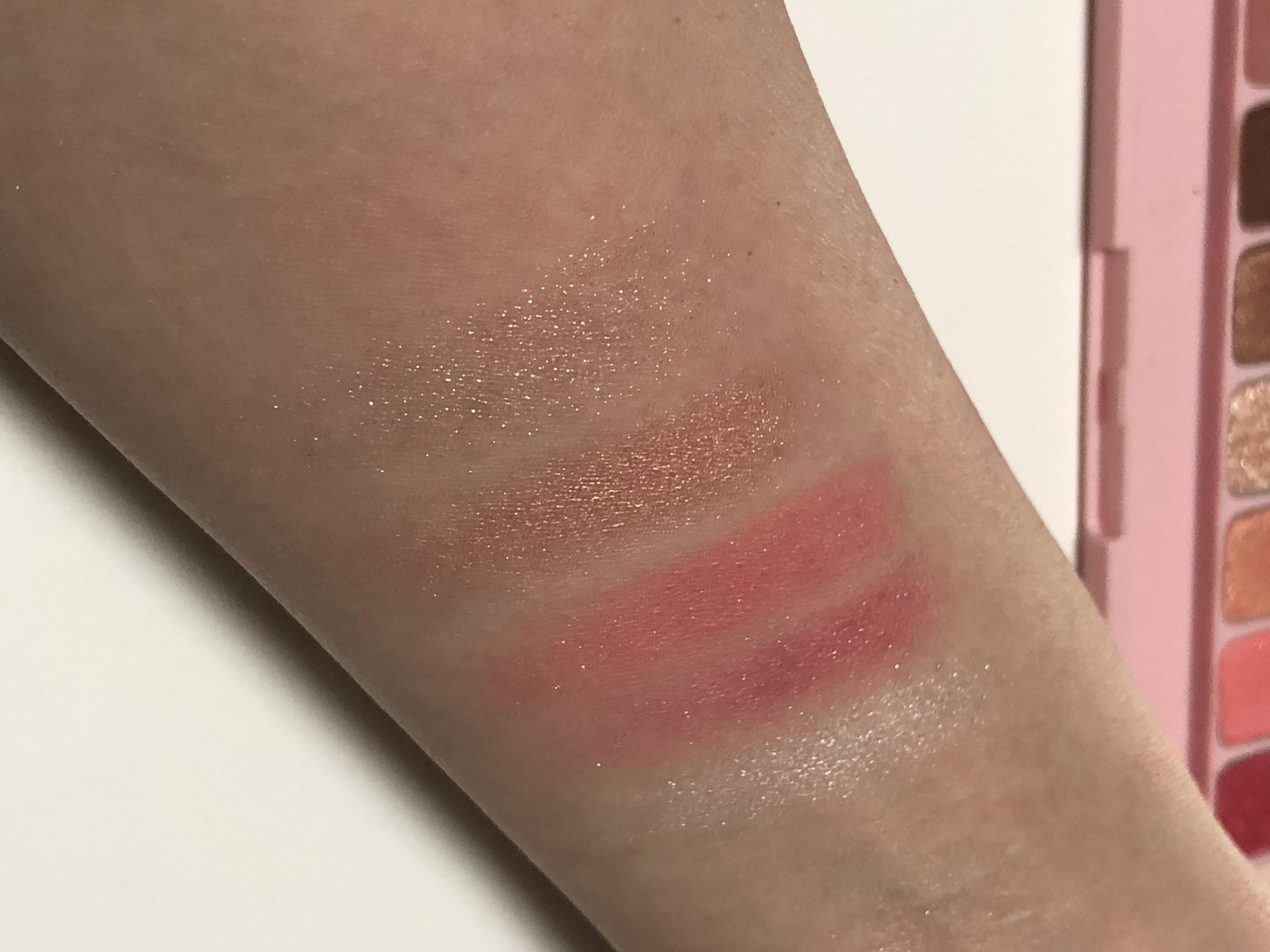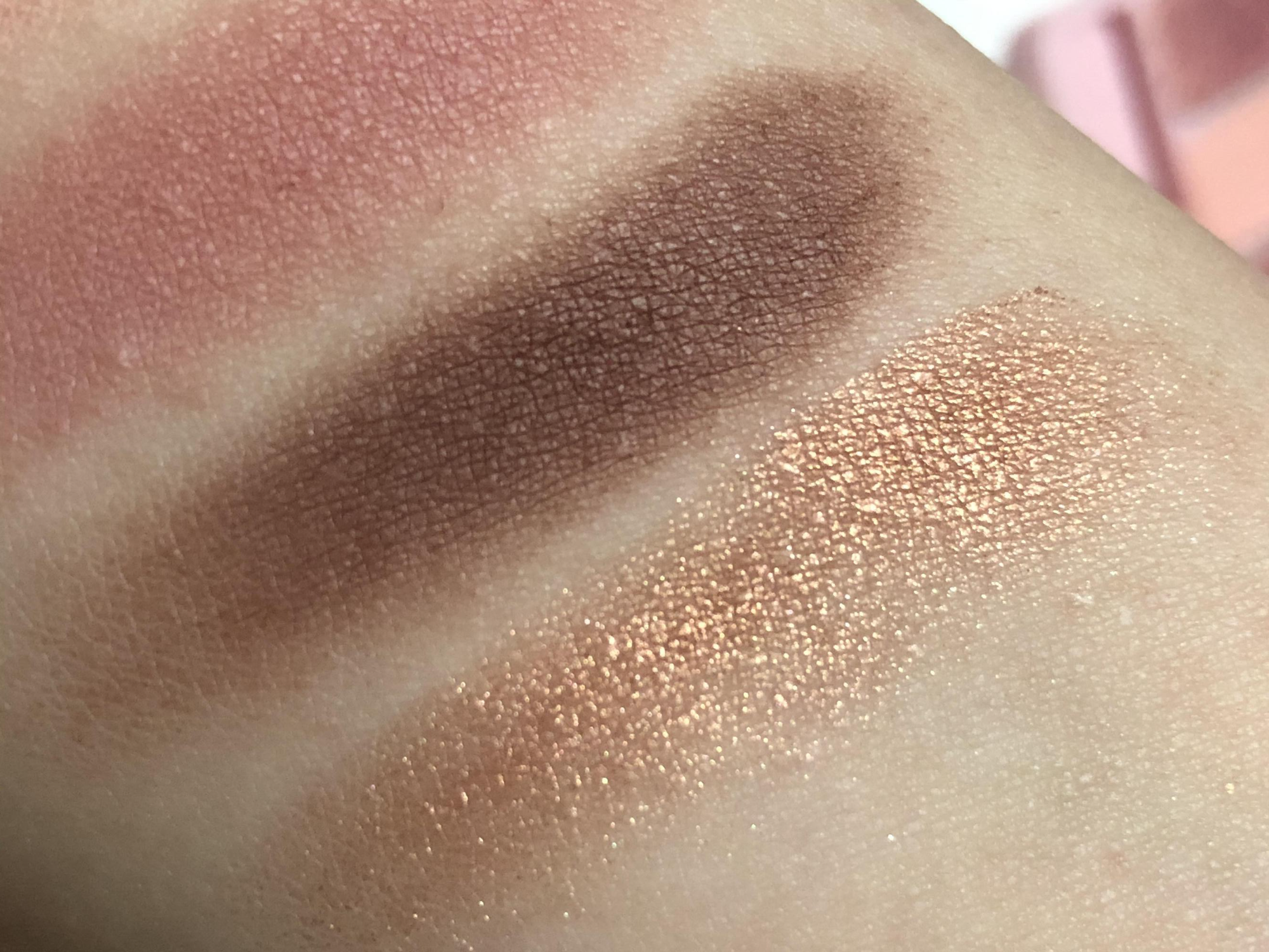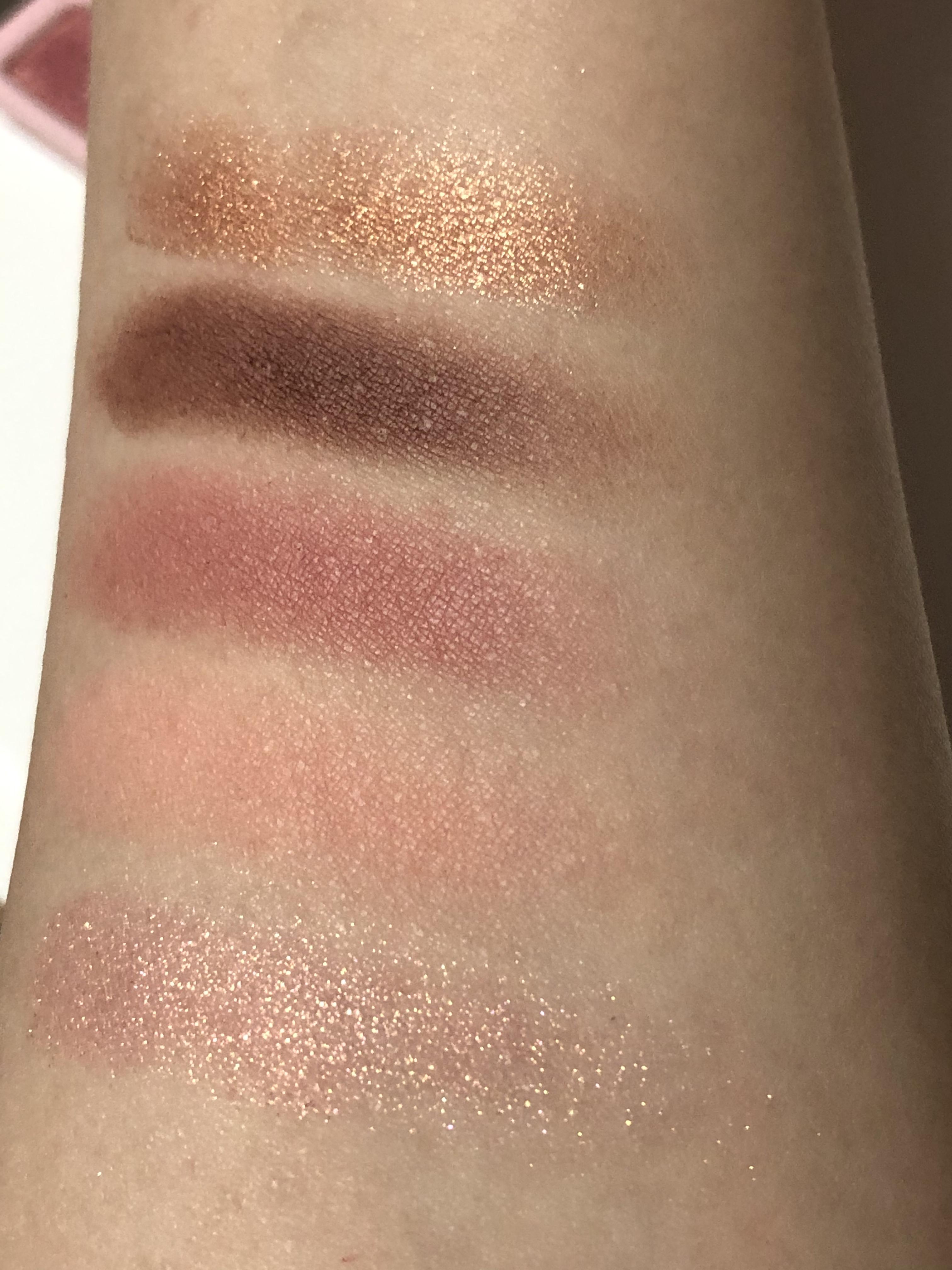 적당히 중간이라 웜쿨 모두 소화 가능합니다. 누구라도 예쁜 색이라서 눈앞머리, 아이홀 전체에 베이스로 쓰지만 않으면 무난하면서 적당히 화려한 골드 핑크 색상입니다.