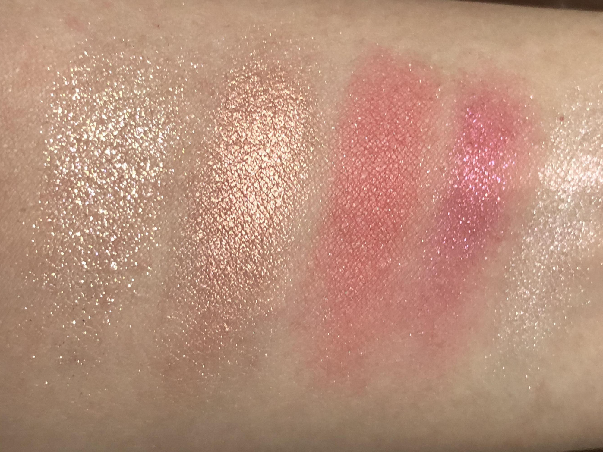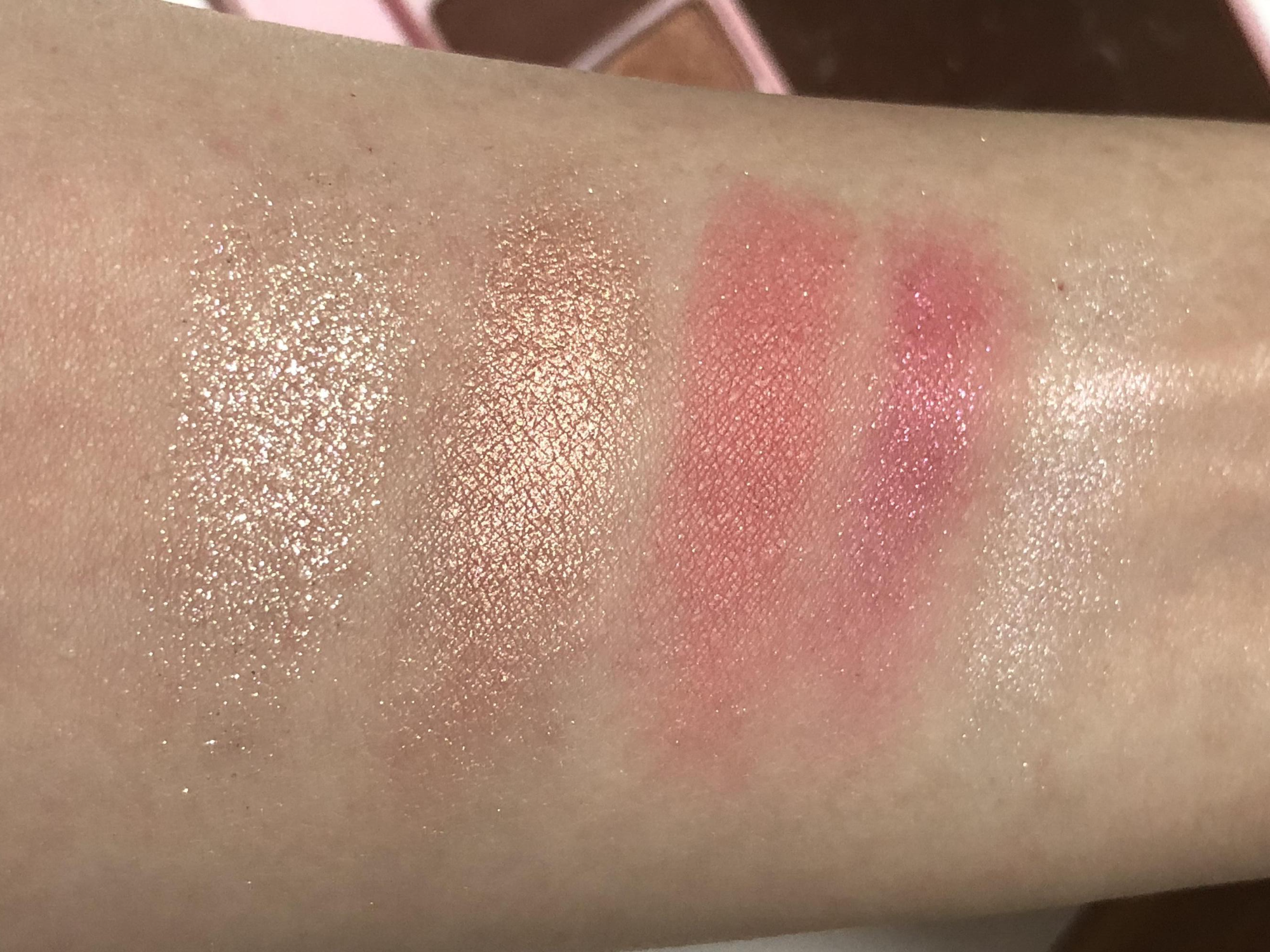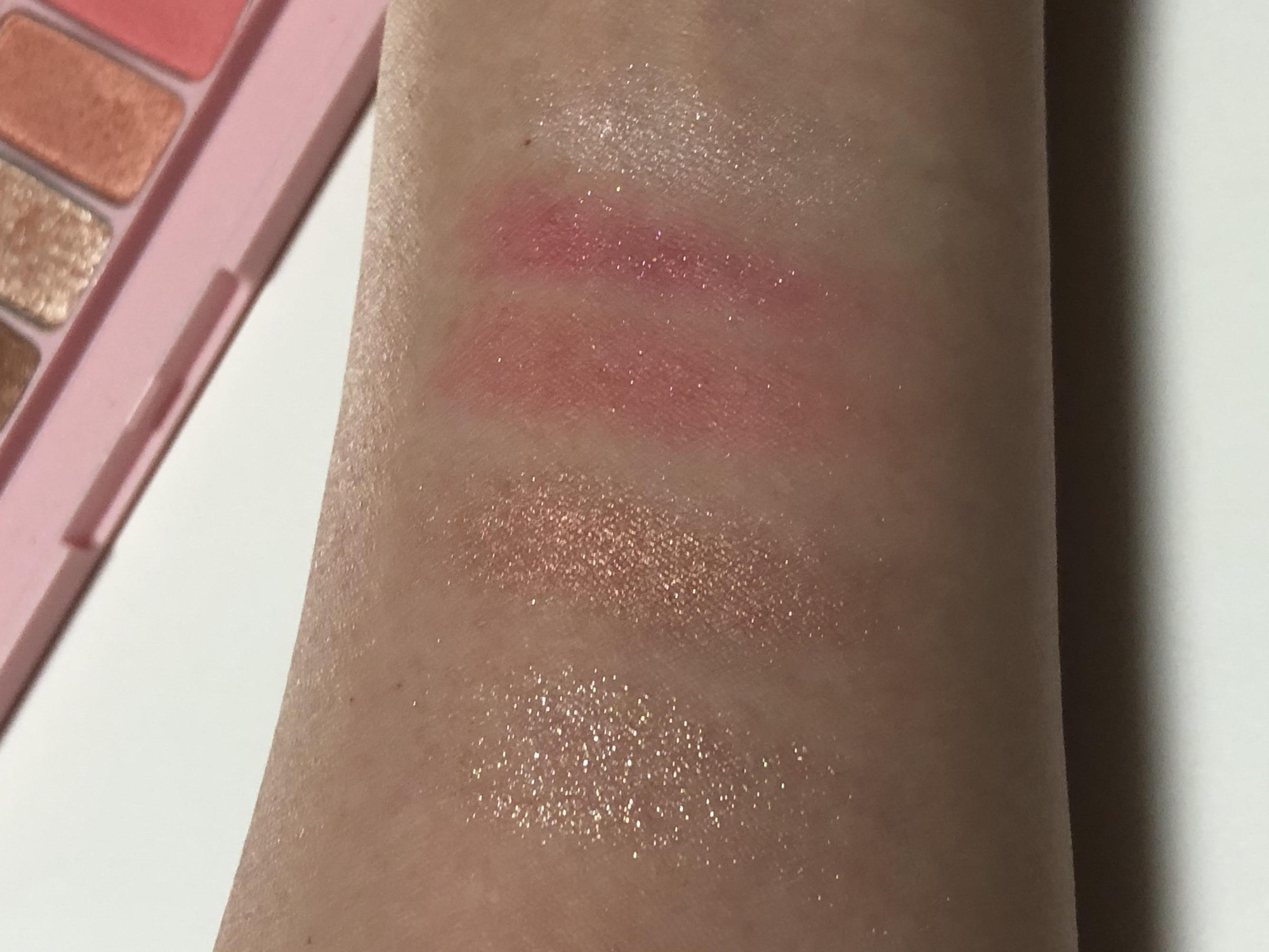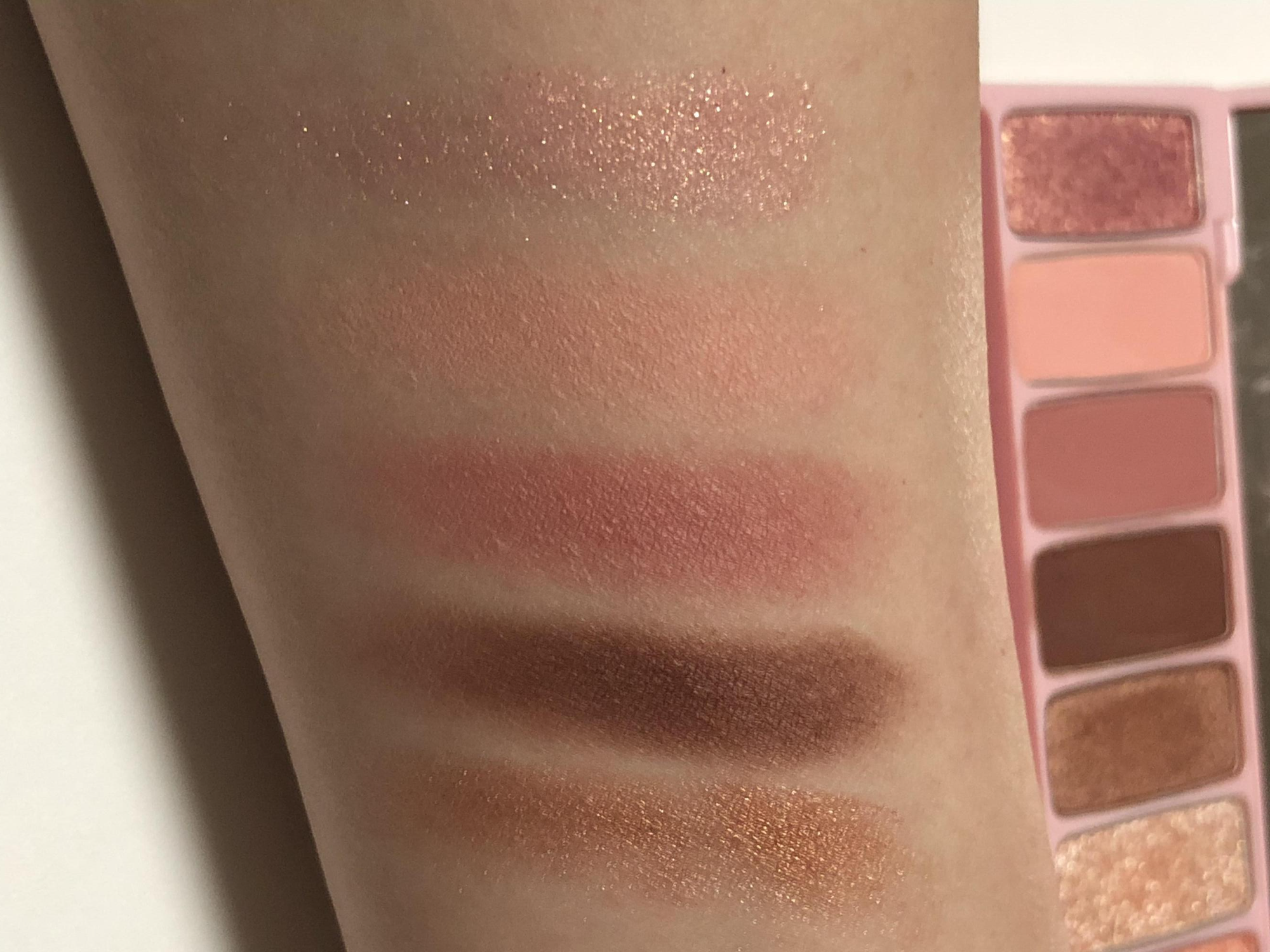 적당히 중간이라 웜쿨 모두 소화 가능합니다. 누구라도 예쁜 색이라서 눈앞머리, 아이홀 전체에 베이스로 쓰지만 않으면 무난하면서 적당히 화려한 골드 핑크 색상입니다.